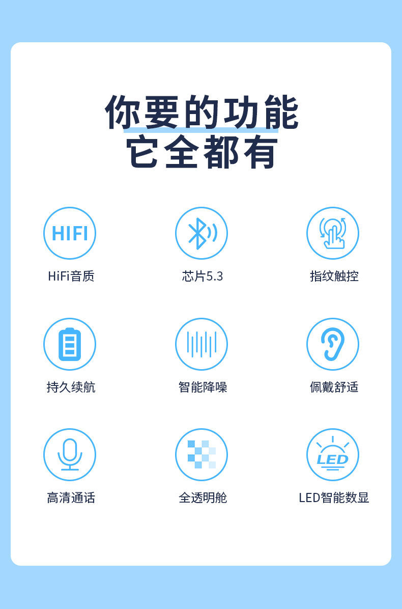 Auriculares Bluetooth inalámbricos reales semi-en-oído ultra-larga resistencia HIFI calidad de sonido llamada reducción de ruido deportes entrega de una sola pieza