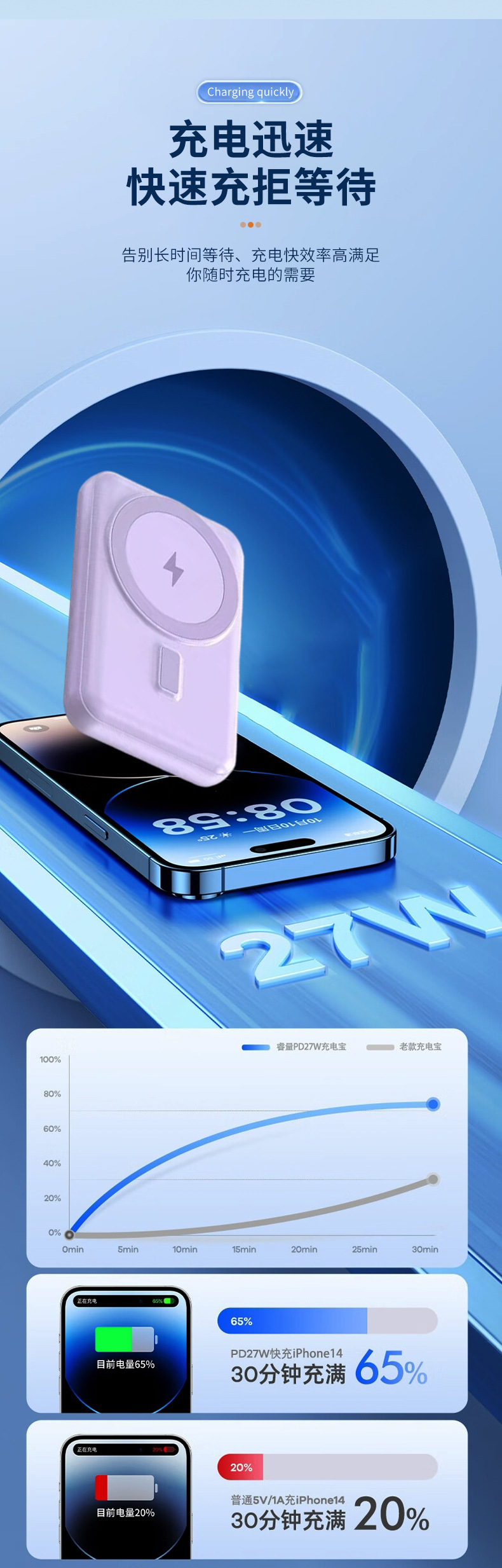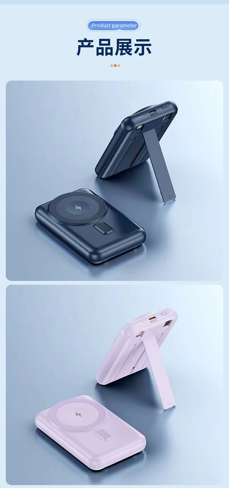 | Capacidad de alimentación | 10000 mA carga rápida (carga inalámbrica 15W), 10000 mA carga rápida (carga inalámbrica 15W + reloj de carga) |