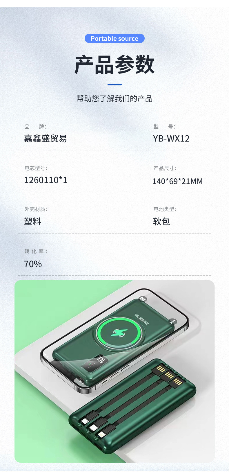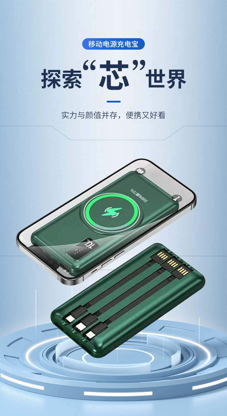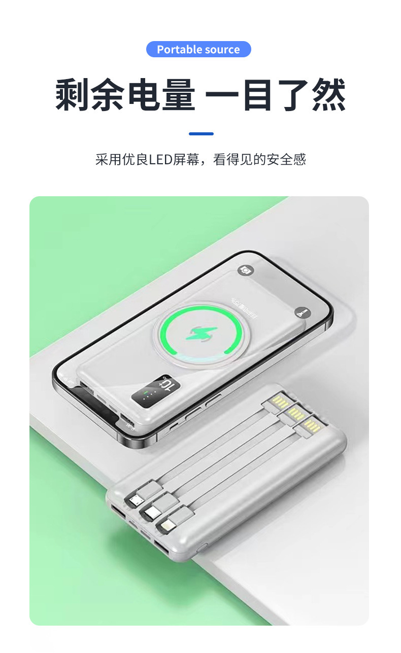 Fuente de alimentación móvil de carga rápida de tres líneas creativa portátil al aire libre tesoro de carga YB-WX12 pantalla digital de absorción de gran capacidad