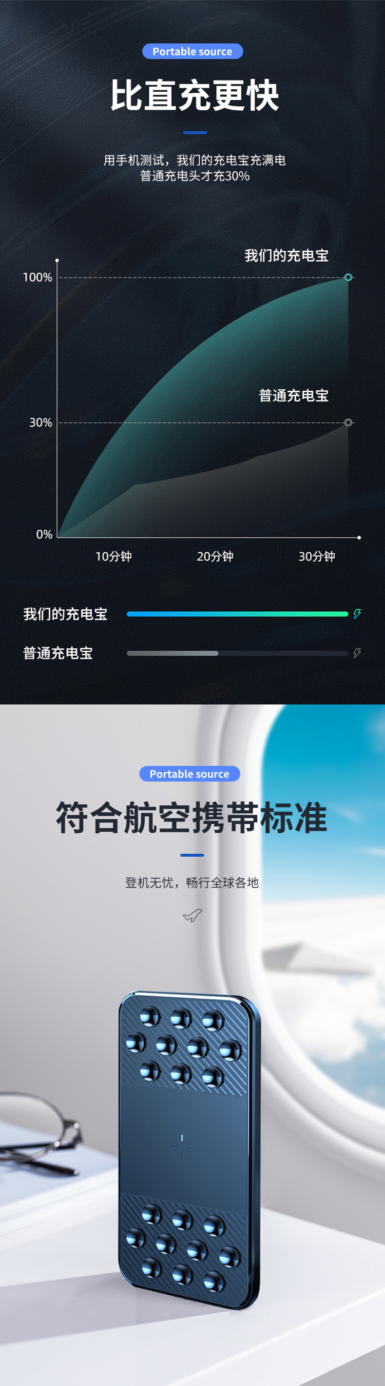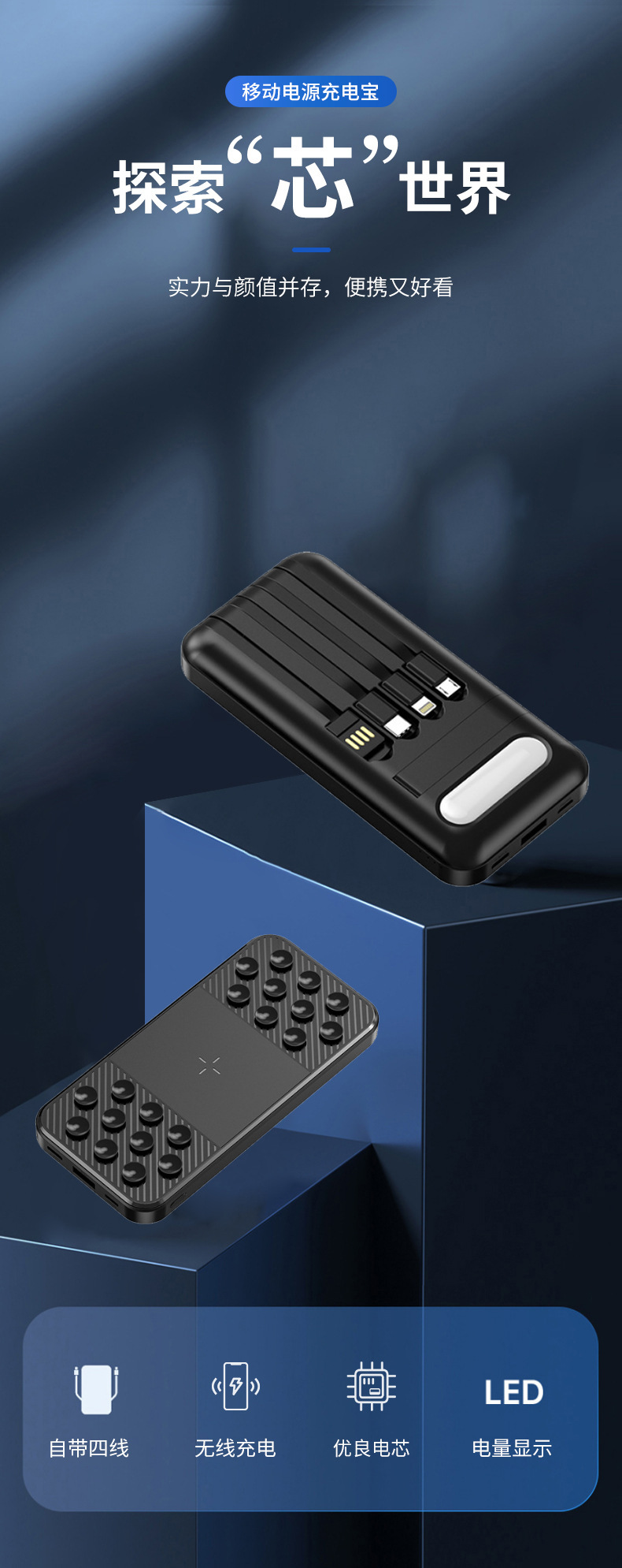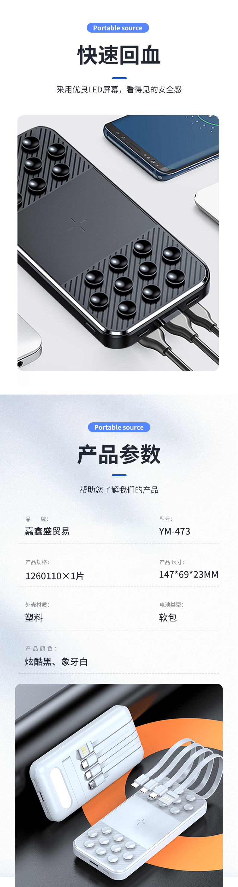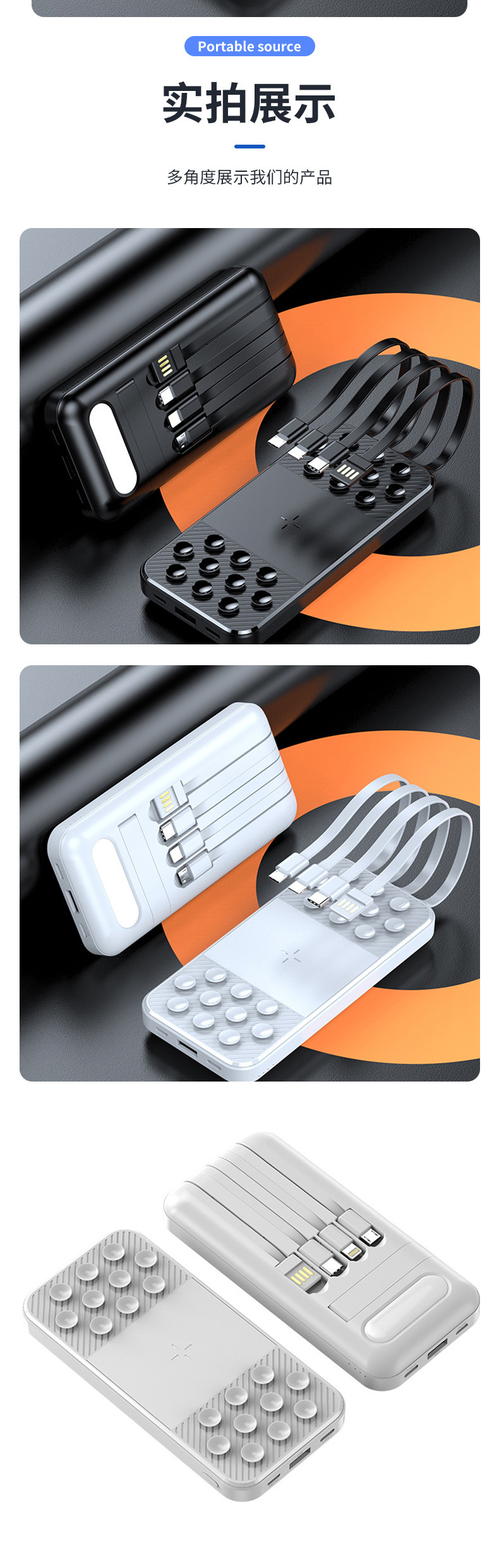 Lámpara LED con 20000 mAh tipo ventosa de carga de alta capacidad de carga rápida con cable de alimentación móvil en stock