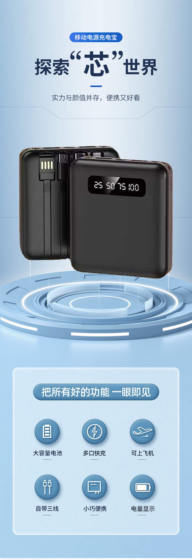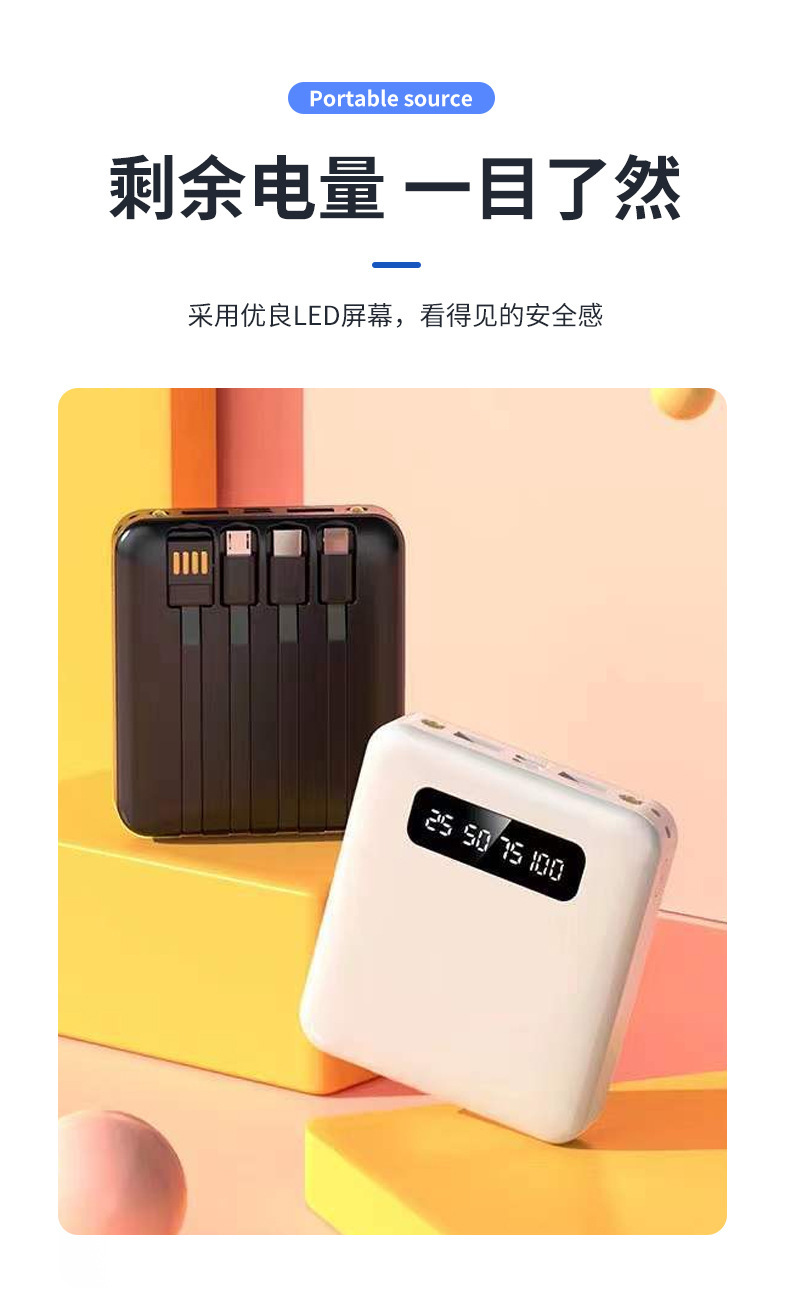 Mini fuente de alimentación móvil pantalla digital fuente de alimentación móvil portátil al aire libre porosa carga de cuatro cables Baoan carga general Baoan