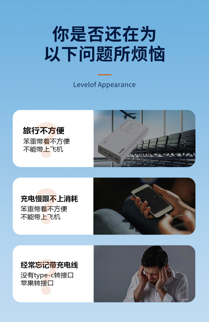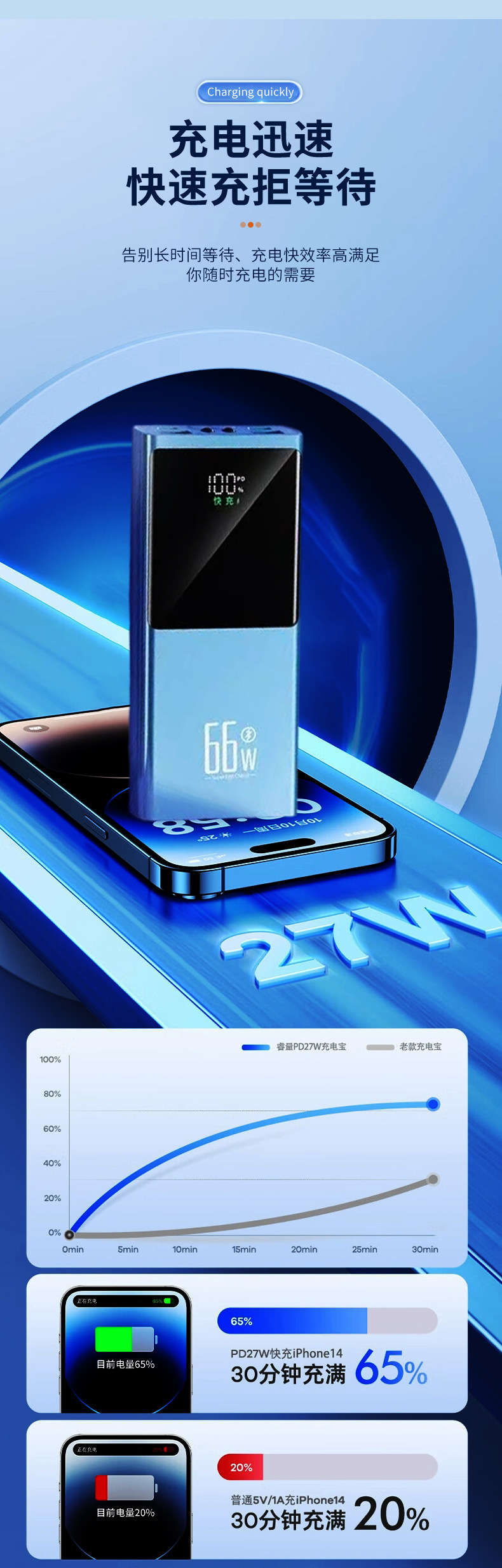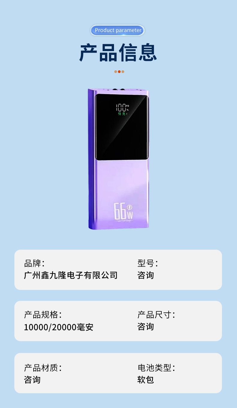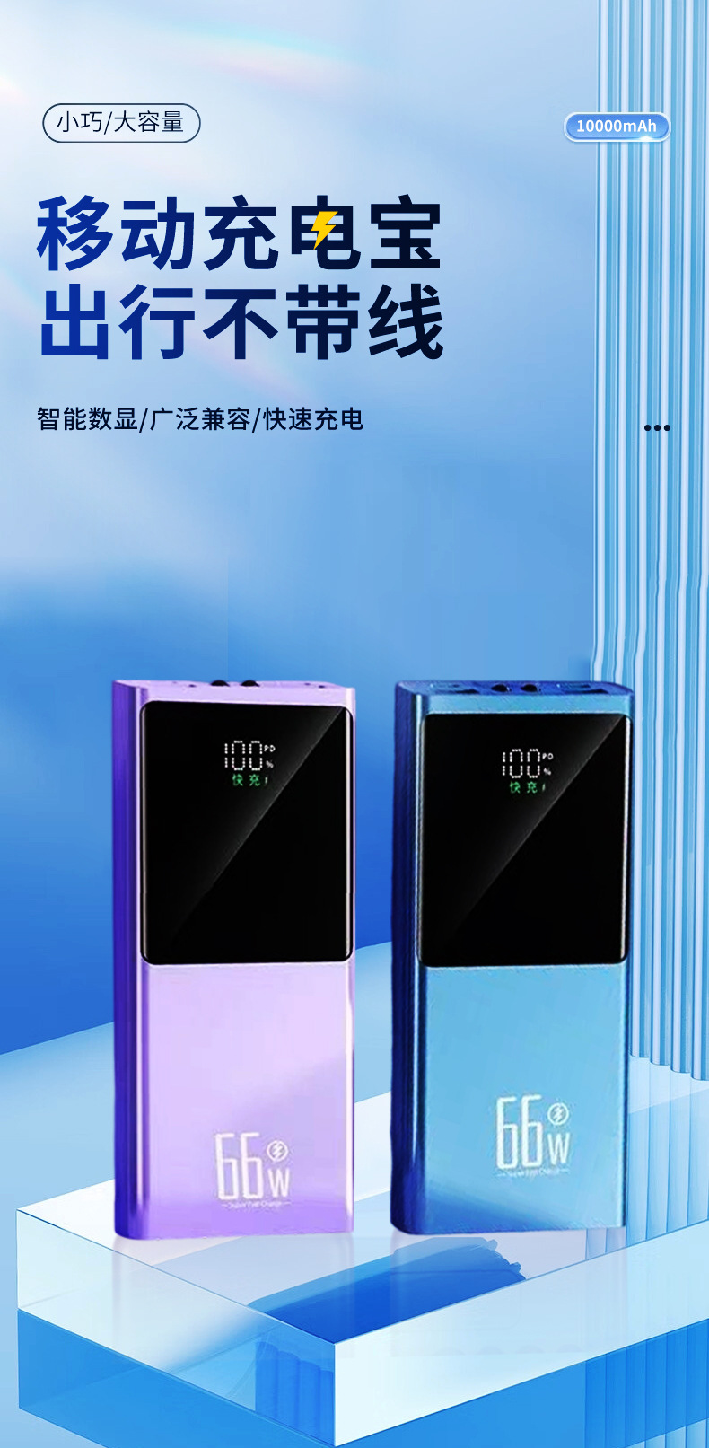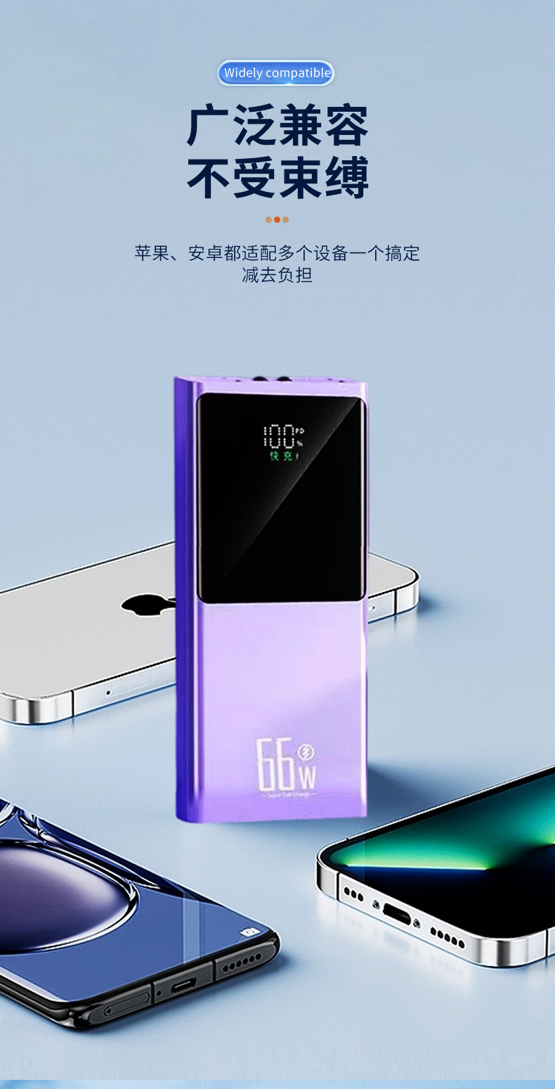 Fábrica directa de 66W carga rápida carga de gran capacidad mini portátil pantalla digital inteligente de alimentación móvil Android