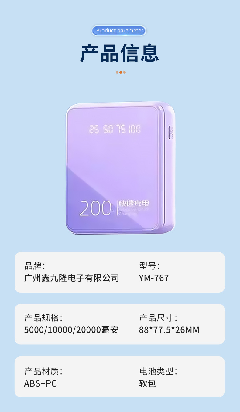 | Capacidad de alimentación | 5000 ma, 10000 ma, 20000 ma |