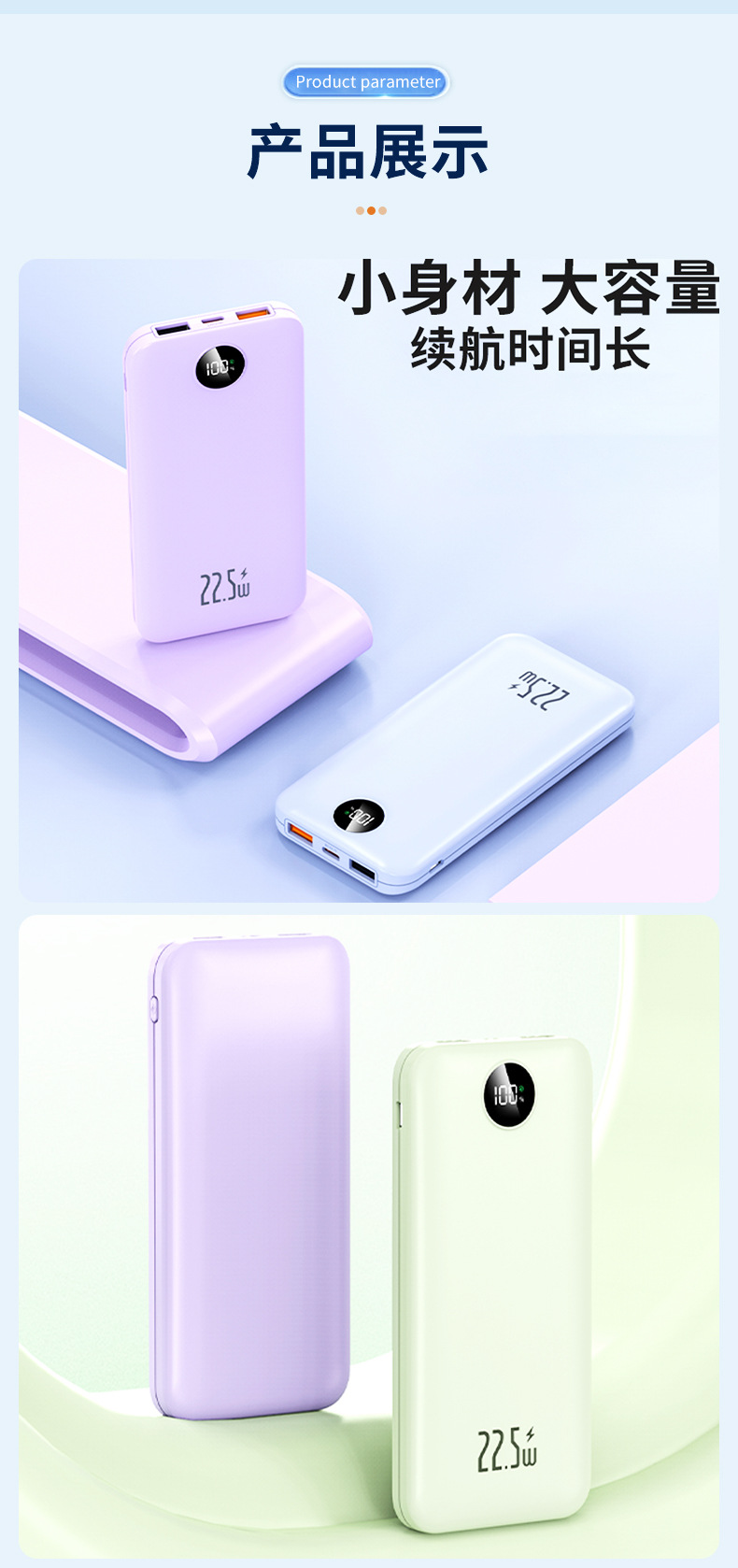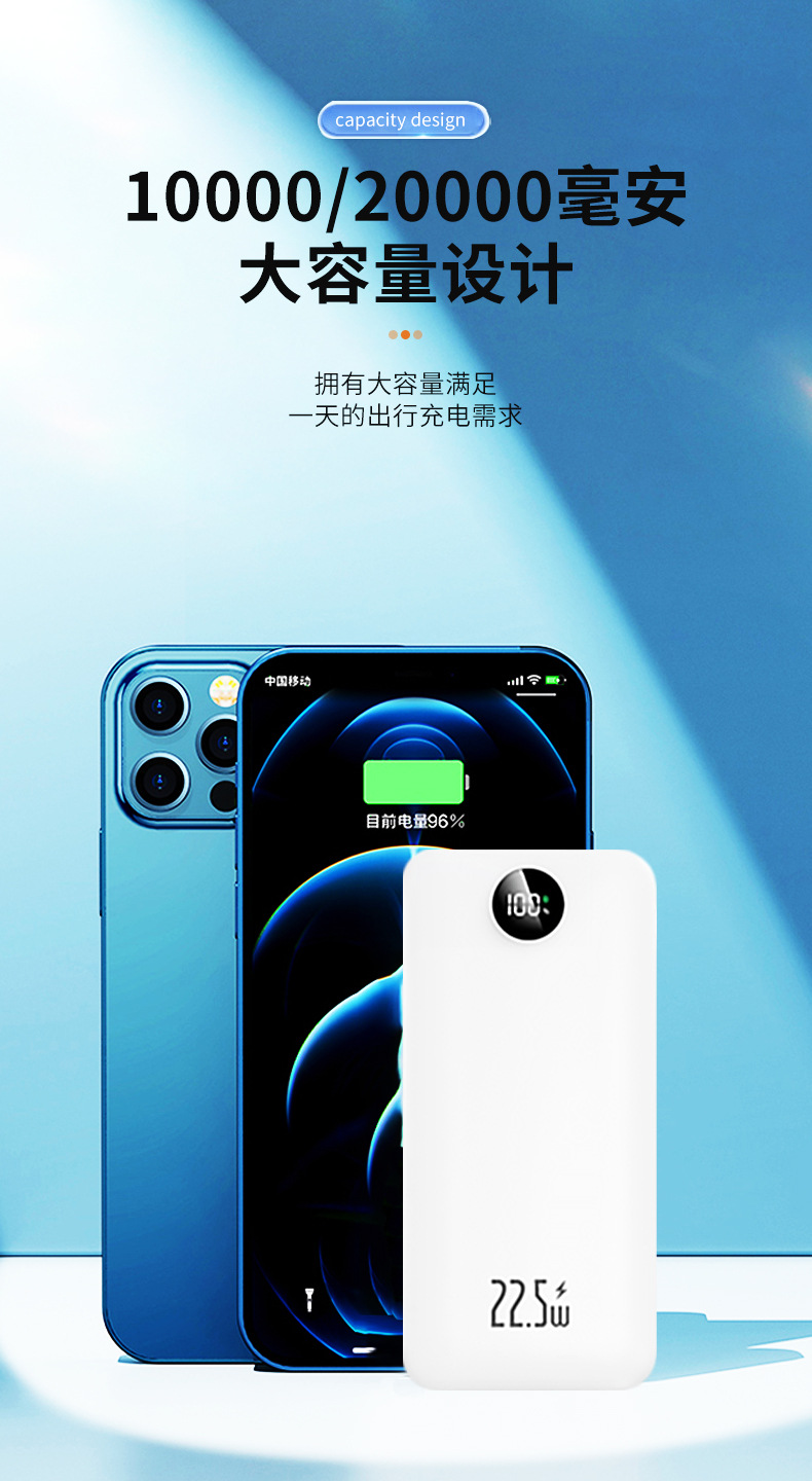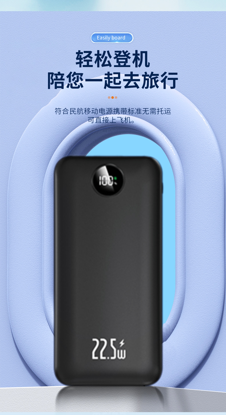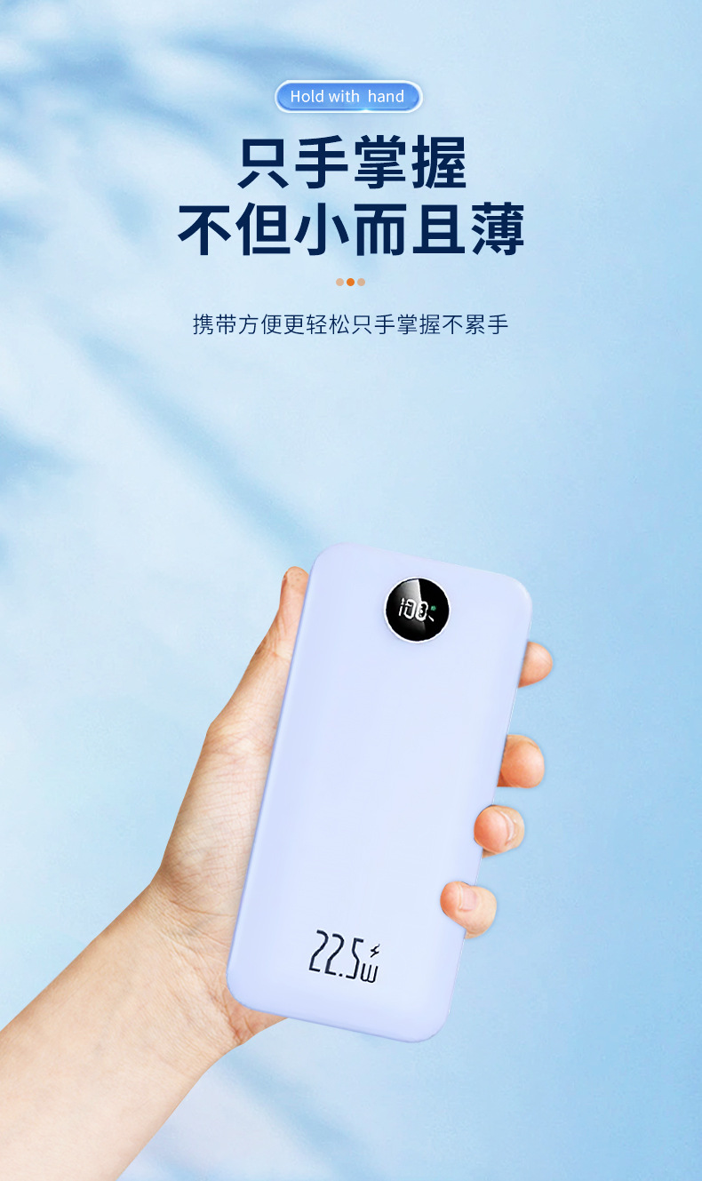 Los fabricantes suministran mini banco de energía portátil para viajes al aire libre, batería, pantalla digital de color sólido de gran capacidad, fuente de alimentación móvil multicolor