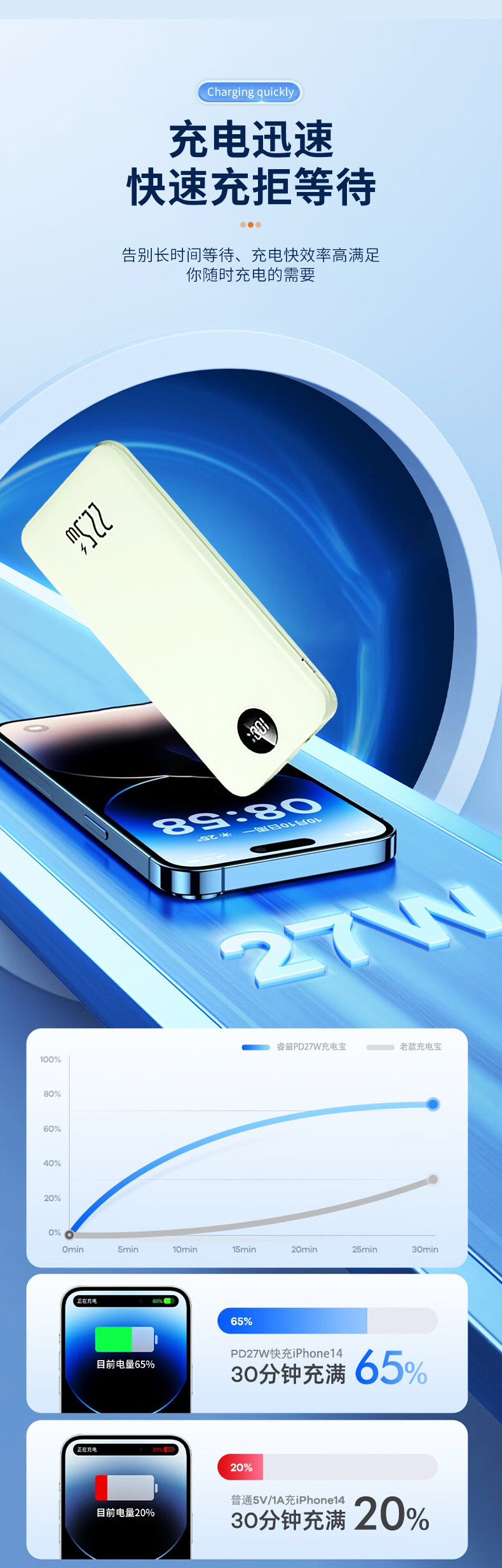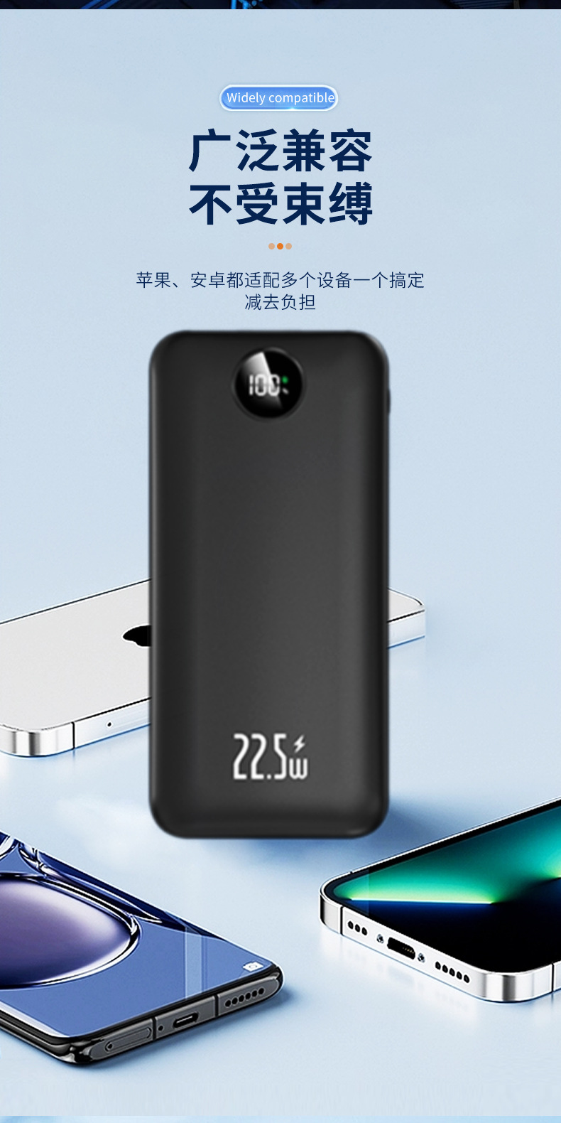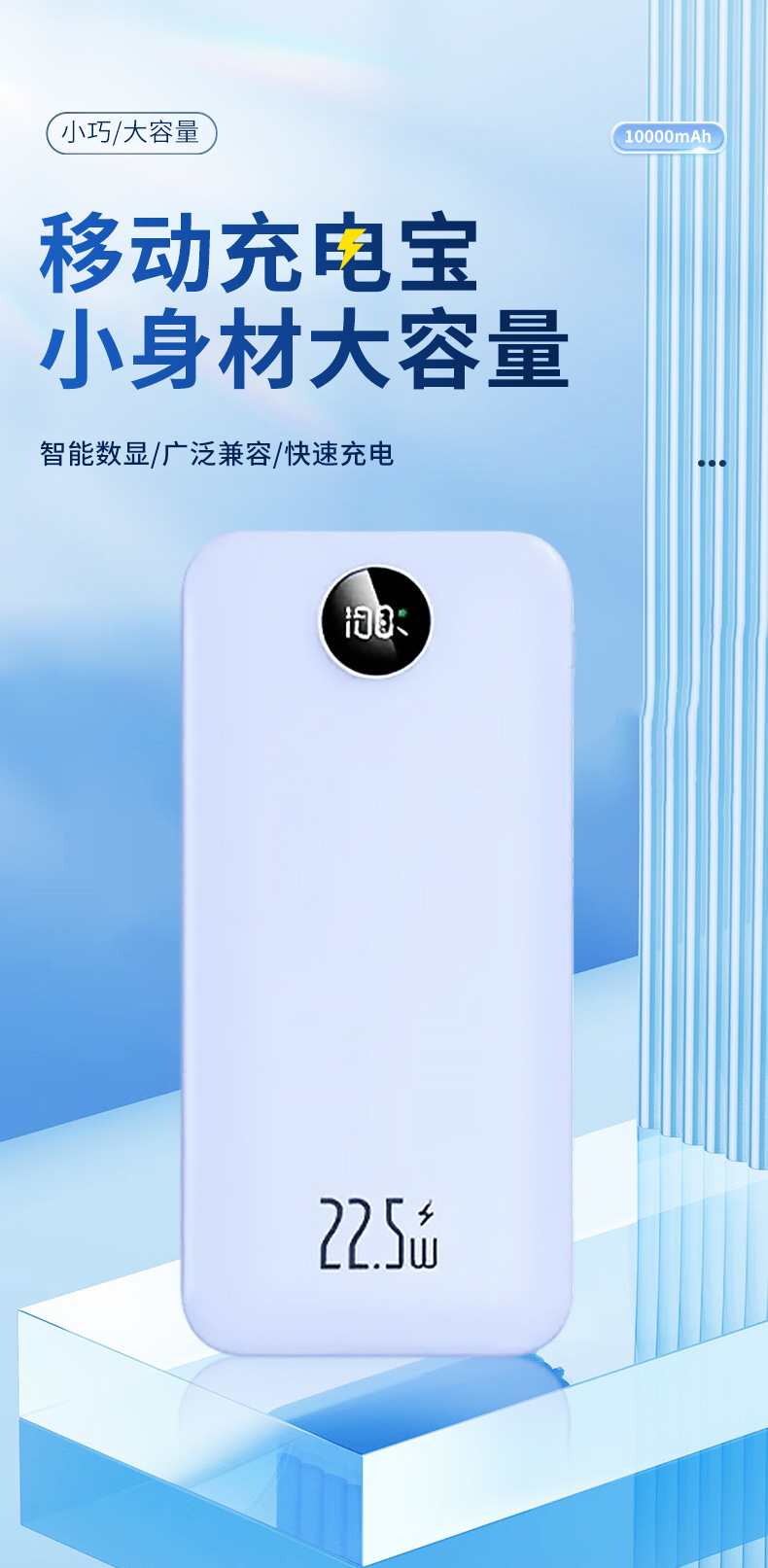 Los fabricantes suministran mini banco de energía portátil para viajes al aire libre, batería, pantalla digital de color sólido de gran capacidad, fuente de alimentación móvil multicolor