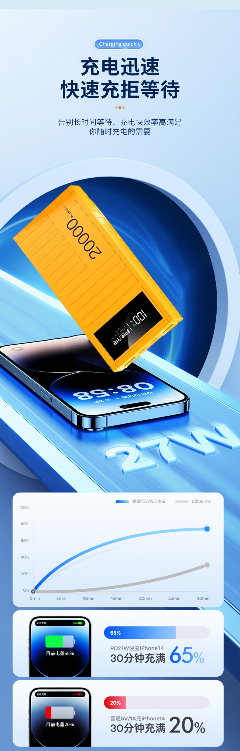 Fabricante de suministro de 66W carga rápida pequeña y conveniente industria de carga de viento tesoro de energía móvil al aire libre carga rápida bidireccional en stock