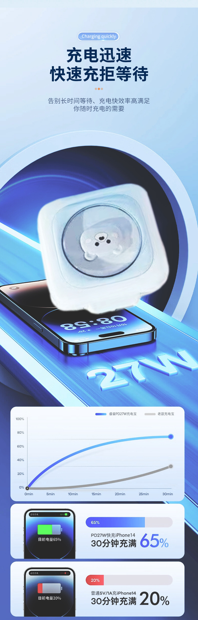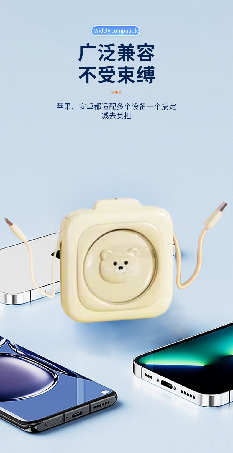Mini muñeca portátil al aire libre con línea de gran capacidad de dibujos animados lindos carga rápida se puede utilizar en el avión móvil universal