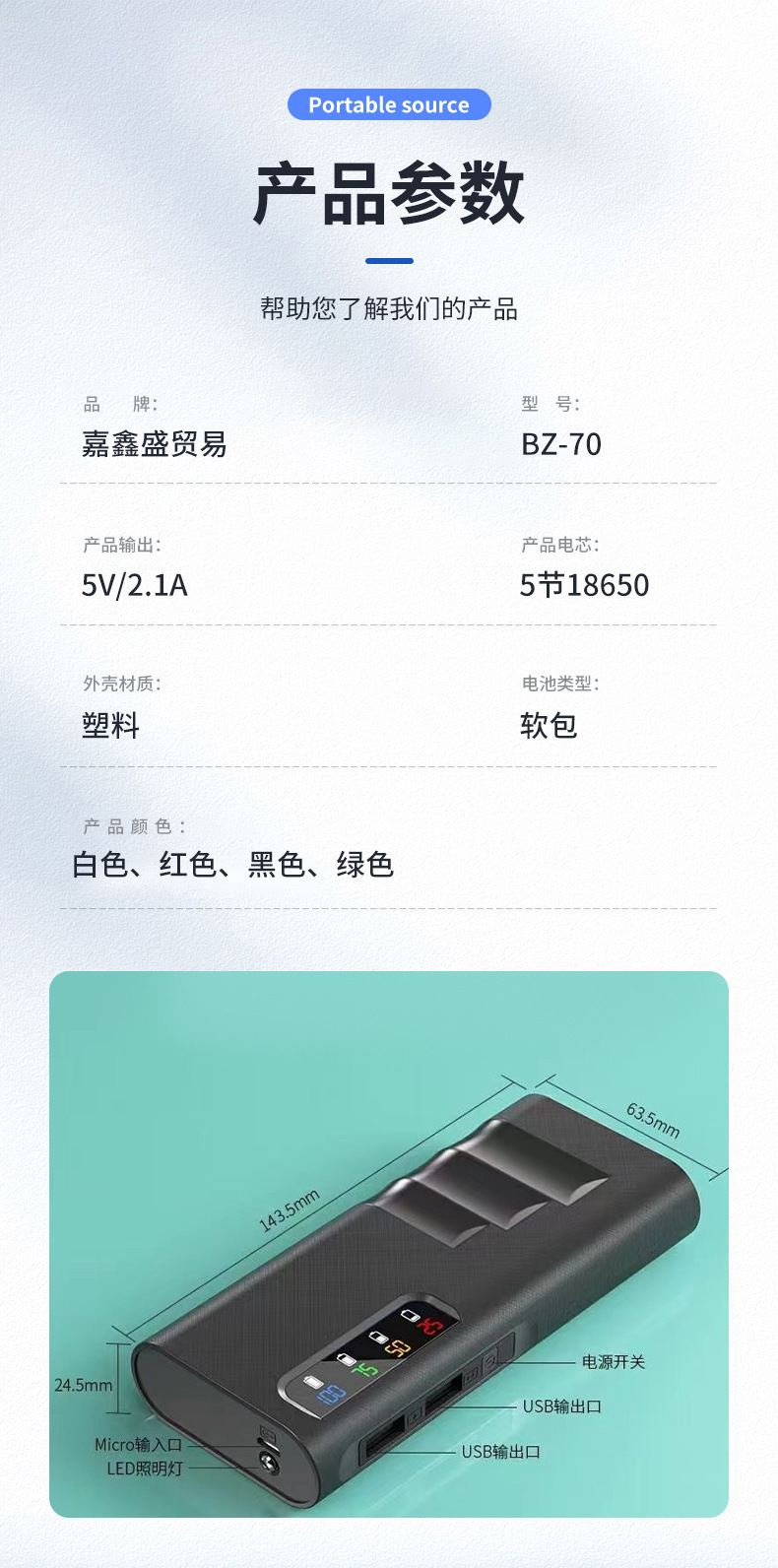 | Capacidad de alimentación | 2400 mA, 3600 mA, 4800 mA, 6000 mA, 8000 mA |