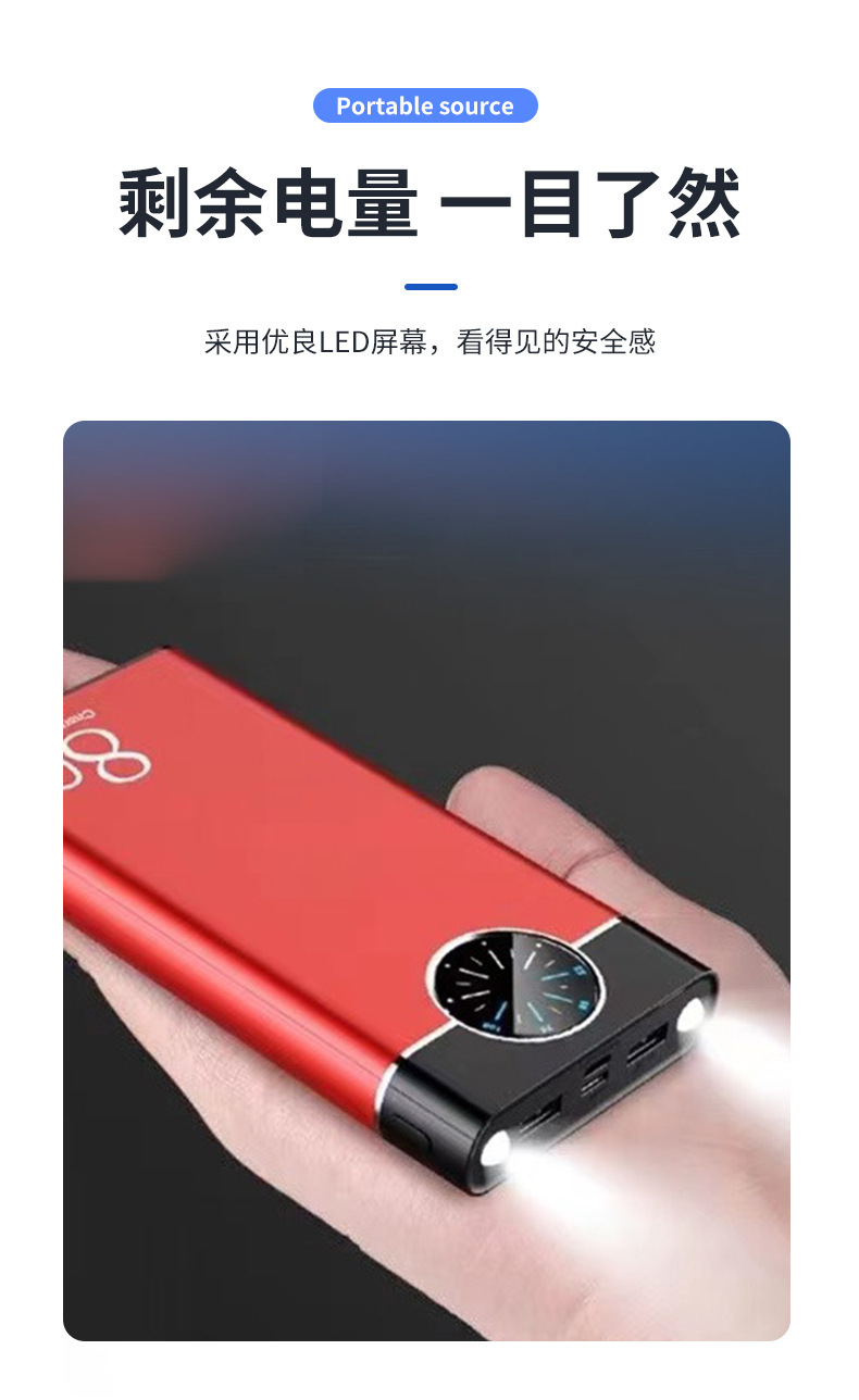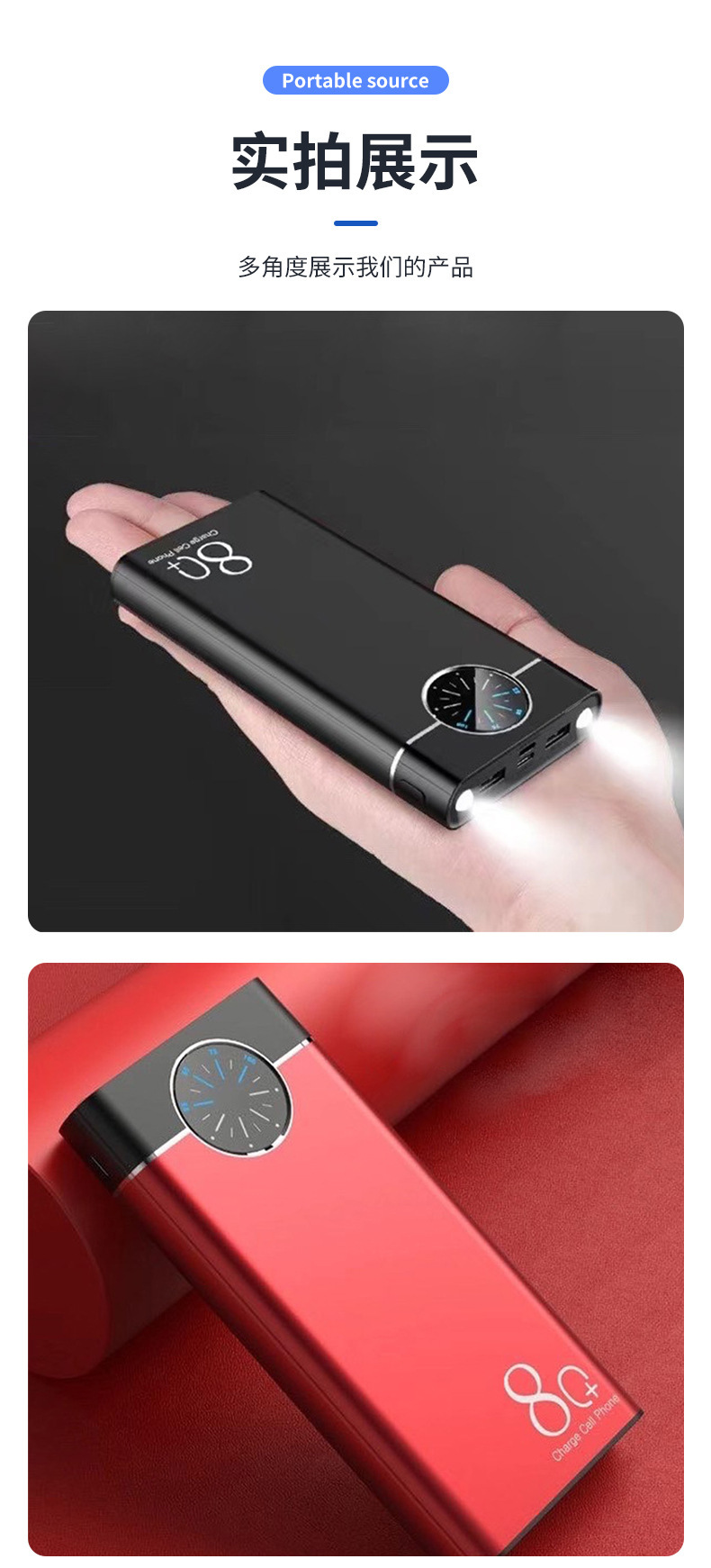 Fabricantes de suministro de gran capacidad portátil al aire libre fuente de alimentación móvil ligera y delgada 20000 mAh pantalla digital con lámpara LED en stock