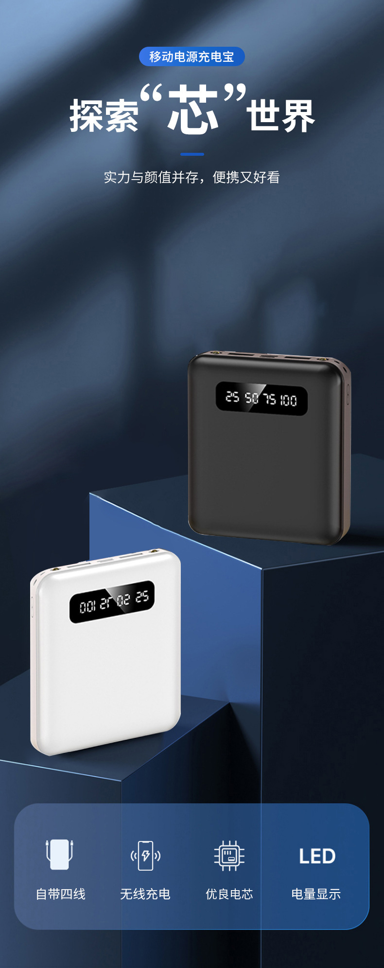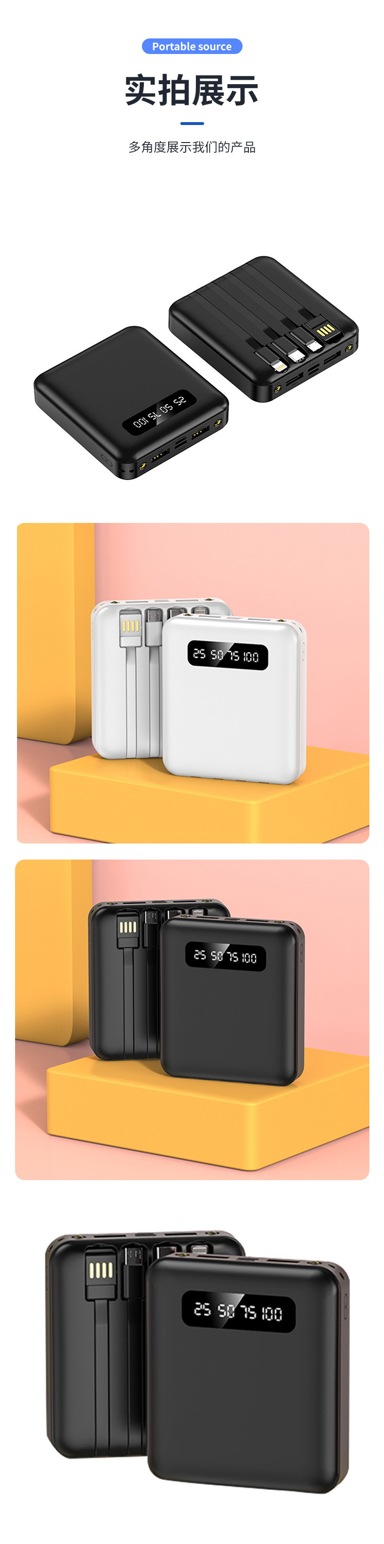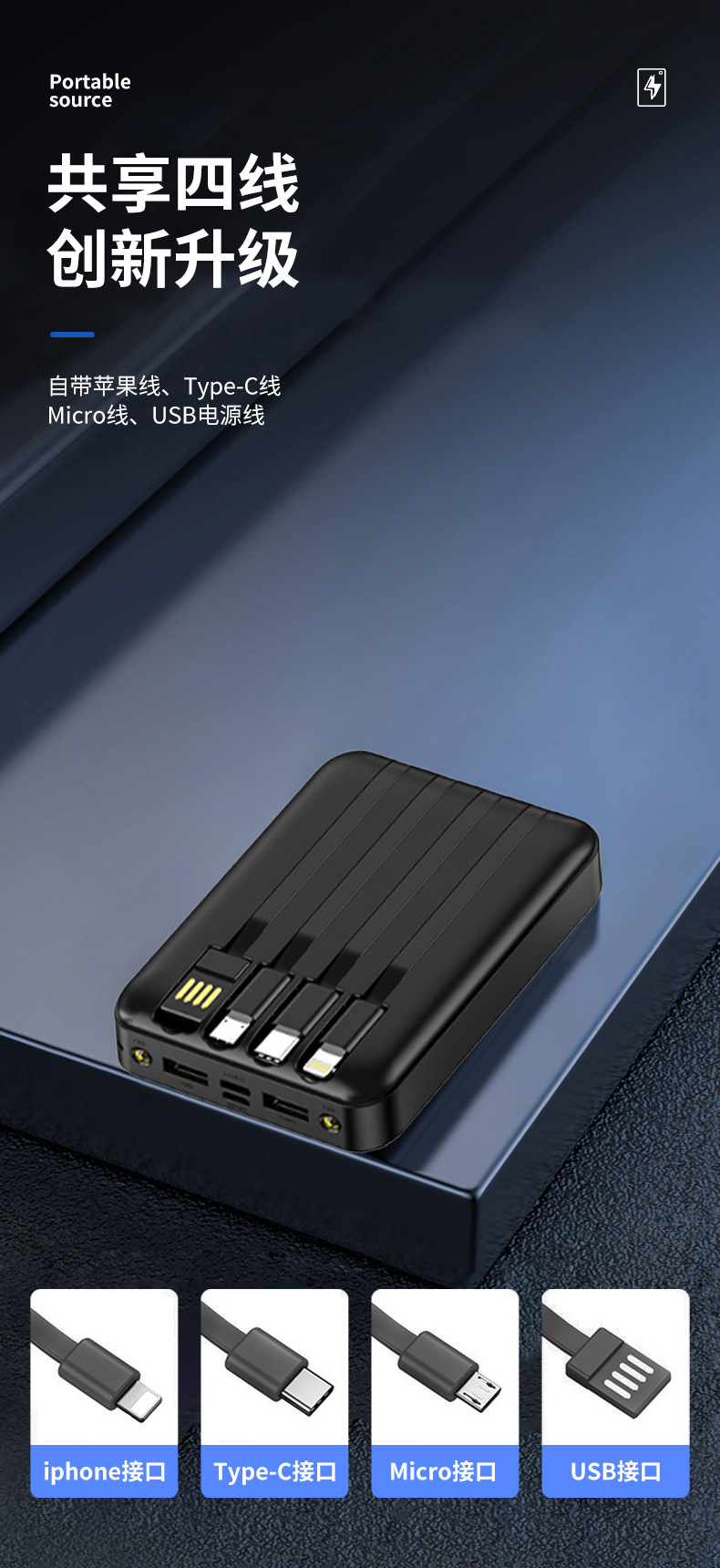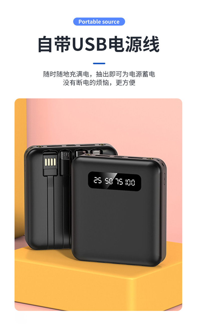 Mini al aire libre con cuatro cables de 10000 mAh pantalla digital de carga rápida tesoro de carga portátil fuente de alimentación portátil en stock