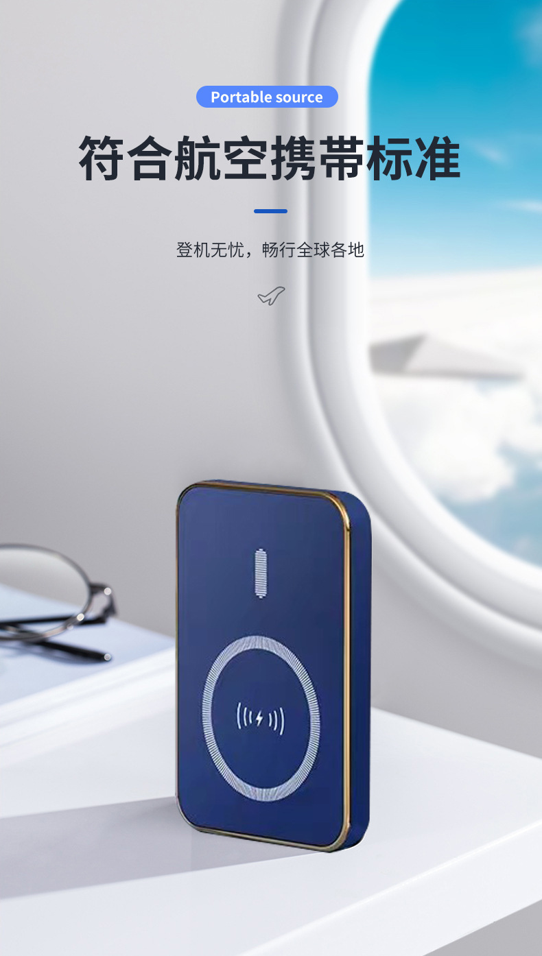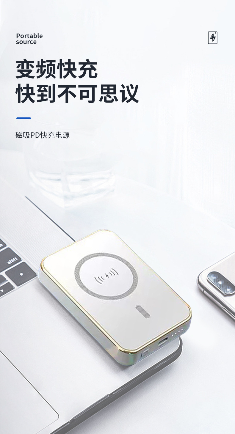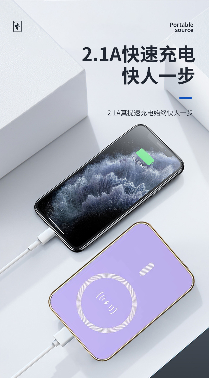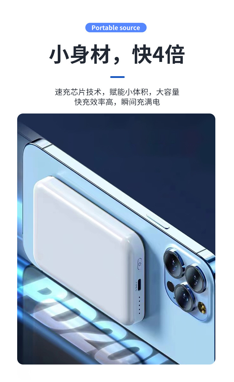 Caja de carga magnética al aire libre portátil fuente de alimentación móvil inalámbrica compacta de carga rápida bidireccional lámpara LED