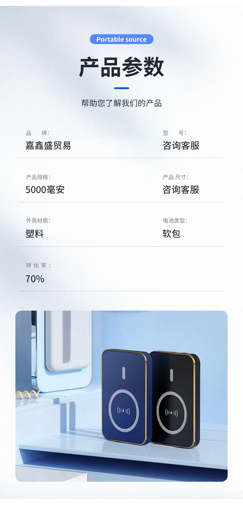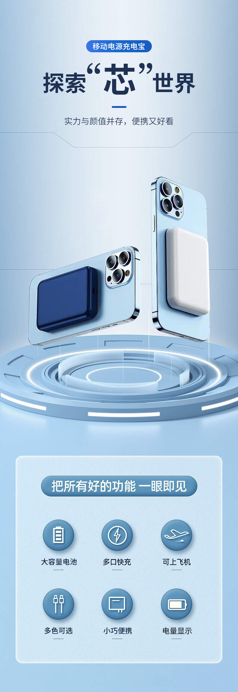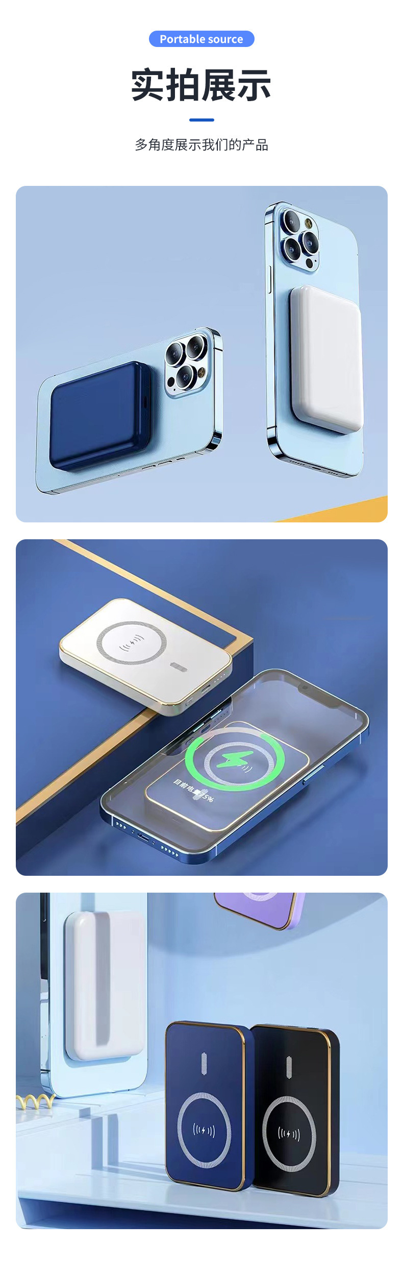 Caja de carga magnética al aire libre portátil fuente de alimentación móvil inalámbrica compacta de carga rápida bidireccional lámpara LED