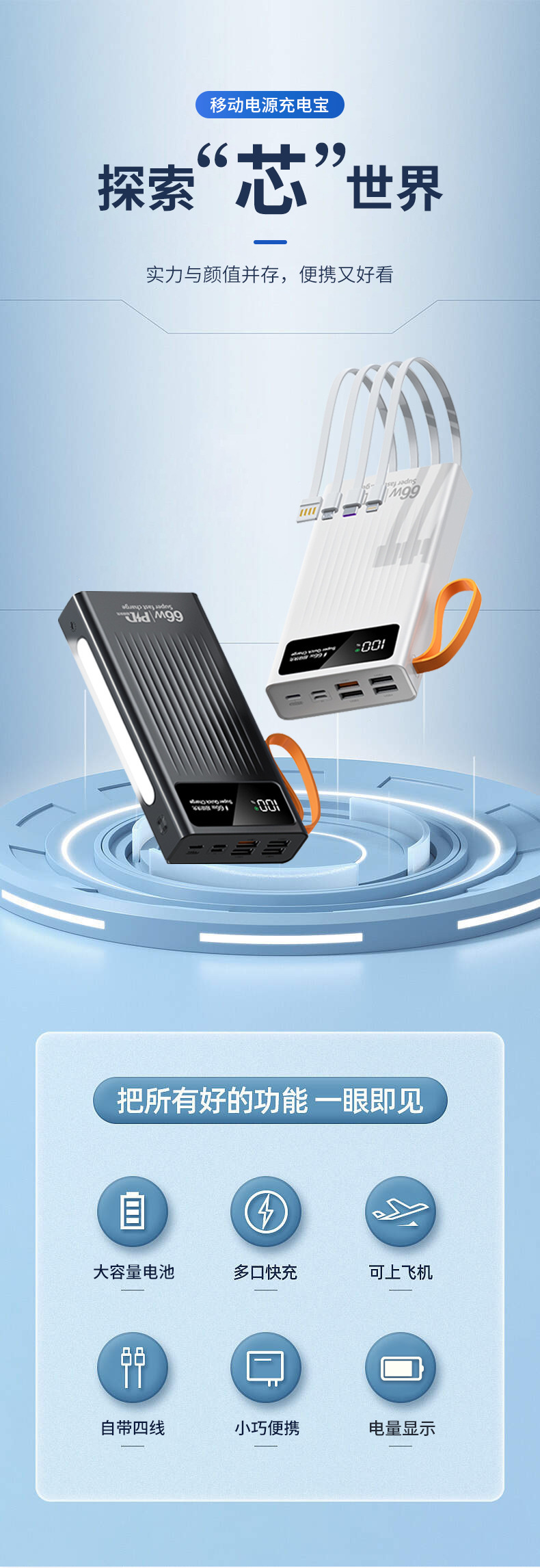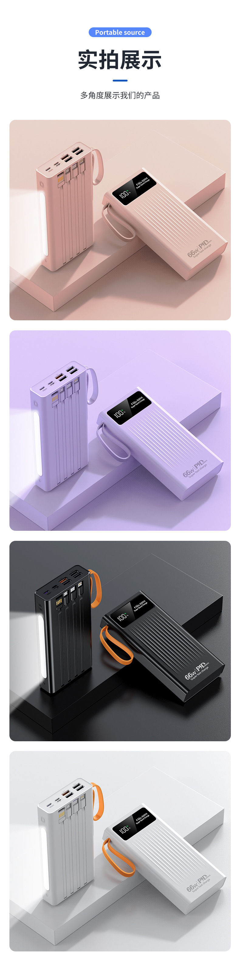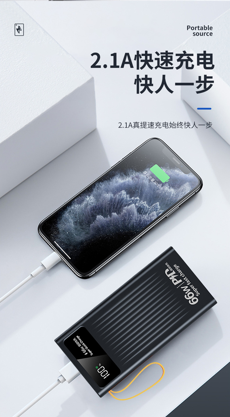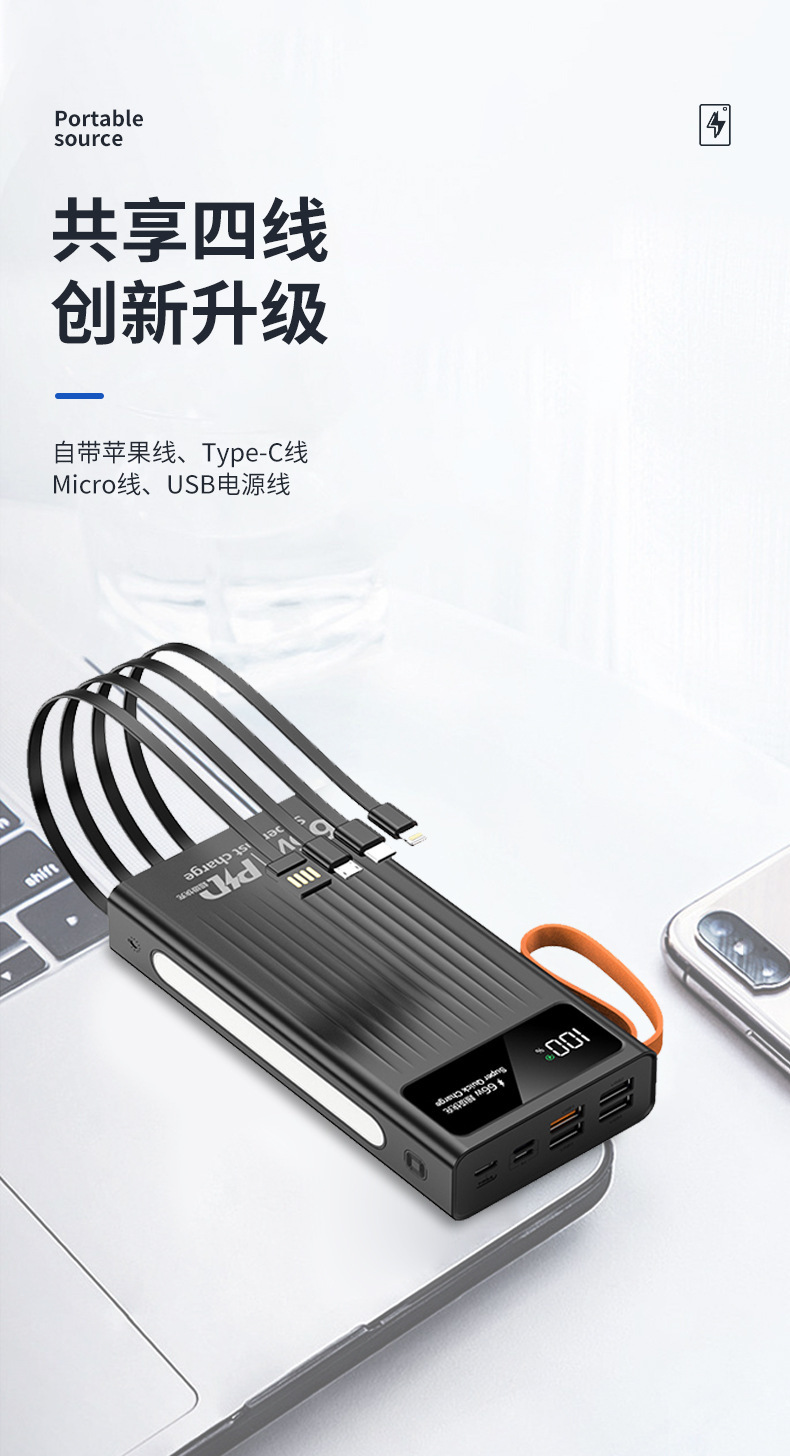 Cuatro líneas auto-cargadas con un tesoro de carga rápida para teléfonos móviles digitales, gran capacidad, pequeño, conveniente y multicolor, portátil al aire libre