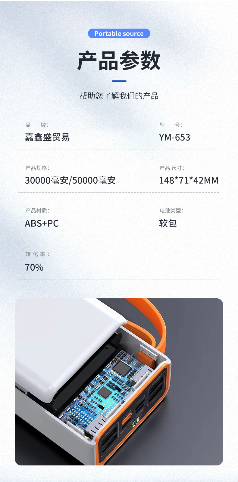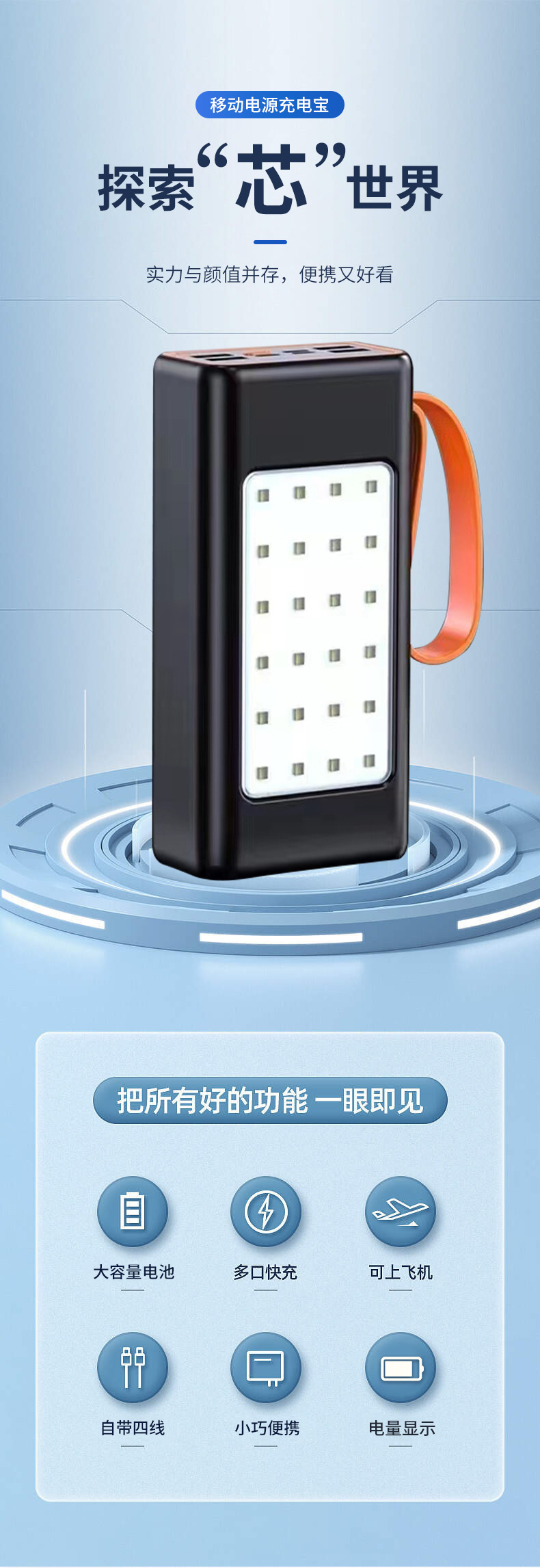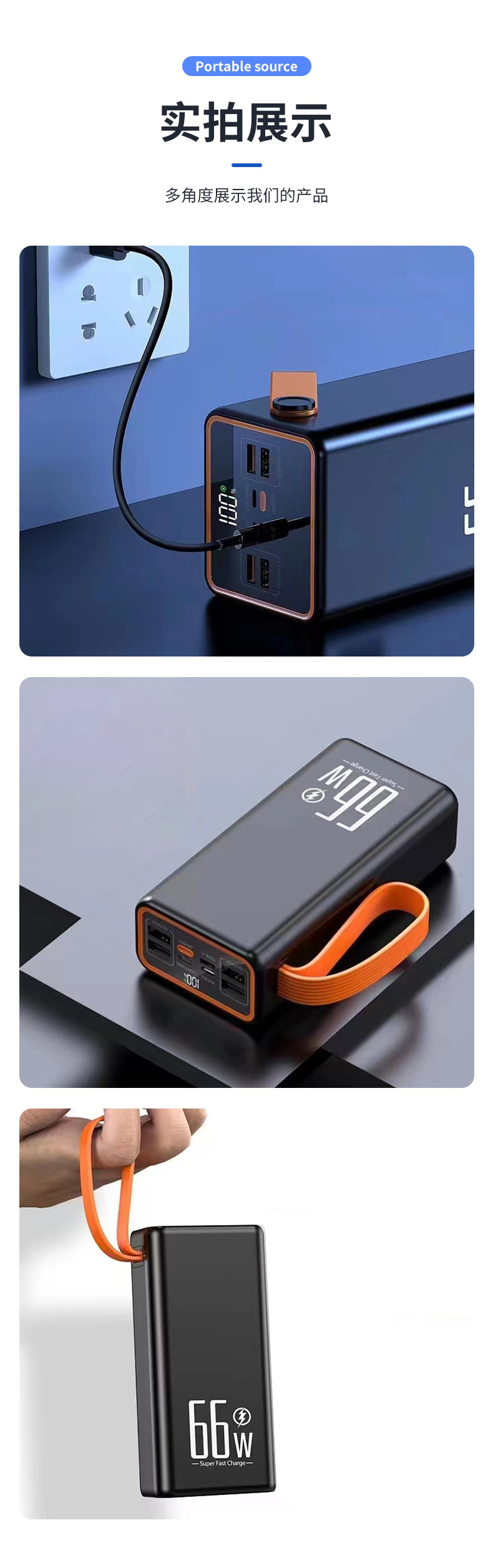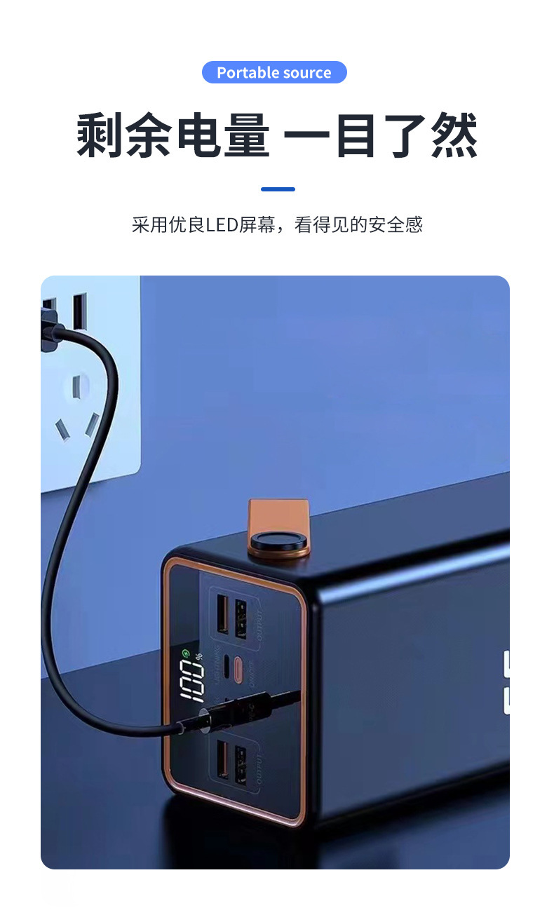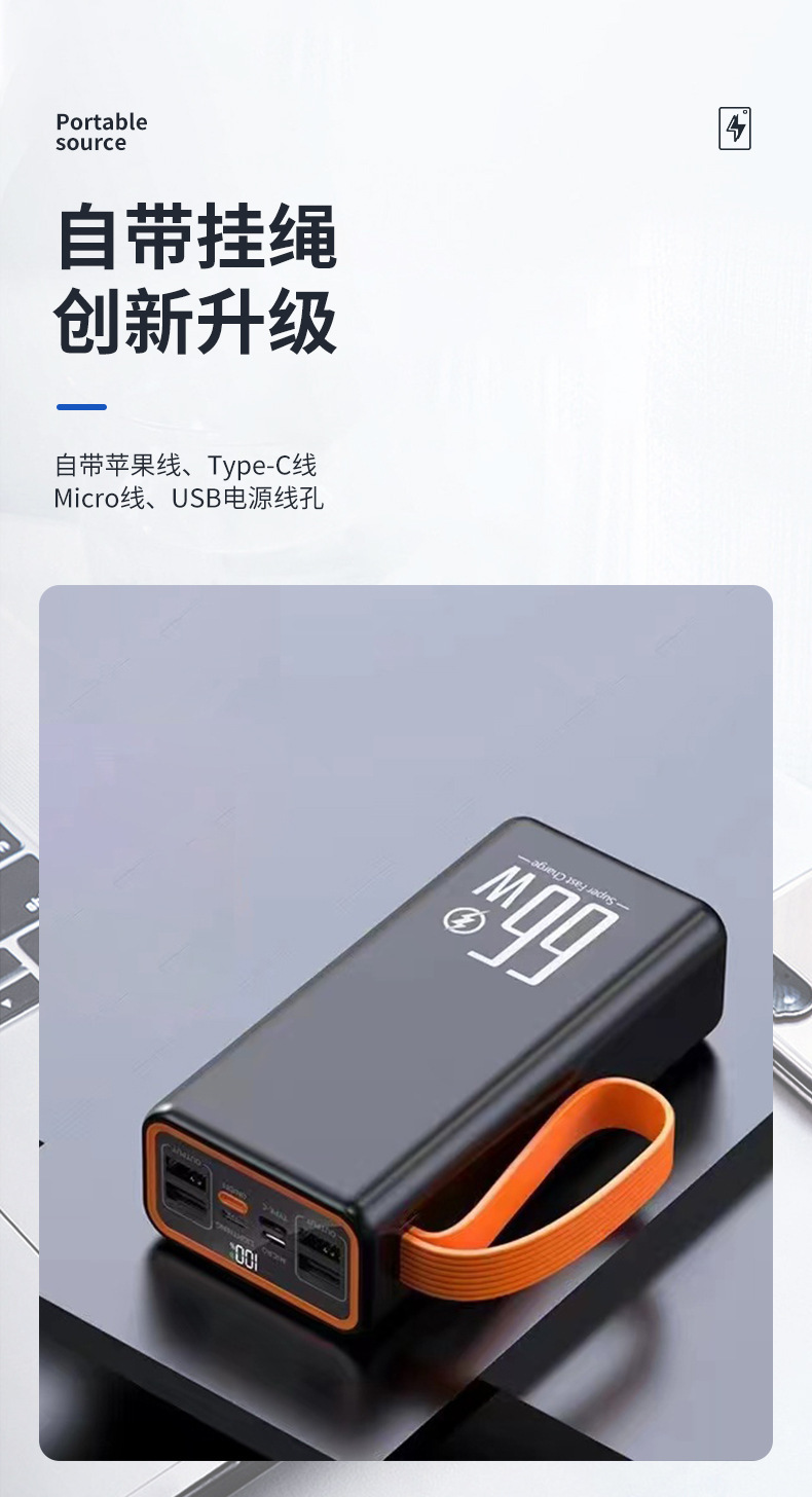 Lámpara de iluminación doble LED compacta y conveniente al aire libre con cable multipuerto doble salida USB 66w gran capacidad carga rápida tesoro de carga