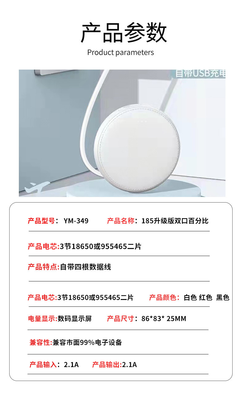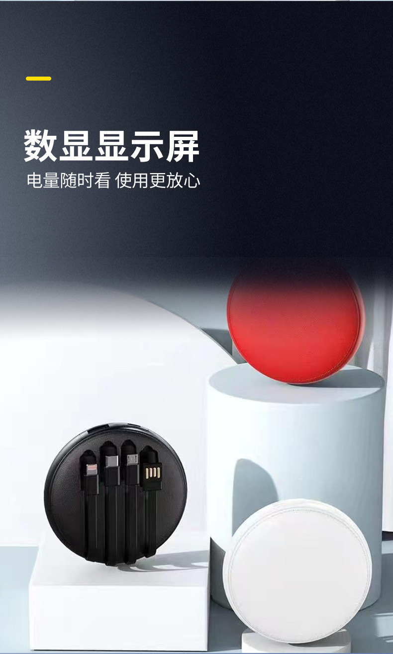 Cable de autocarga USB con cuatro cables de pantalla digital cargador, fuente de alimentación portátil al aire libre, 20000 mAh de gran capacidad