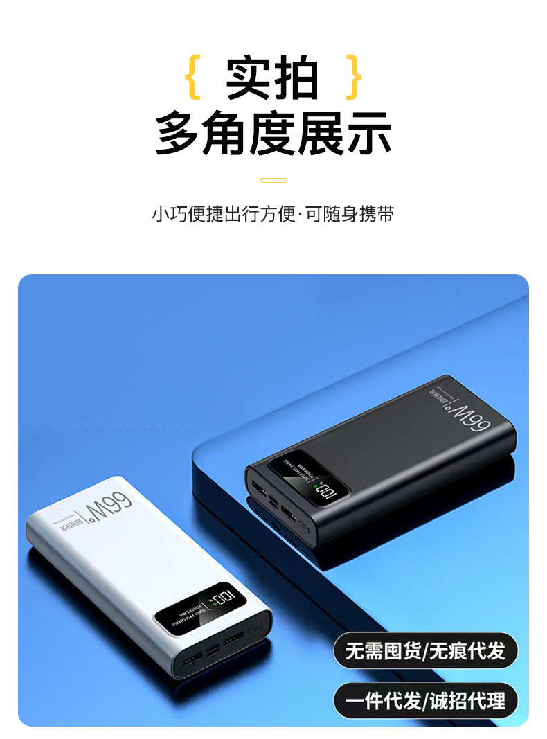 Charging Treasure, fuente de alimentación móvil de gran capacidad, pantalla digital inteligente de carga rápida, 66w, nueva batería de litio de gran capacidad.