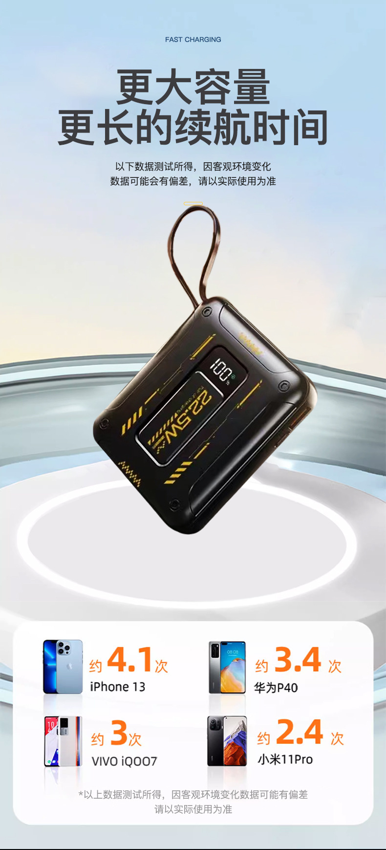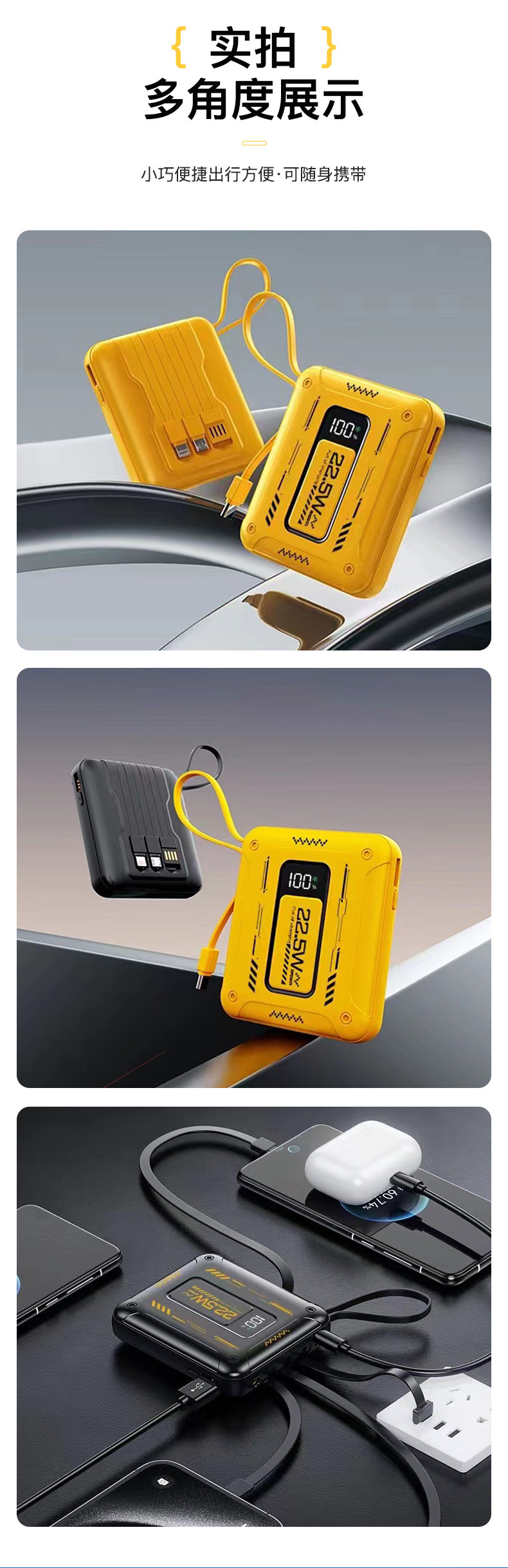 20000mAh gran capacidad pequeña fuente de alimentación portátil portátil carga rápida al aire libre con cable de carga Bao larga duración