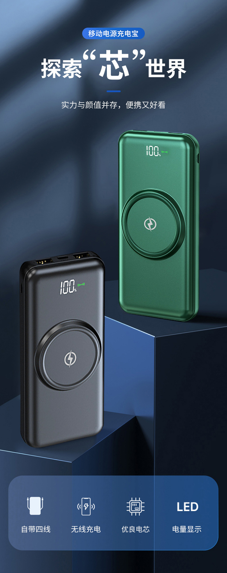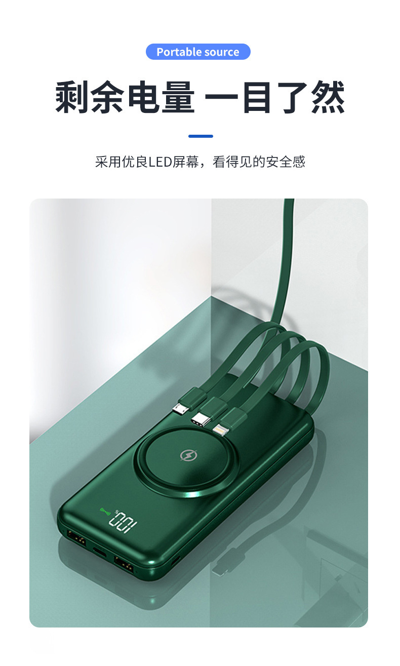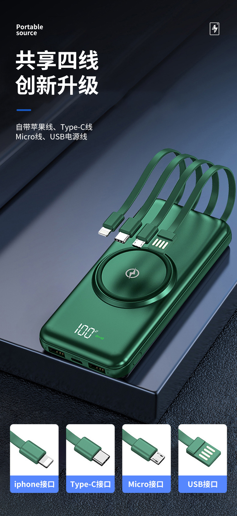 2w mAh gran capacidad de cuatro líneas de alimentación portátil delgada con cable de carga al aire libre gran capacidad portátil en stock