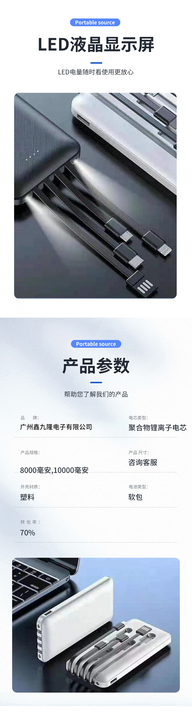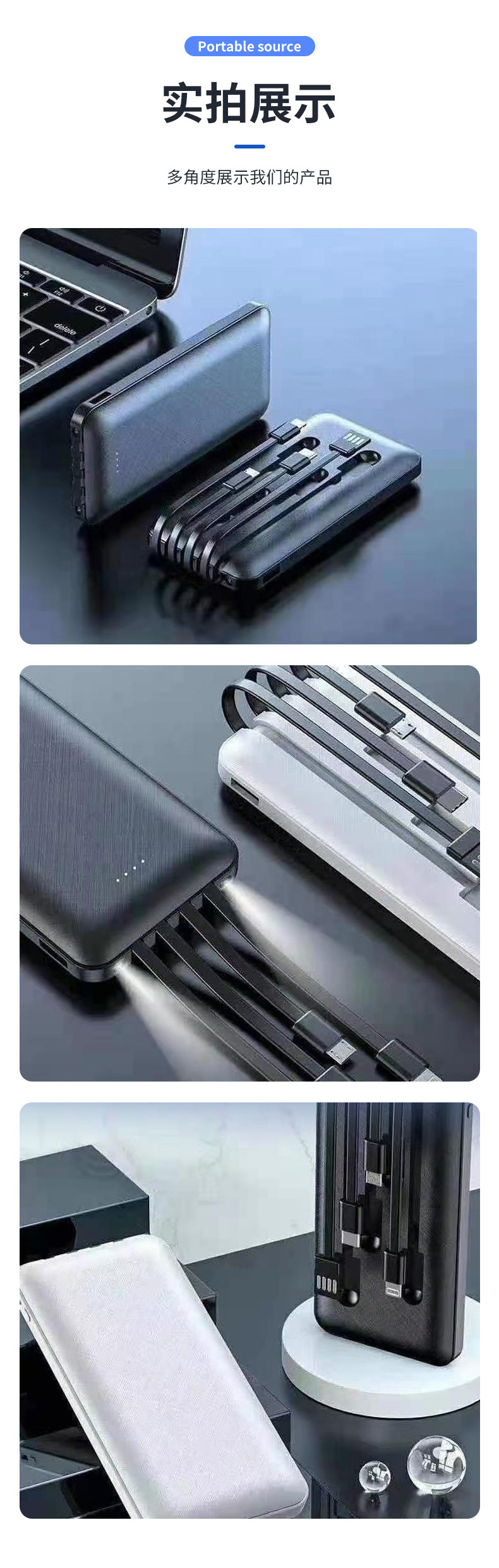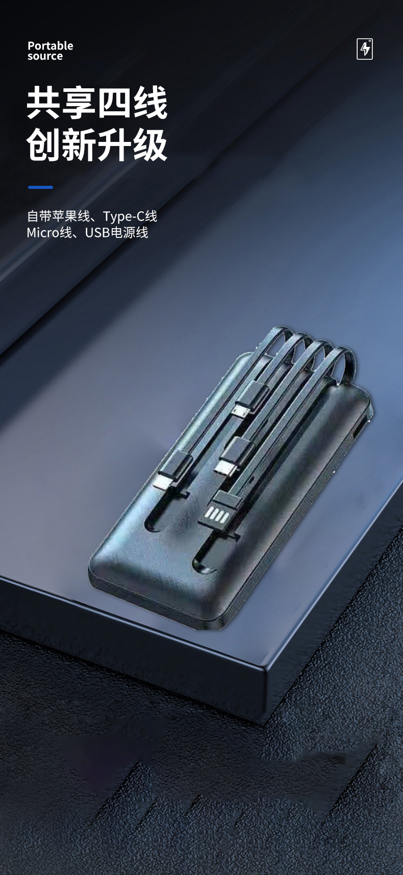 Fuente de alimentación móvil portátil al aire libre para compartir teléfono móvil multi-interfaz externa con cuatro líneas de carga de gran capacidad de larga duración