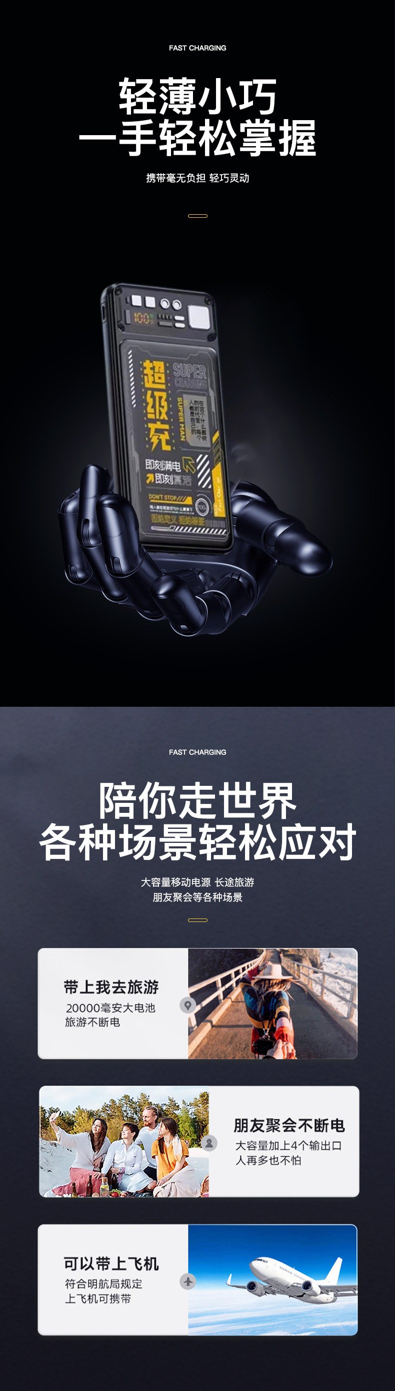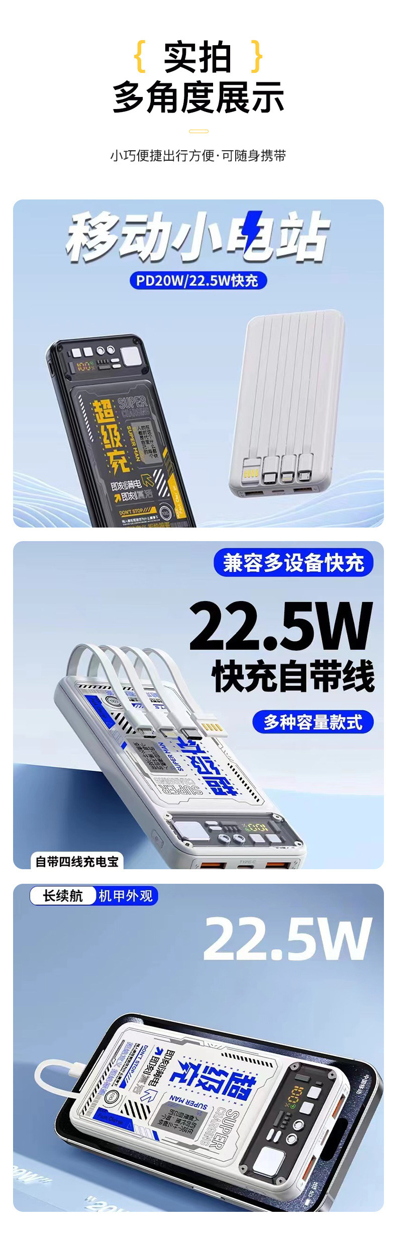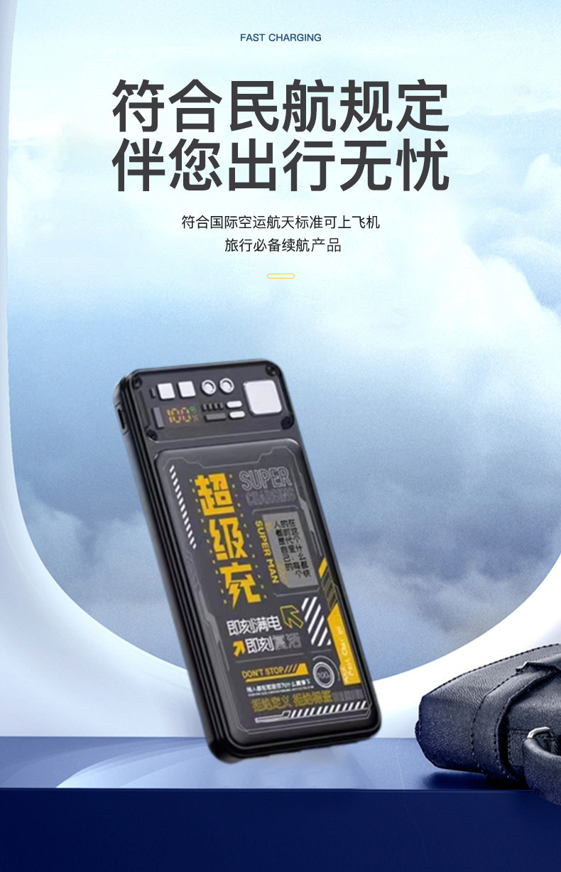 Cuatro líneas de máquina mecha viento cargador tesoro portátil de gran capacidad de diseño de carga rápida fuente de alimentación móvil multi-equipos compatibles con larga duración