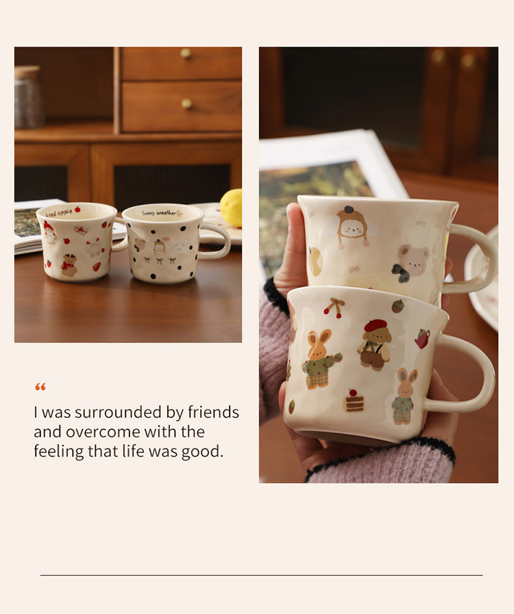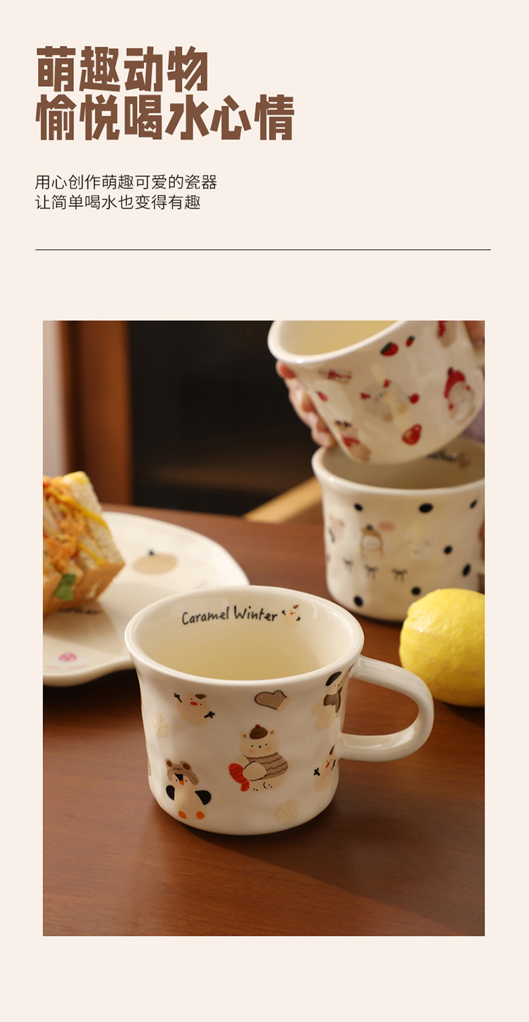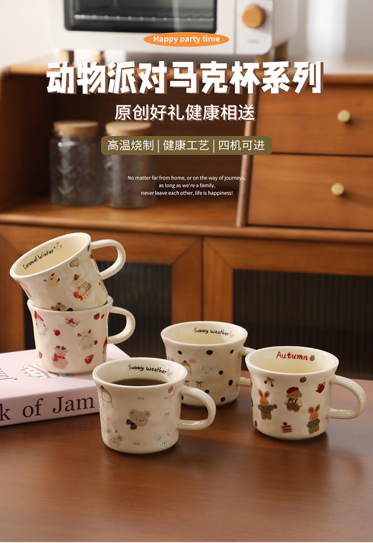 Creativo y lindo grupo de tazas de animales, tazas de cerámica para el hogar, tazas de café con leche para el desayuno de alto valor para niñas
