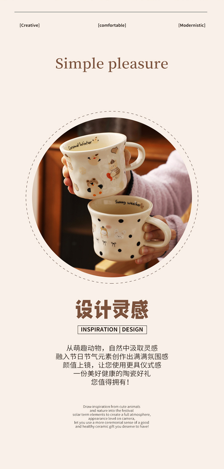 | Colores | Tres animales-mano pellizcando la taza,Un grupo de animales-mano pellizcando tazas,Conejo fresa-taza de mano,Taza de pellizco de mano de pingüino de caramelo,Cachorro castaña-taza de mano |