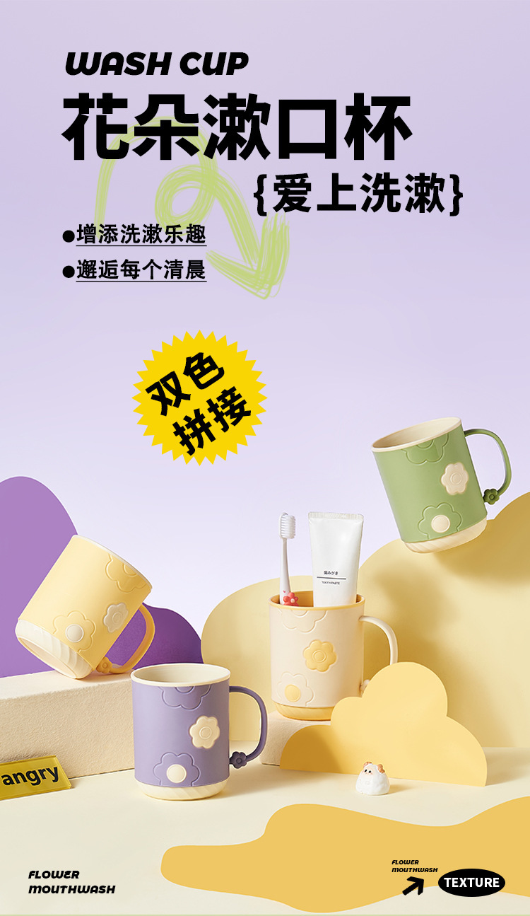 Flores de plástico creativo engrosado taza de enjuague encantador taza de lavado de chicas taza de cepillo de dientes taza de lavado casera taza de agua taza de dientes