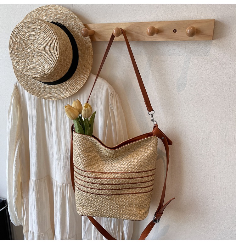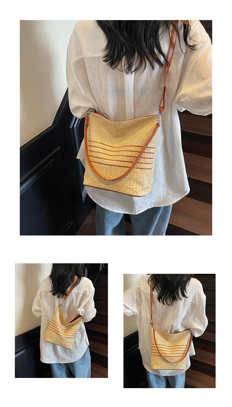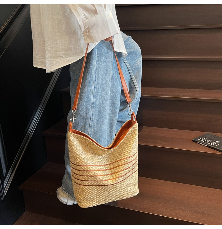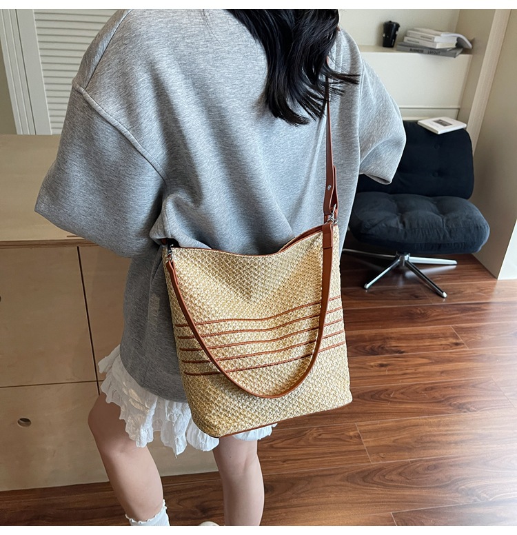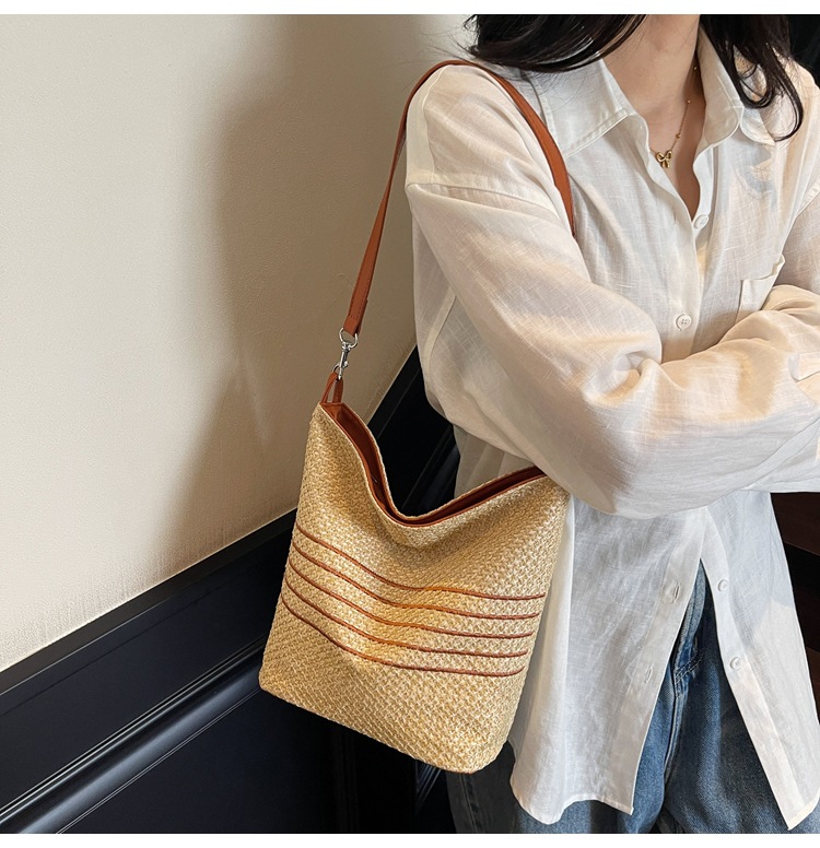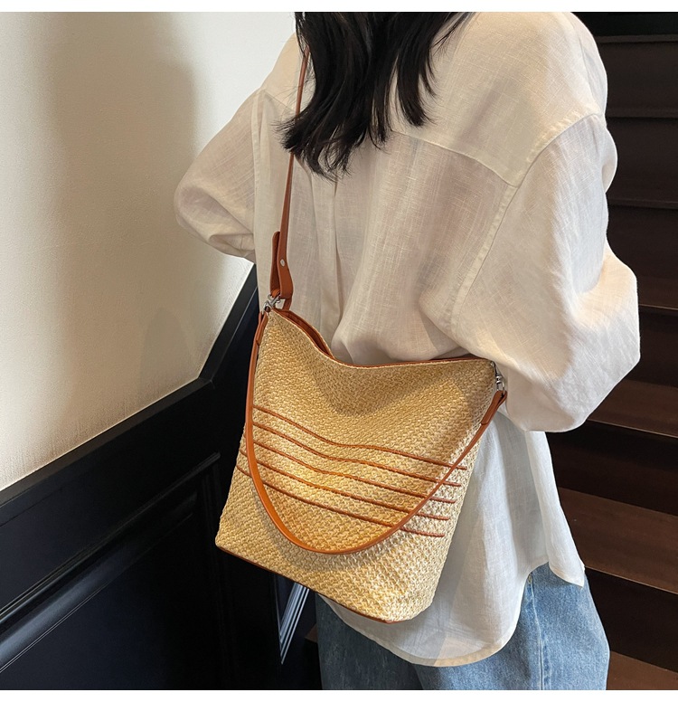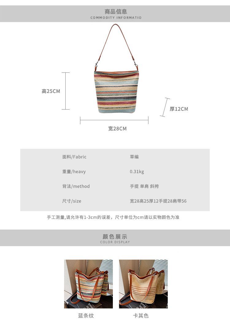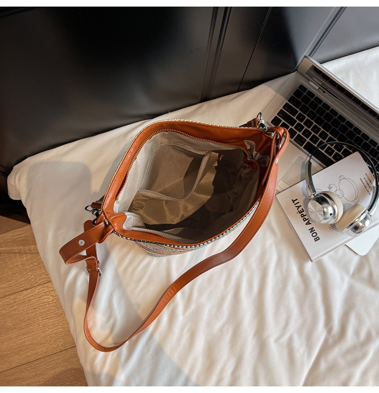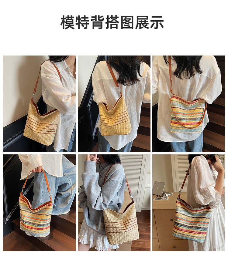Bolso de axila de arcoíris tejido de moda de verano para mujer 2025 nuevo bolso de hombro de moda de estilo occidental bolso de cubo de mensajero de todo fósforo