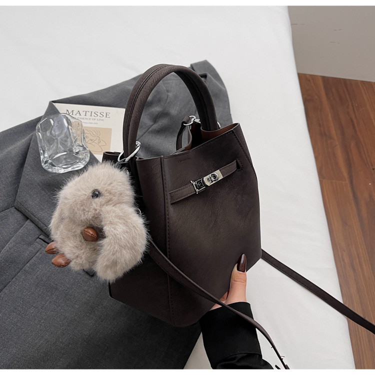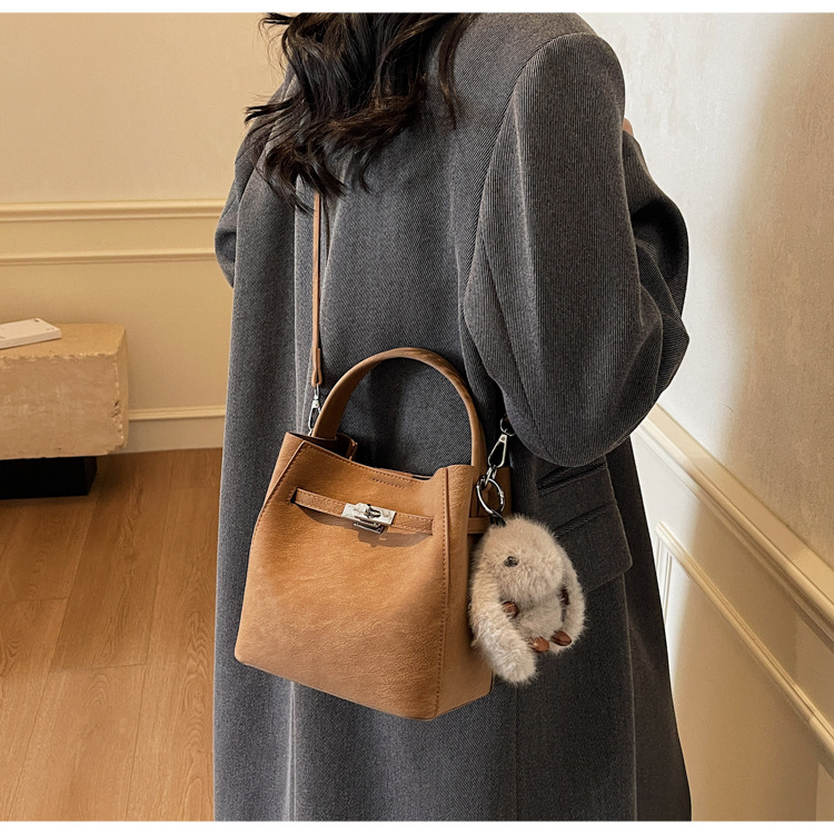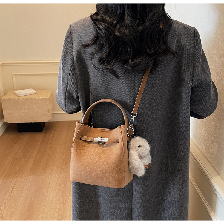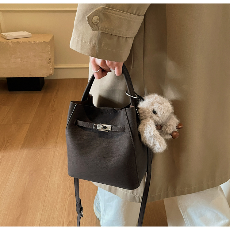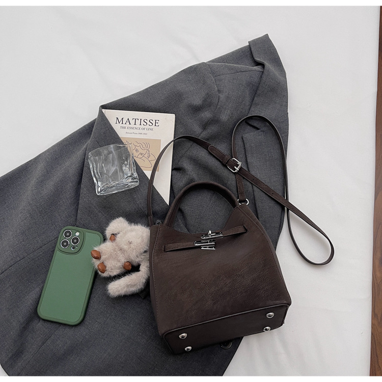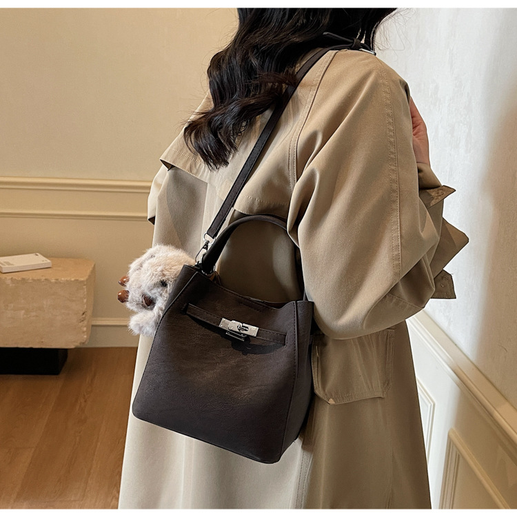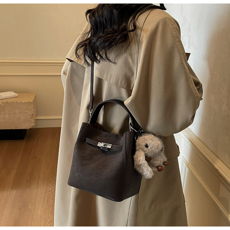 Transfronterizos otoño invierno hija bolsa retro versátil bolso de cubo portátil 2025 nuevo estilo de alta calidad sensación de hombro mochila moda