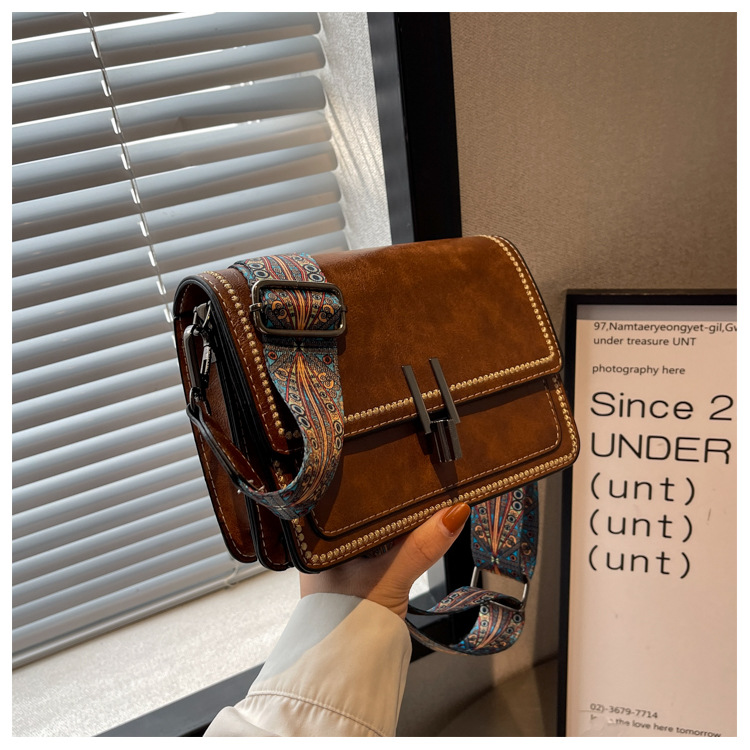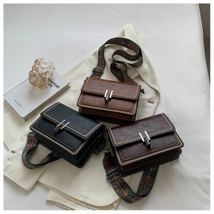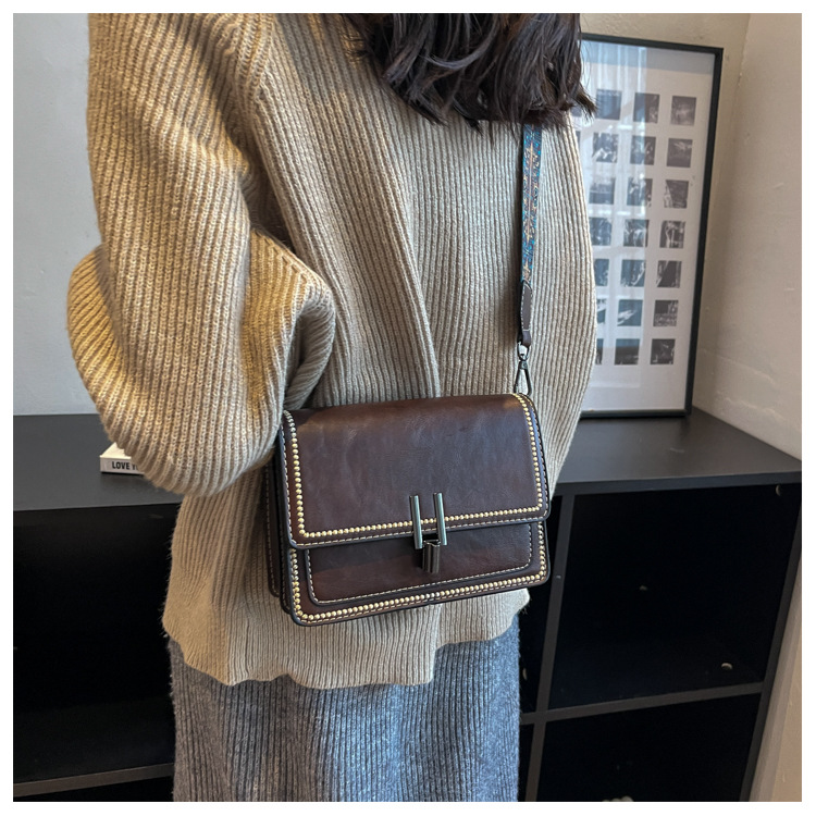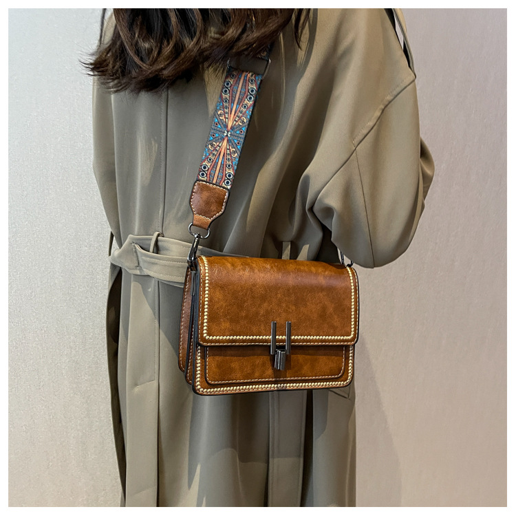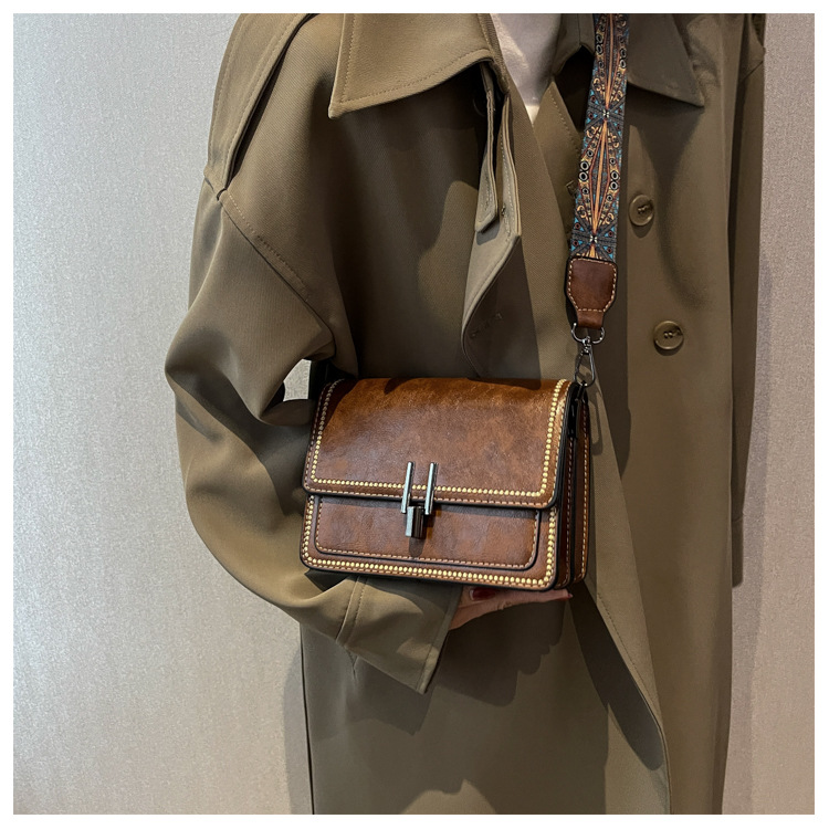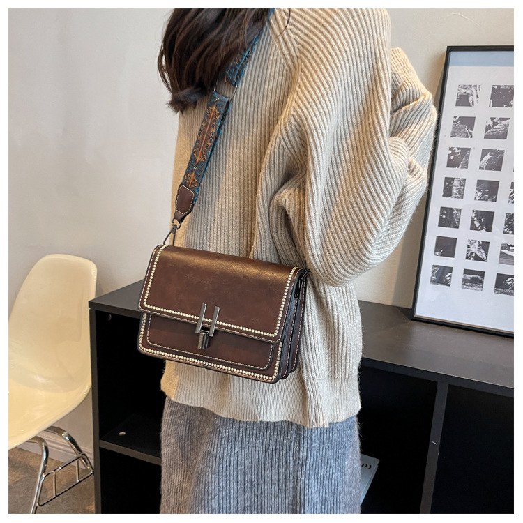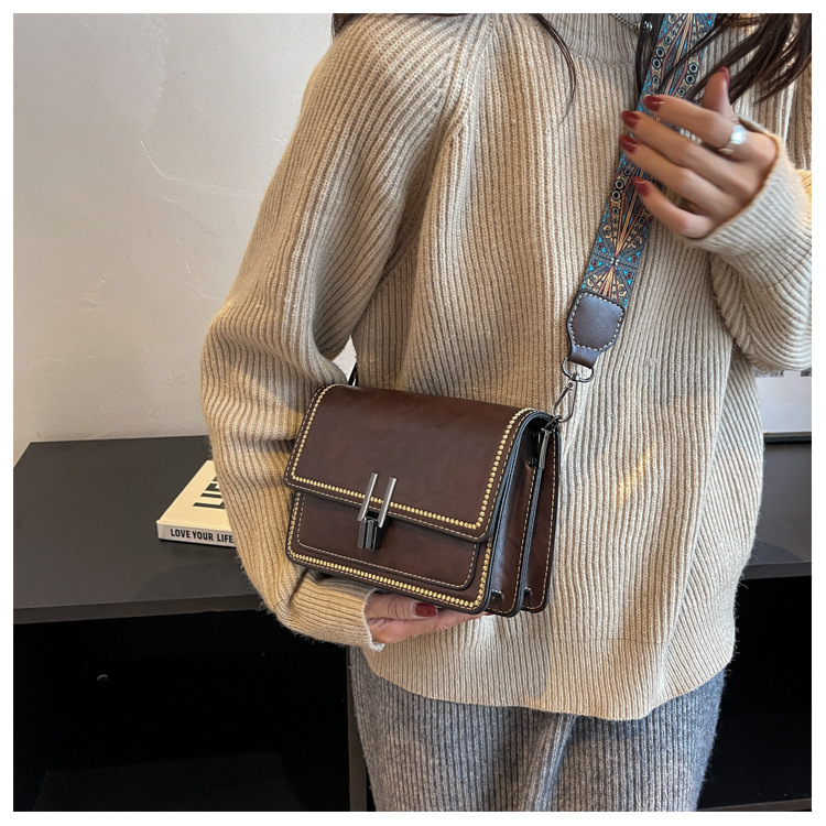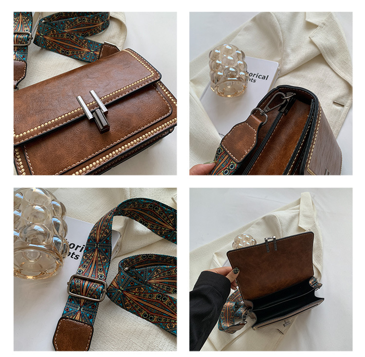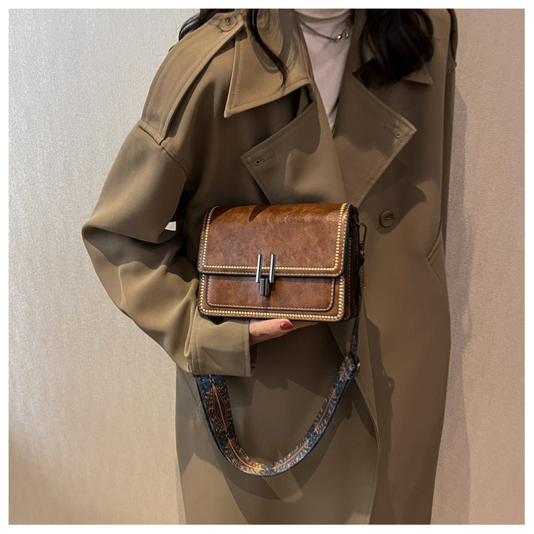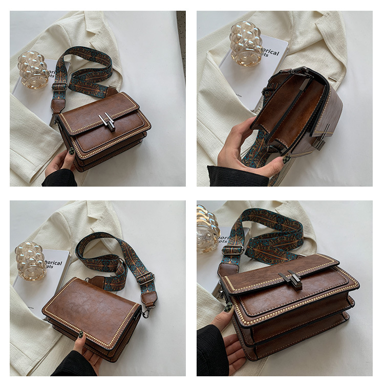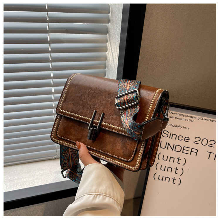 Popular retro textura bolso cuadrado para mujeres 2025 nuevo estilo simple de moda bolso de hombro correa ancha mochila casual