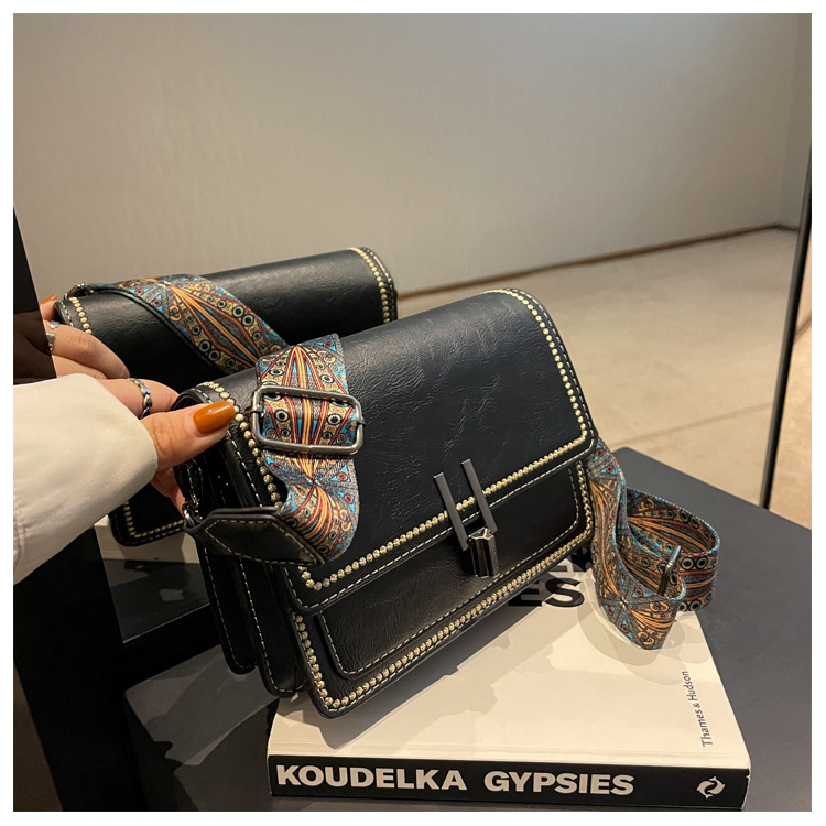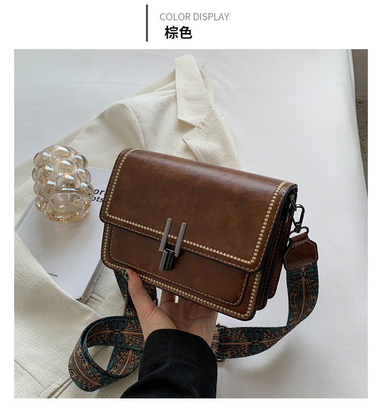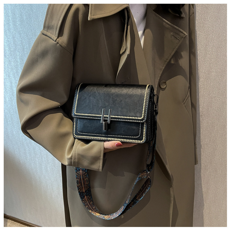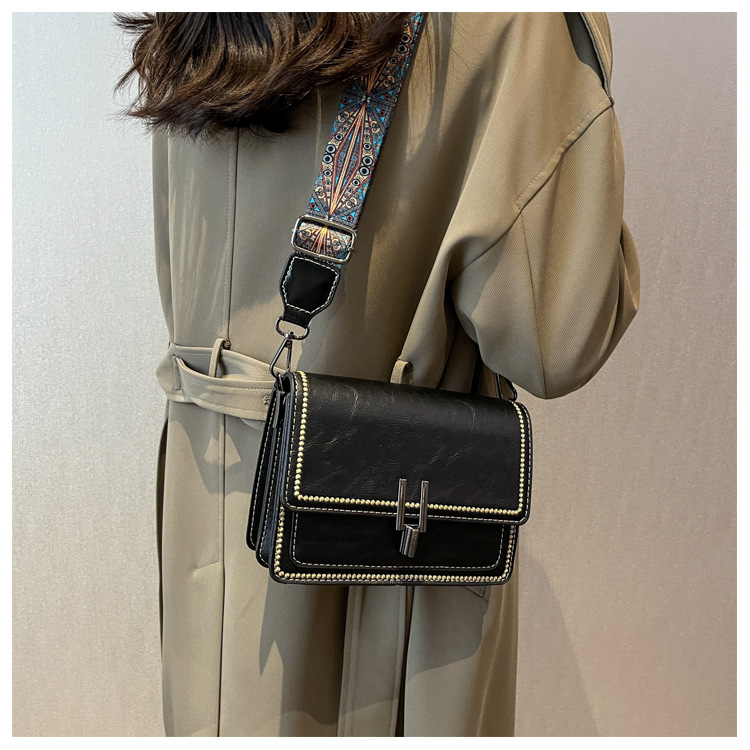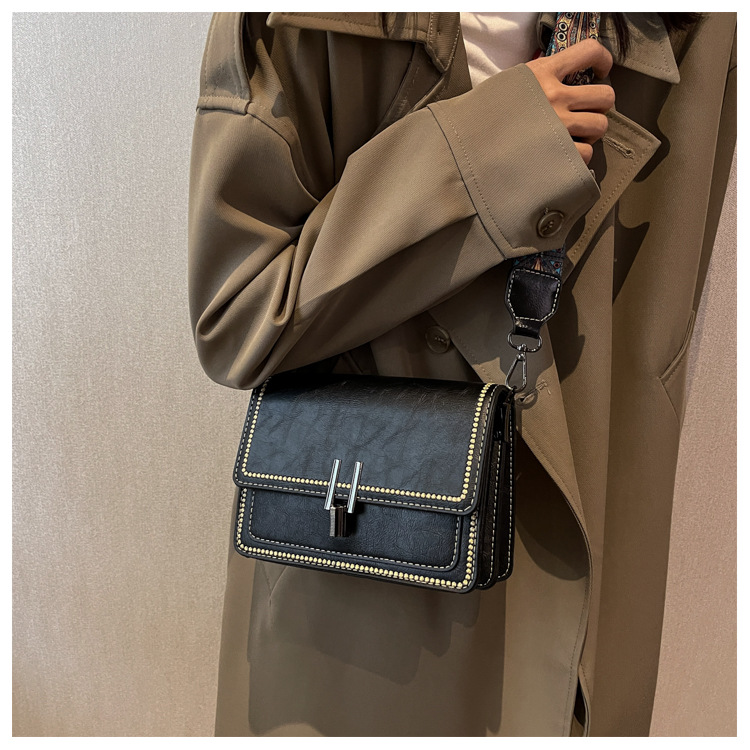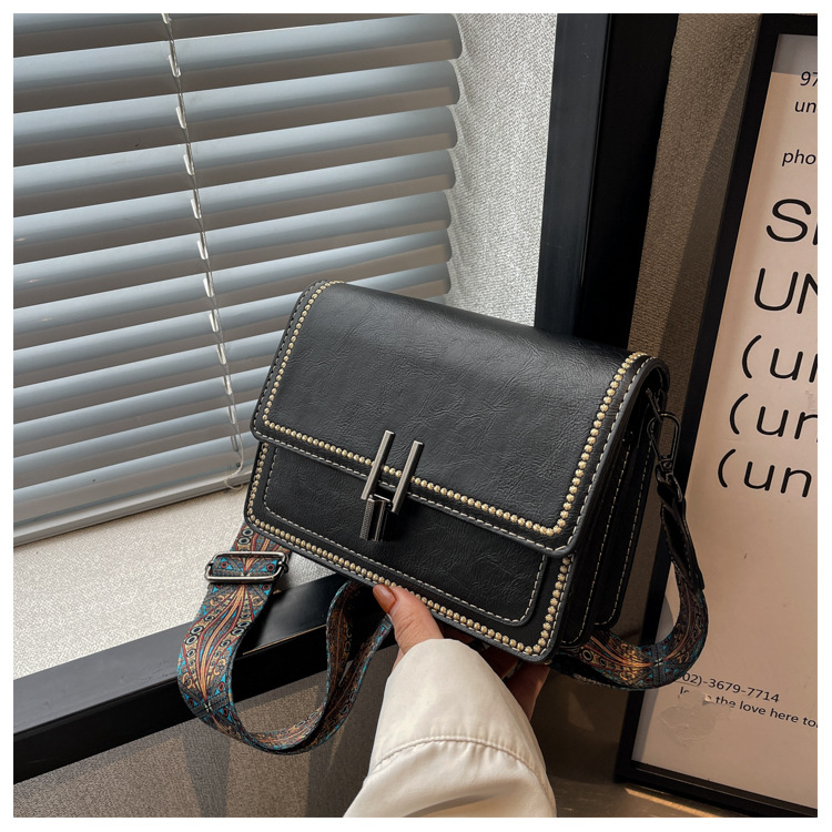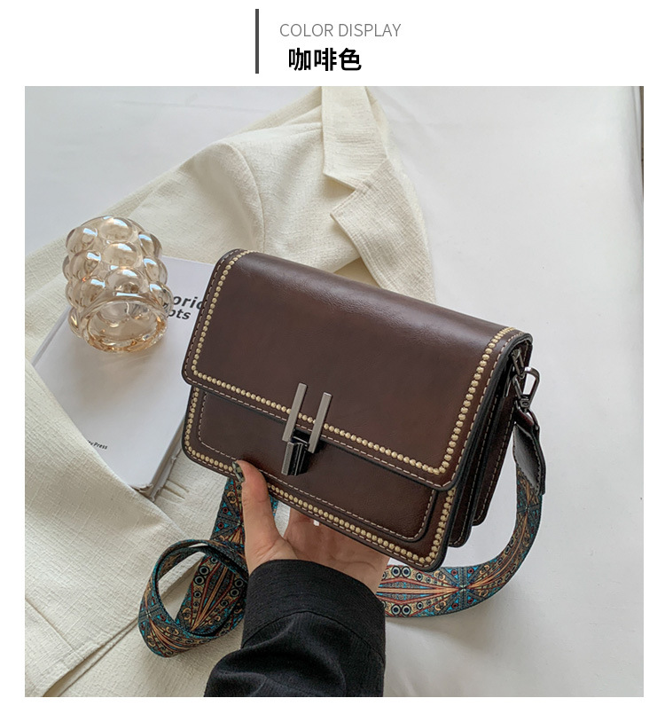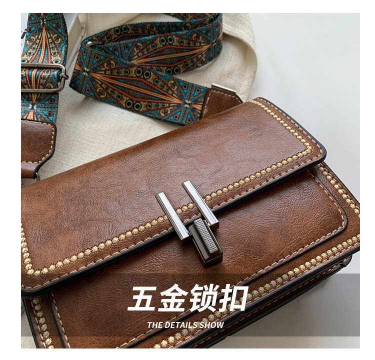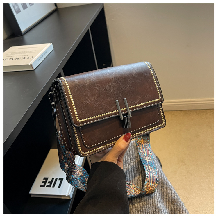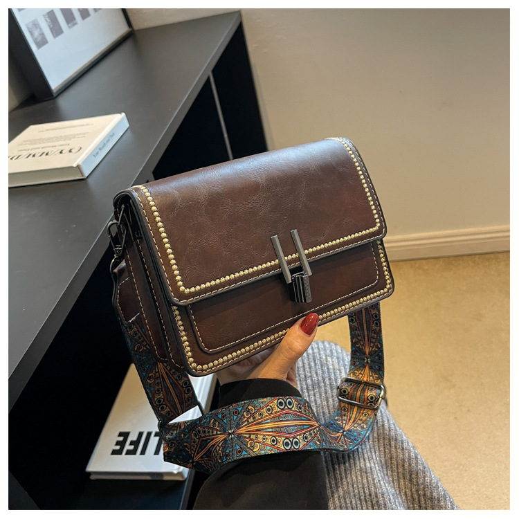 Popular retro textura bolso cuadrado para mujeres 2025 nuevo estilo simple de moda bolso de hombro correa ancha mochila casual