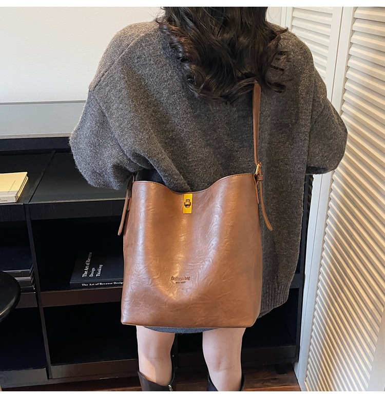 Bolsa de viaje retro coreana para mujeres 2025 invierno nuevo paquete de cubo de hombro de gran capacidad bolsa de mochila casual