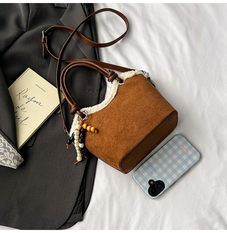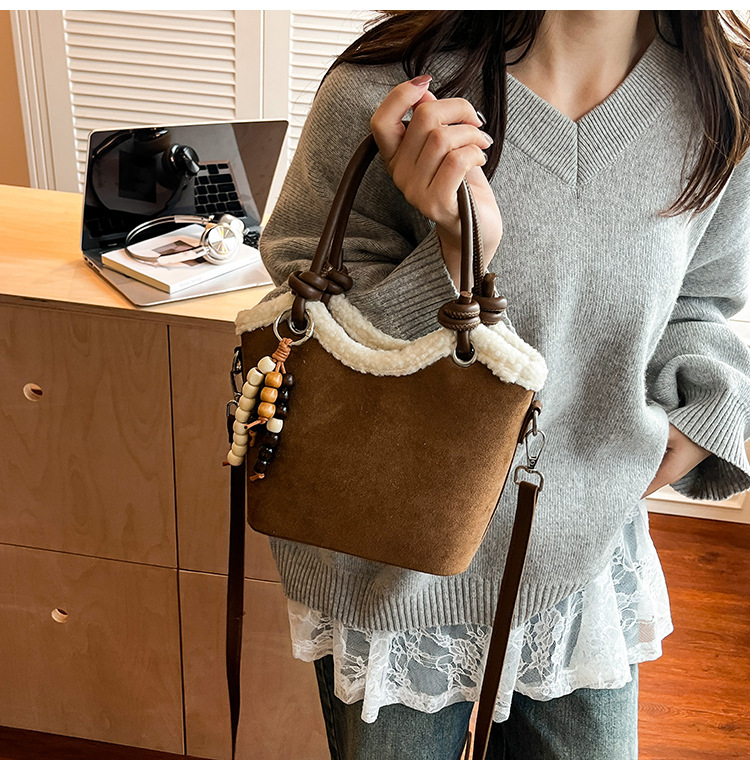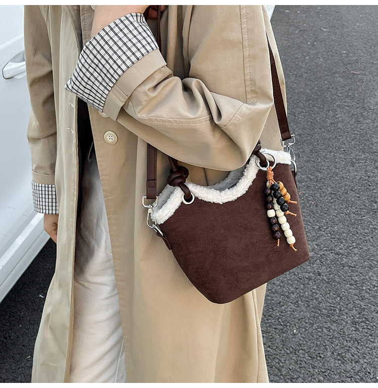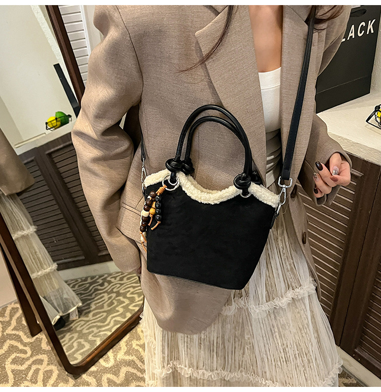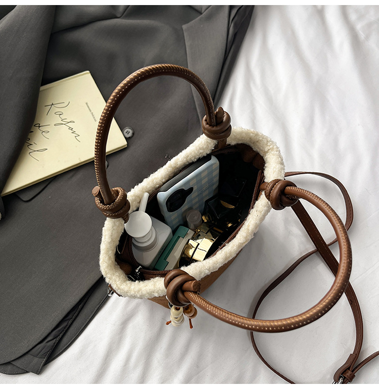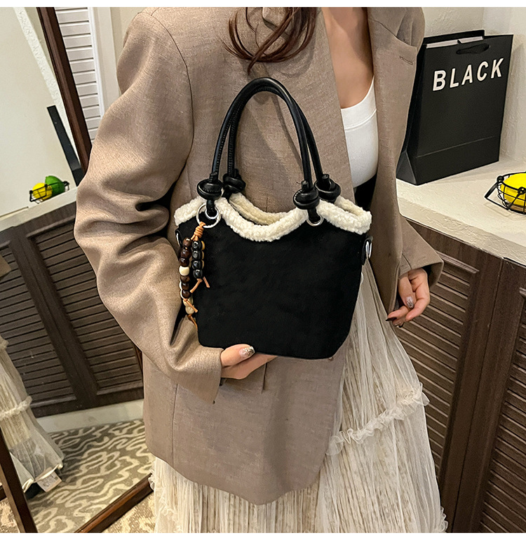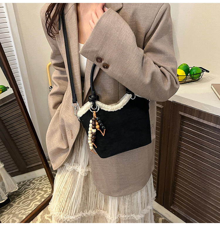 Otoño y invierno coreano bolso de terciopelo de seda mujer 2025 nueva moda versátil bolso de cubo de viaje mochila de hombro