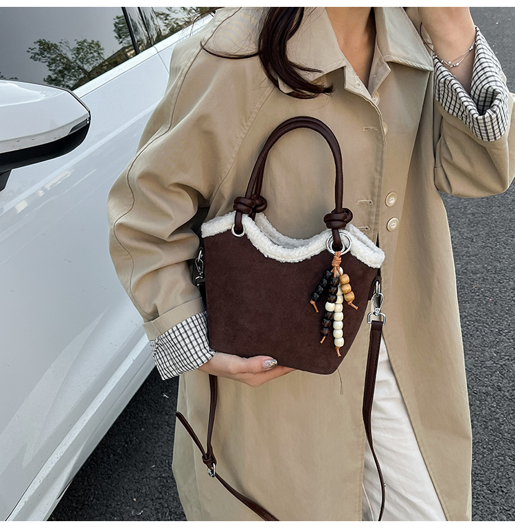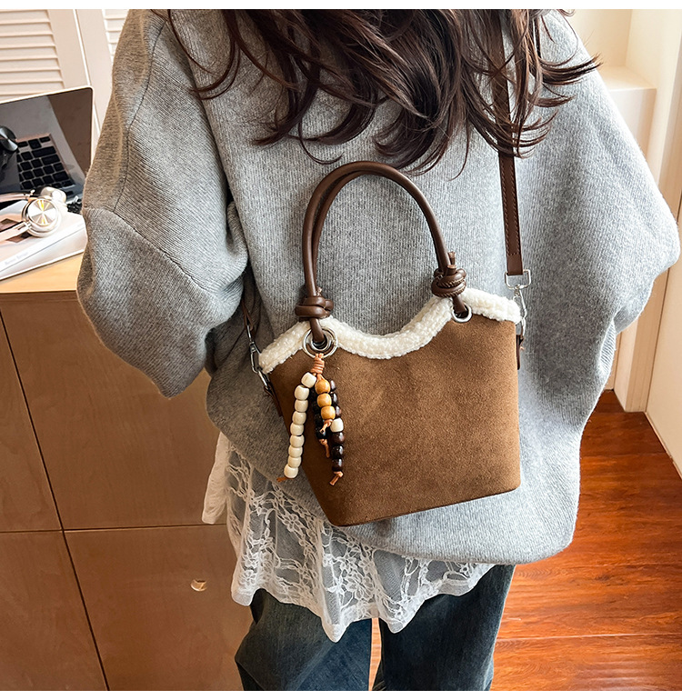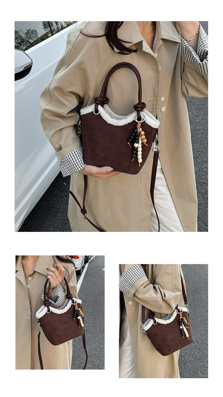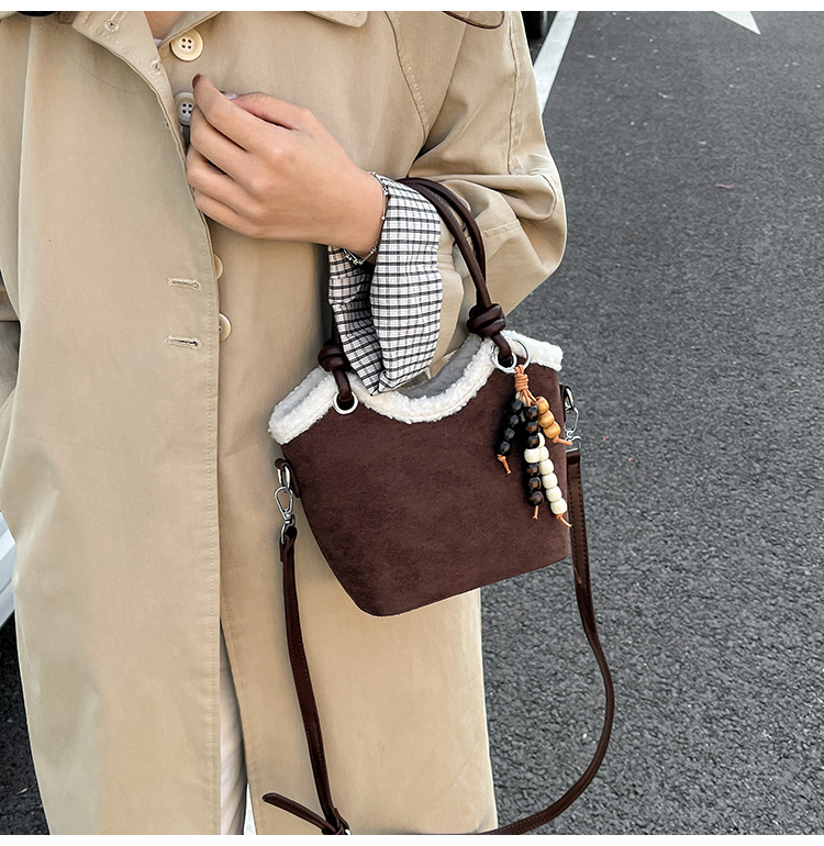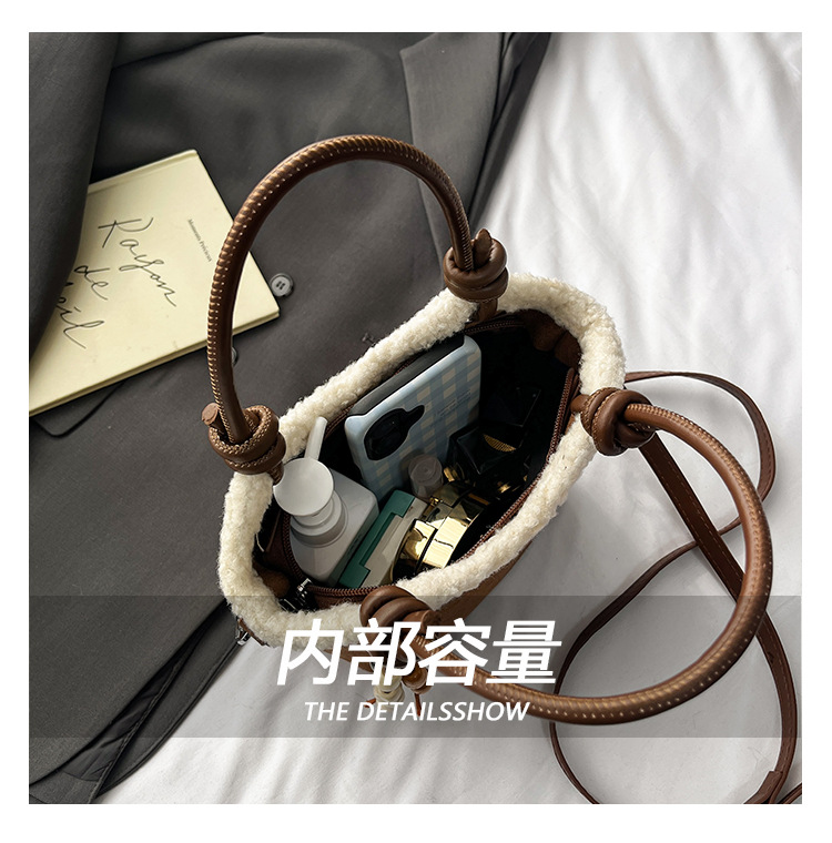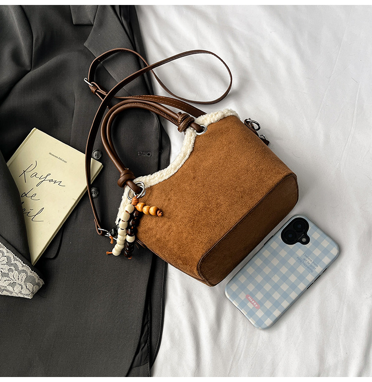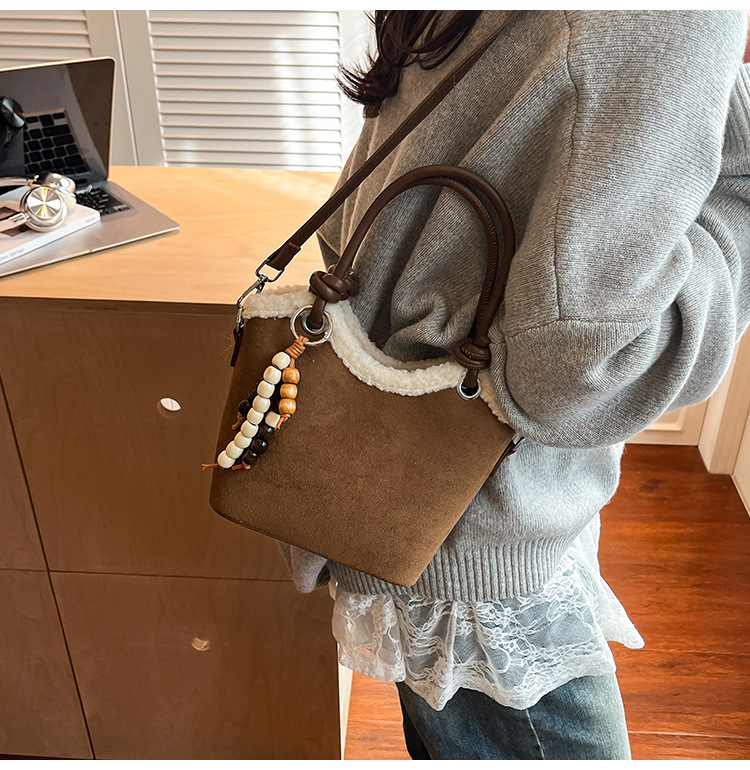 Otoño y invierno coreano bolso de terciopelo de seda mujer 2025 nueva moda versátil bolso de cubo de viaje mochila de hombro