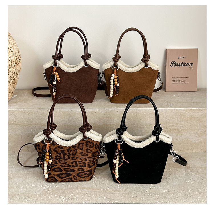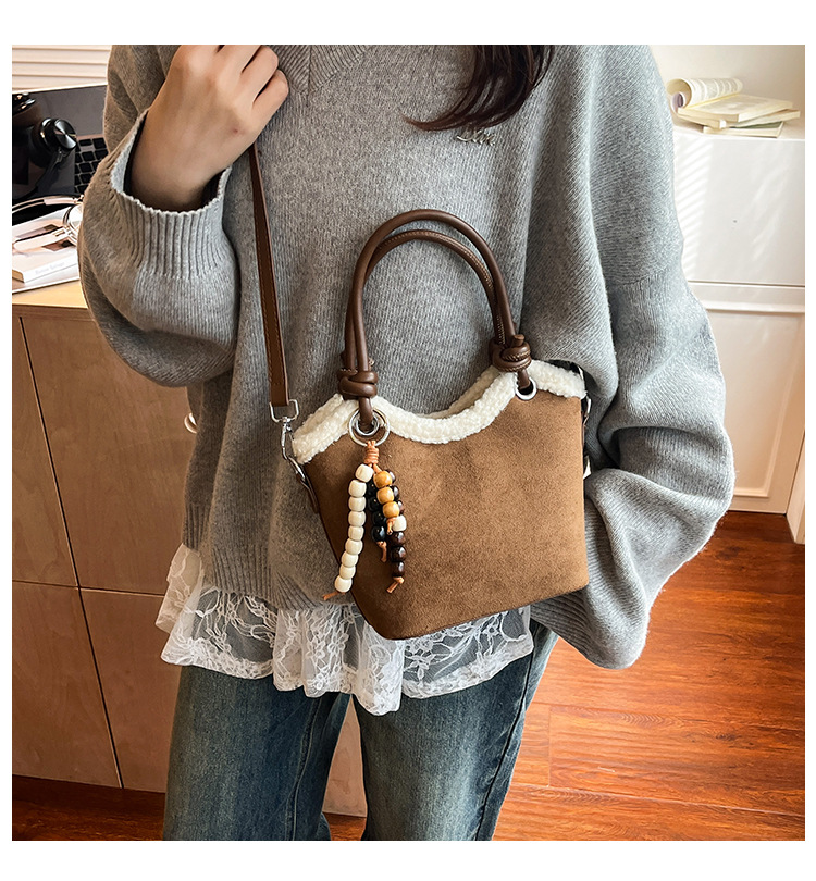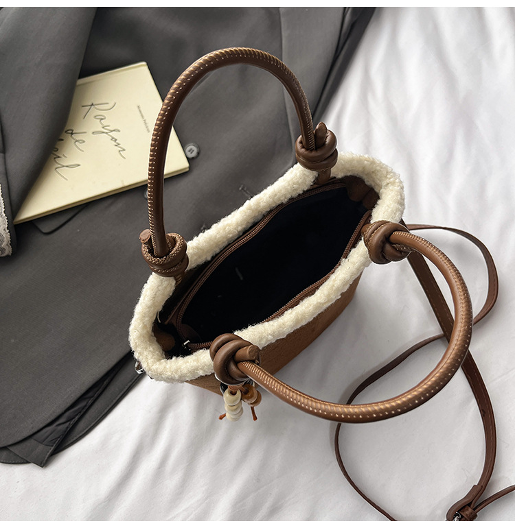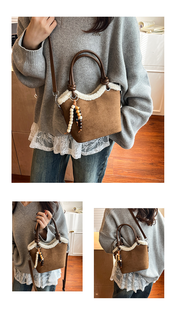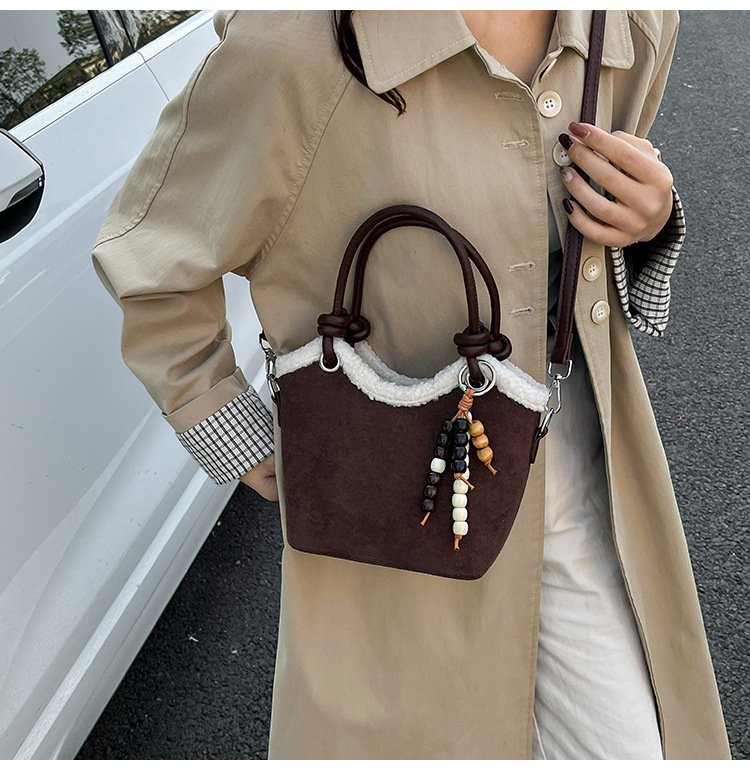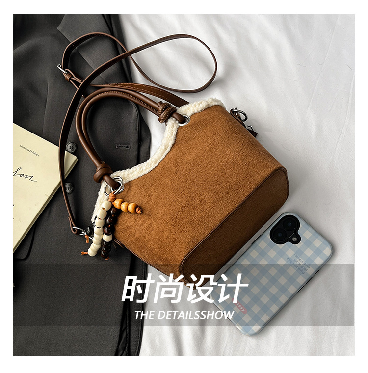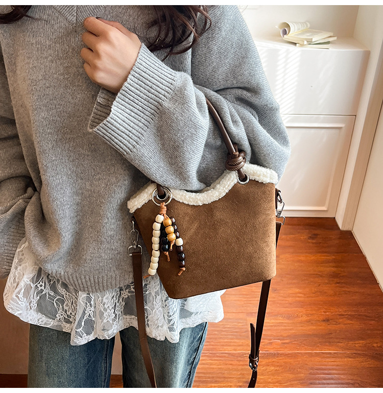 Otoño y invierno coreano bolso de terciopelo de seda mujer 2025 nueva moda versátil bolso de cubo de viaje mochila de hombro