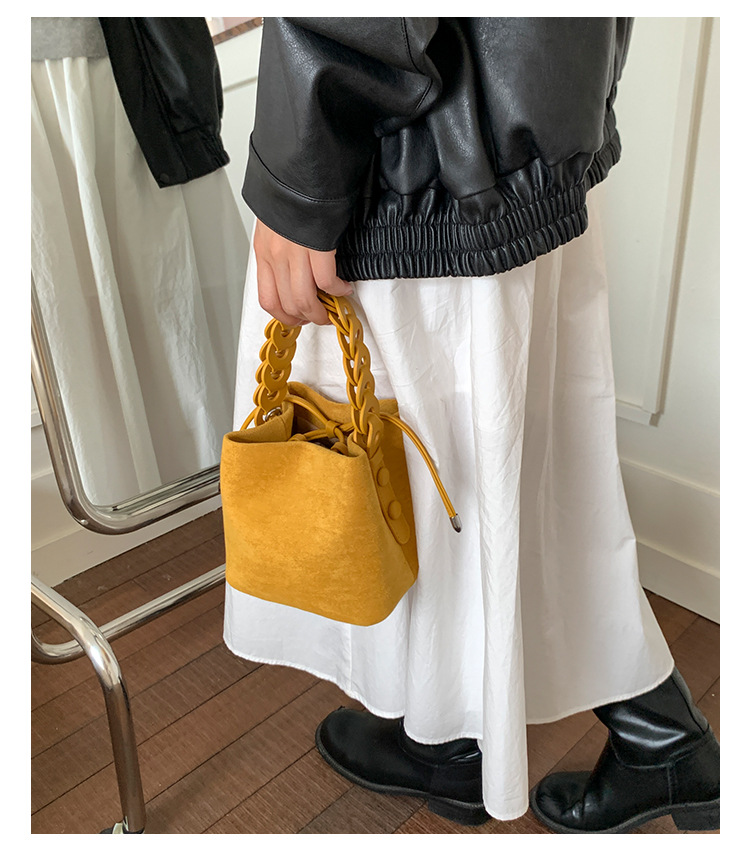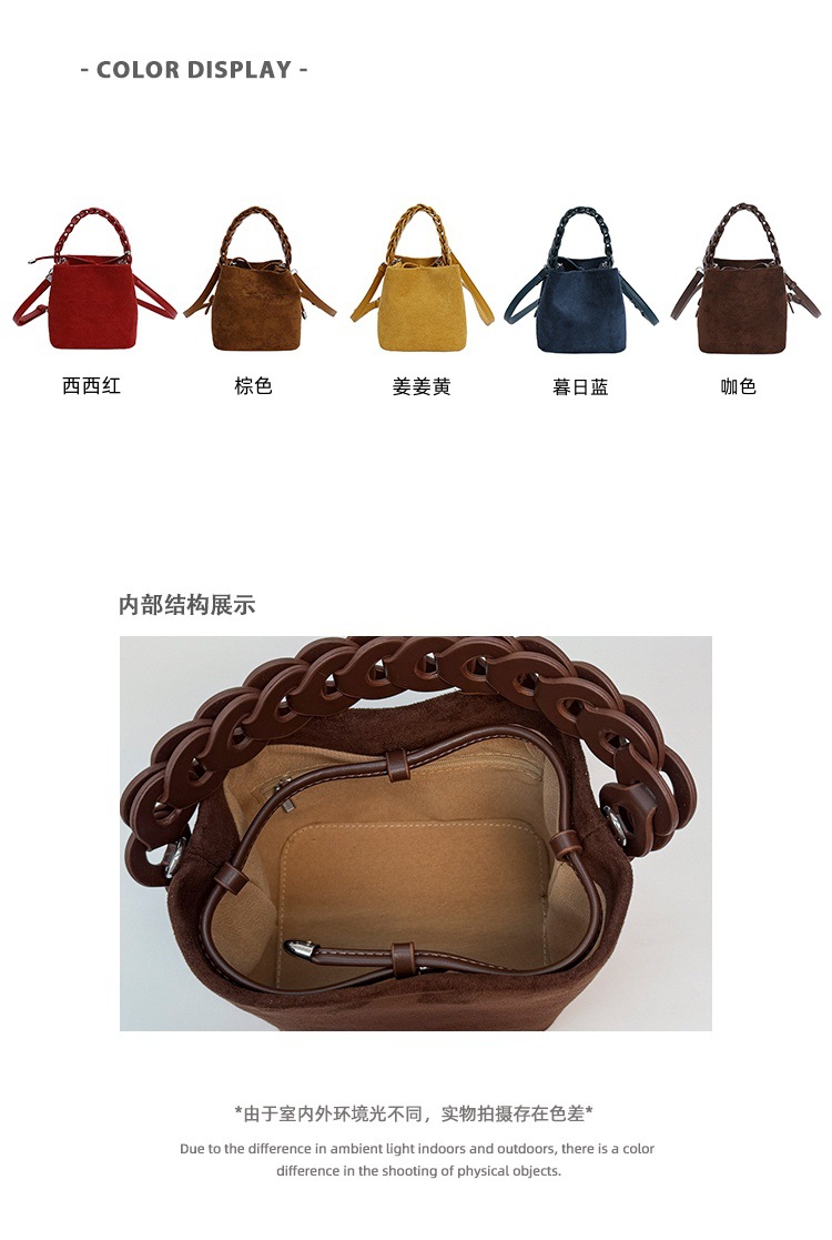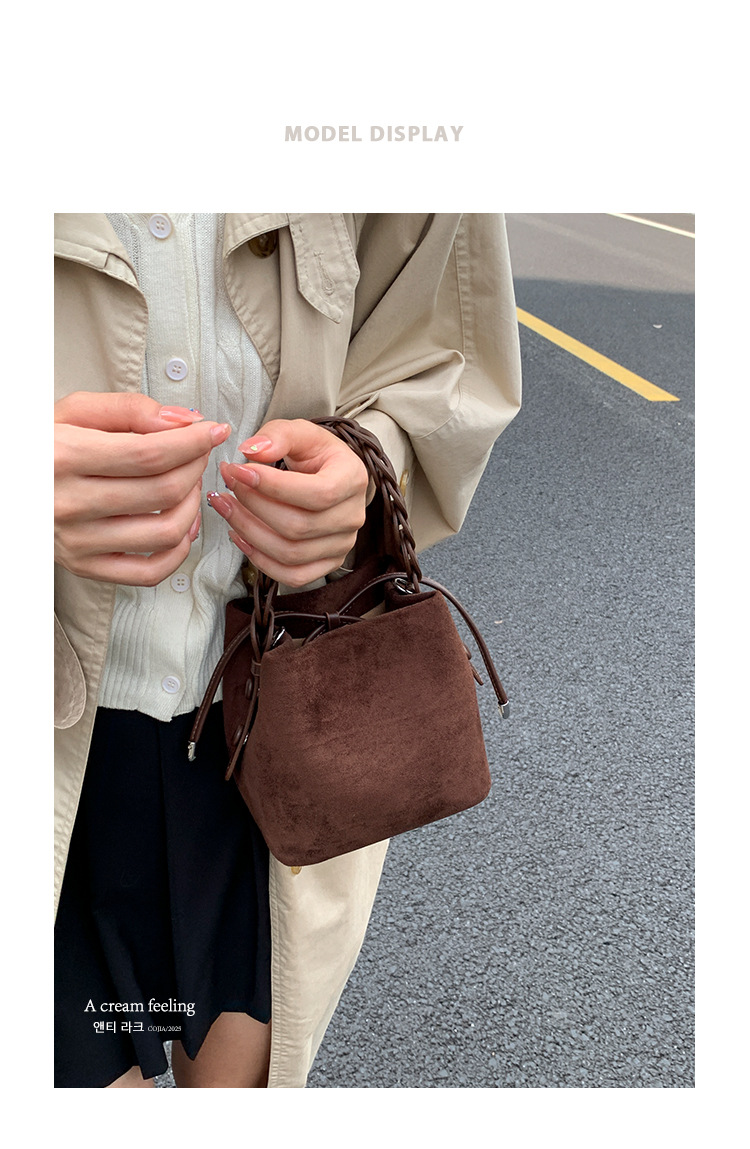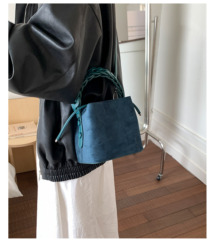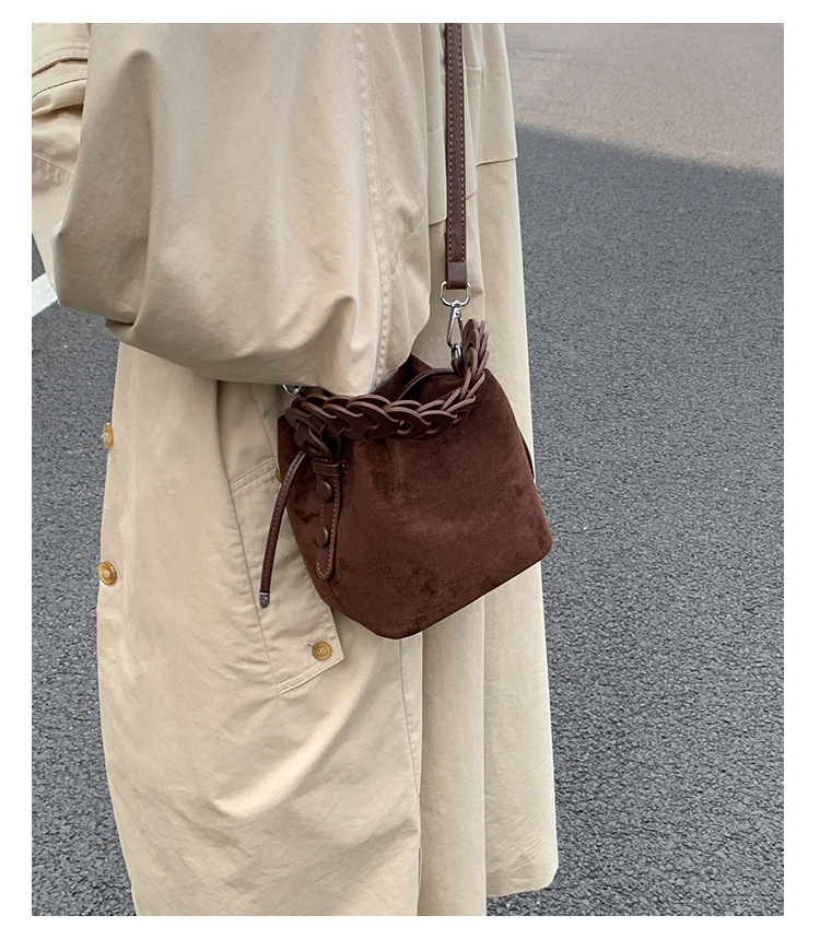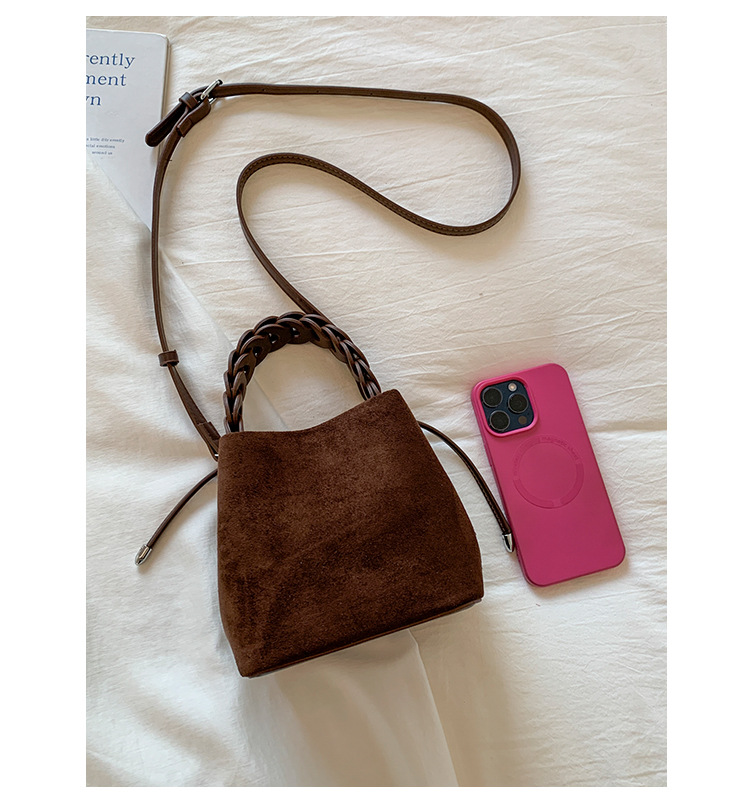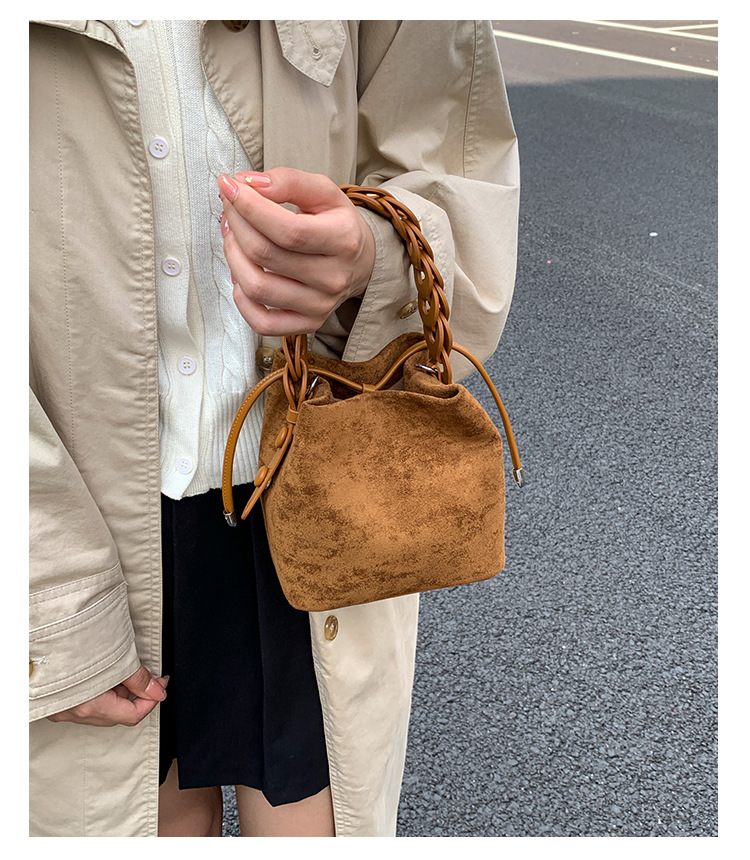 Xiaozhong bolso de cubo de seda de lana de invierno para mujeres bolso de mano retro color contraste 2026 nuevo viaje de hombro mochila