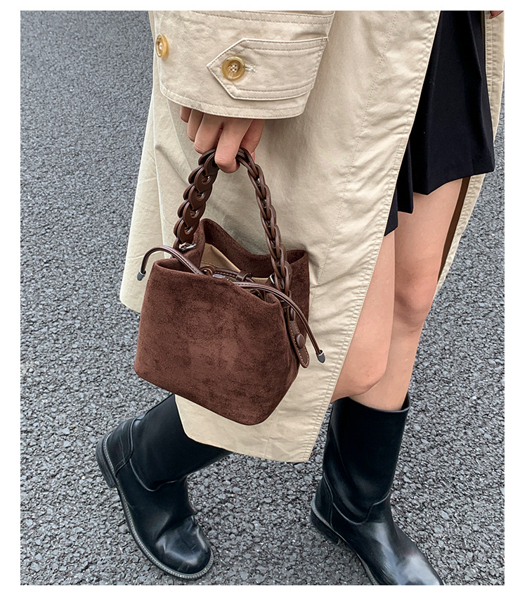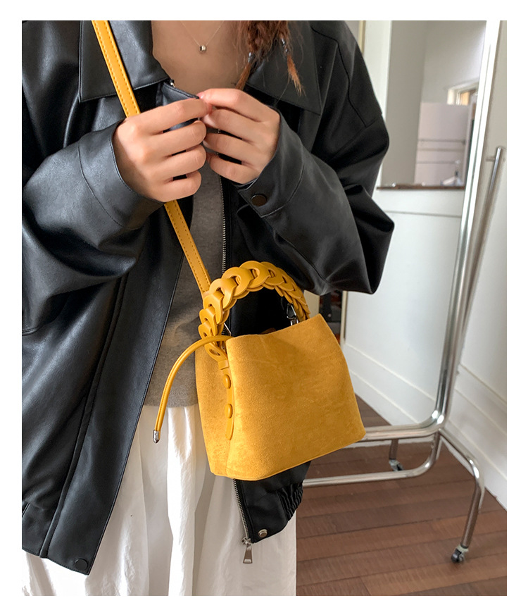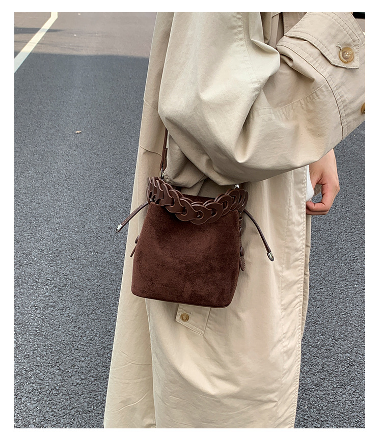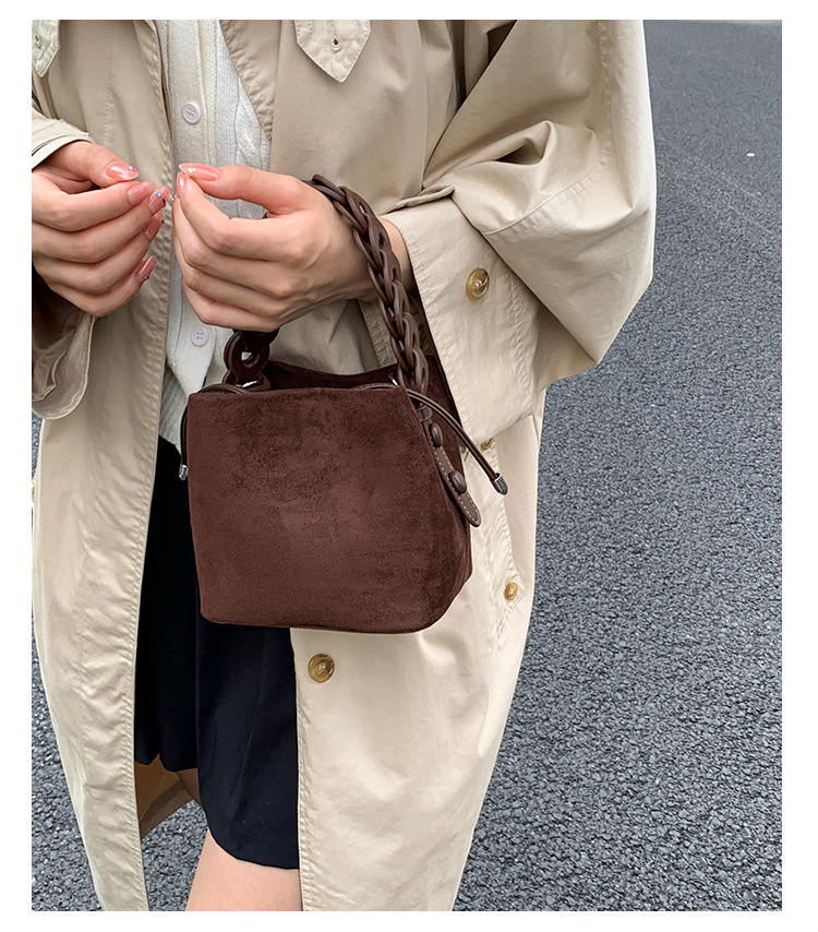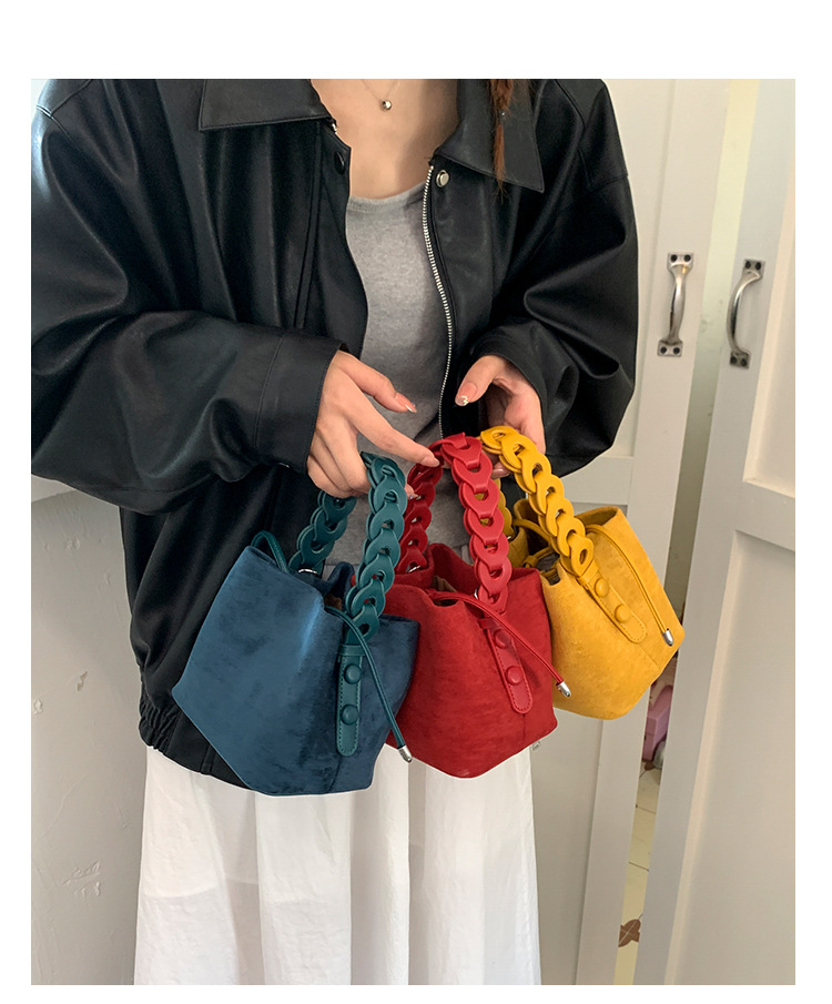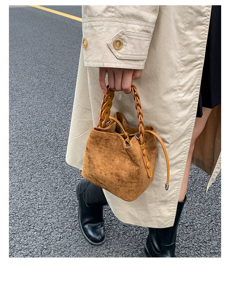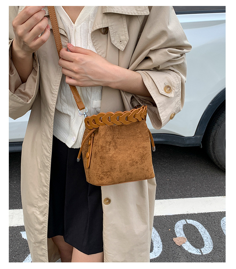 Xiaozhong bolso de cubo de seda de lana de invierno para mujeres bolso de mano retro color contraste 2026 nuevo viaje de hombro mochila