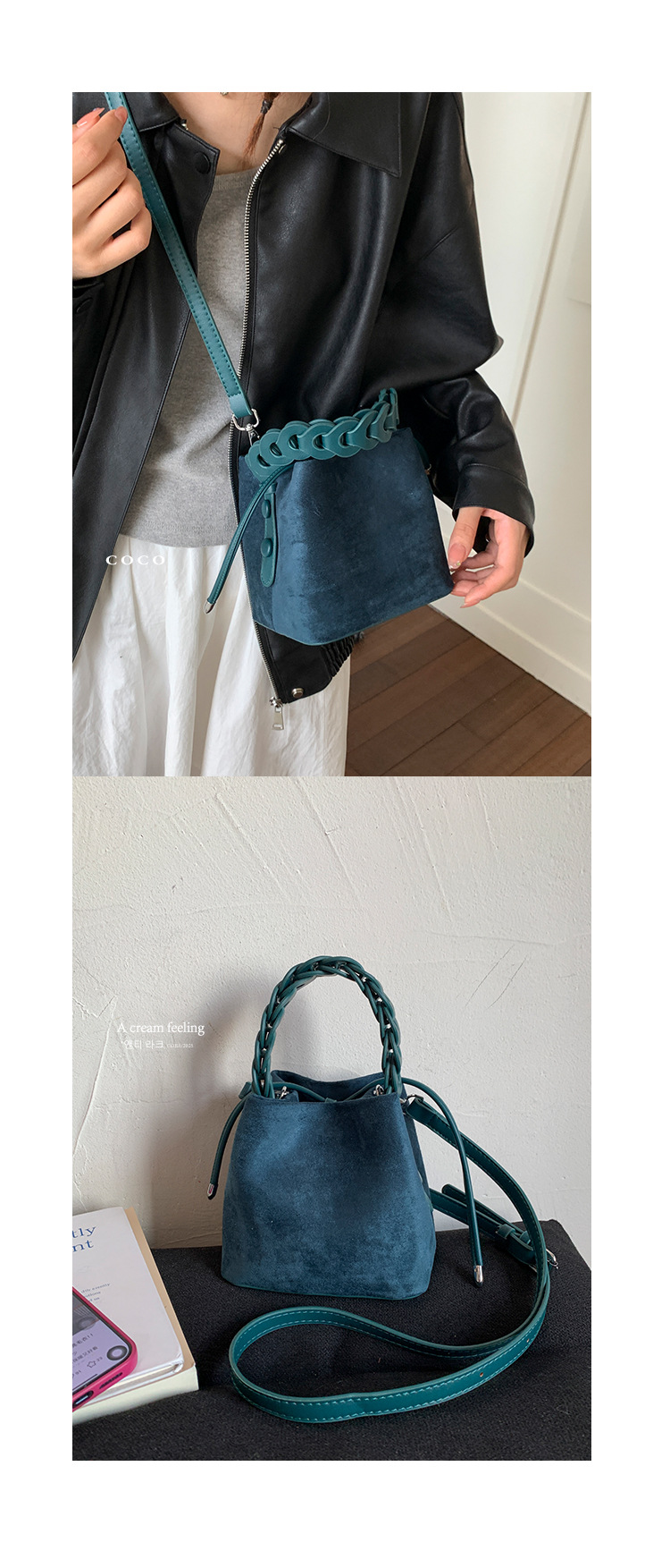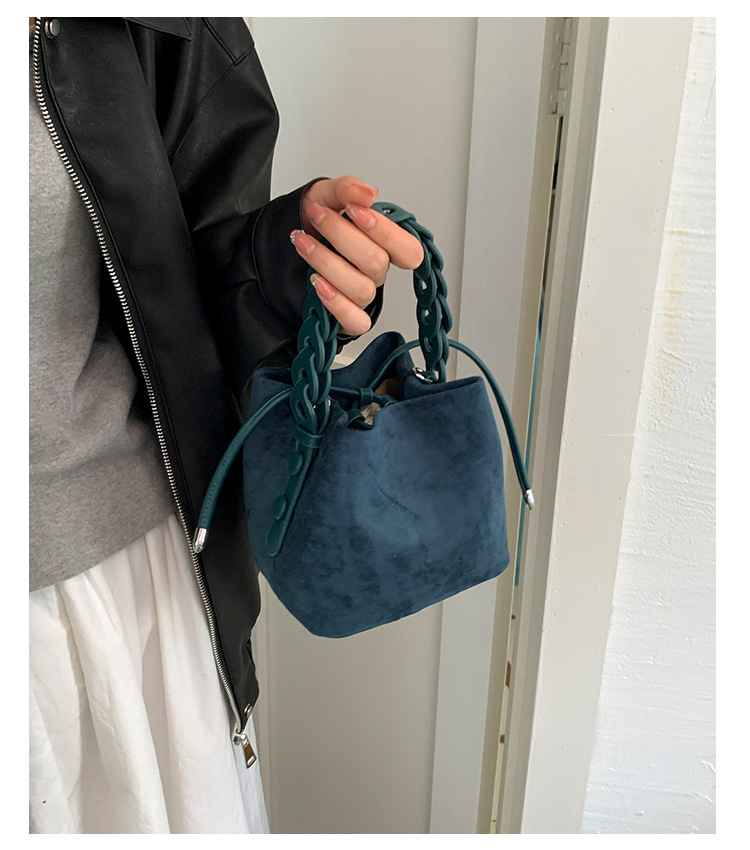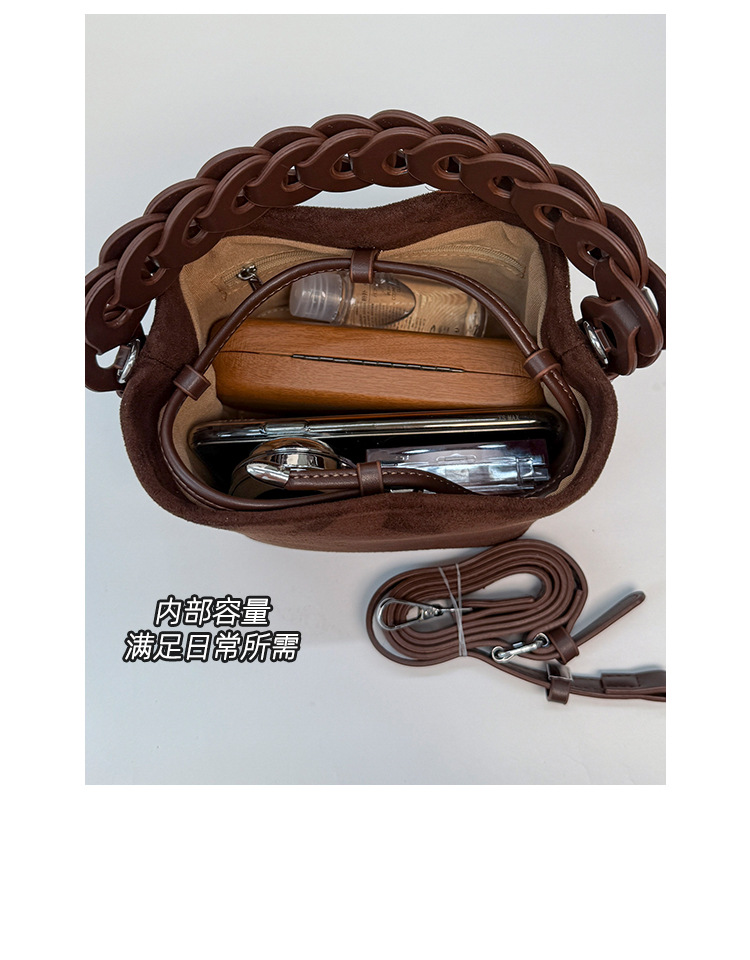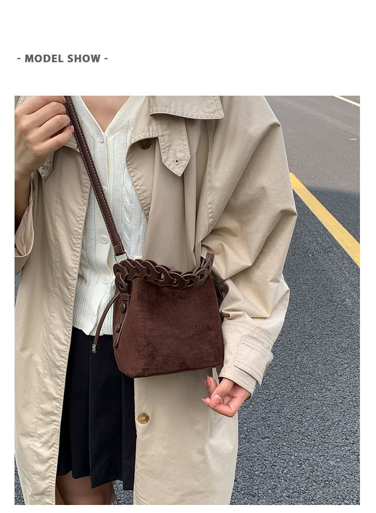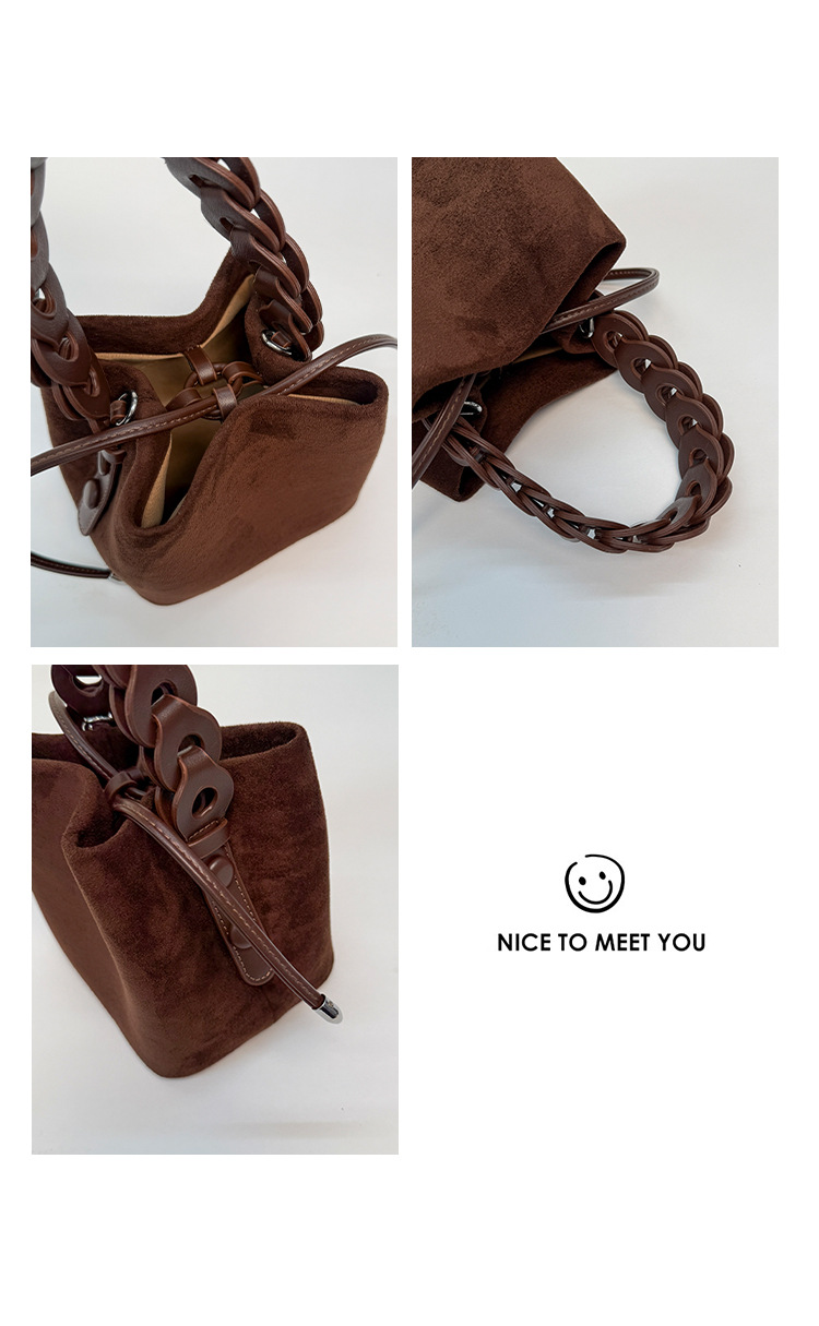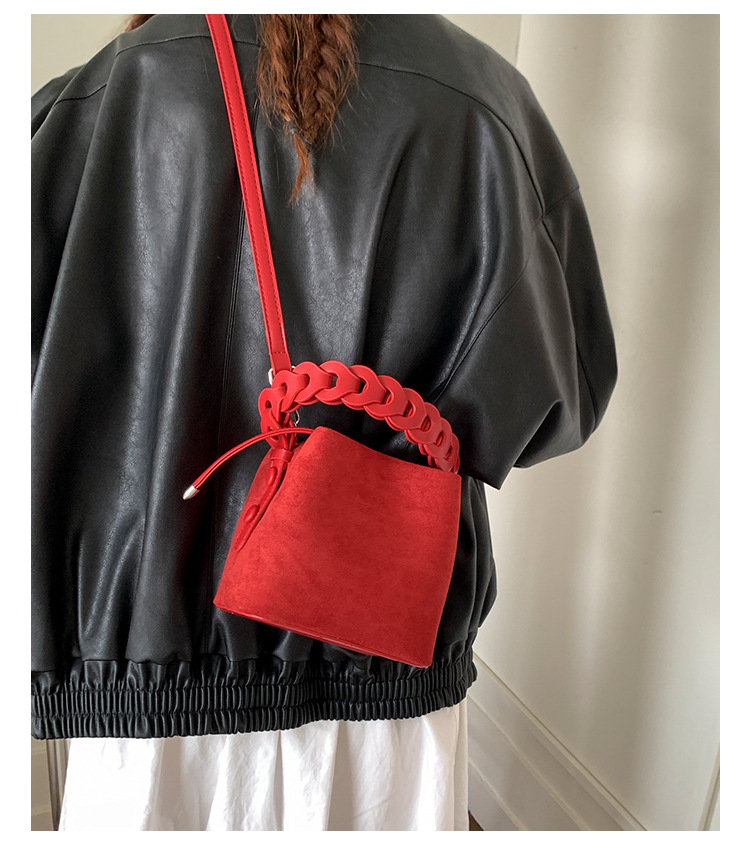 Xiaozhong bolso de cubo de seda de lana de invierno para mujeres bolso de mano retro color contraste 2026 nuevo viaje de hombro mochila