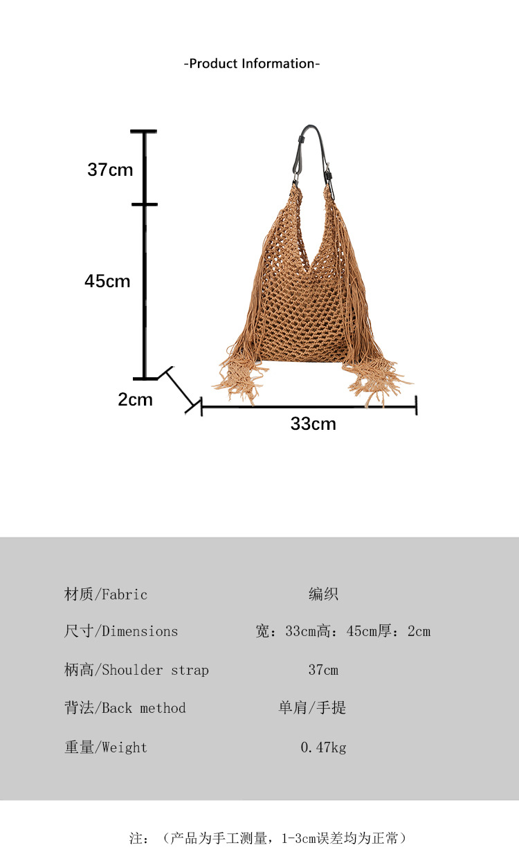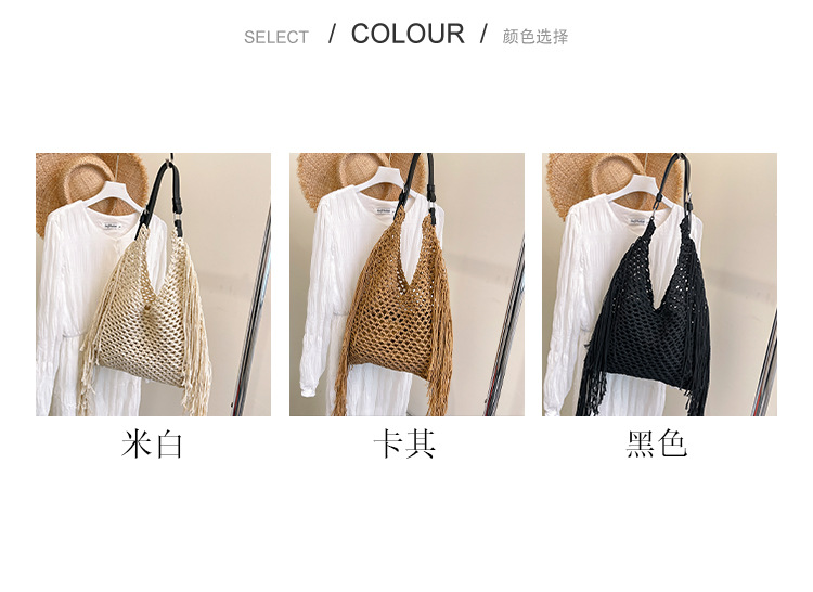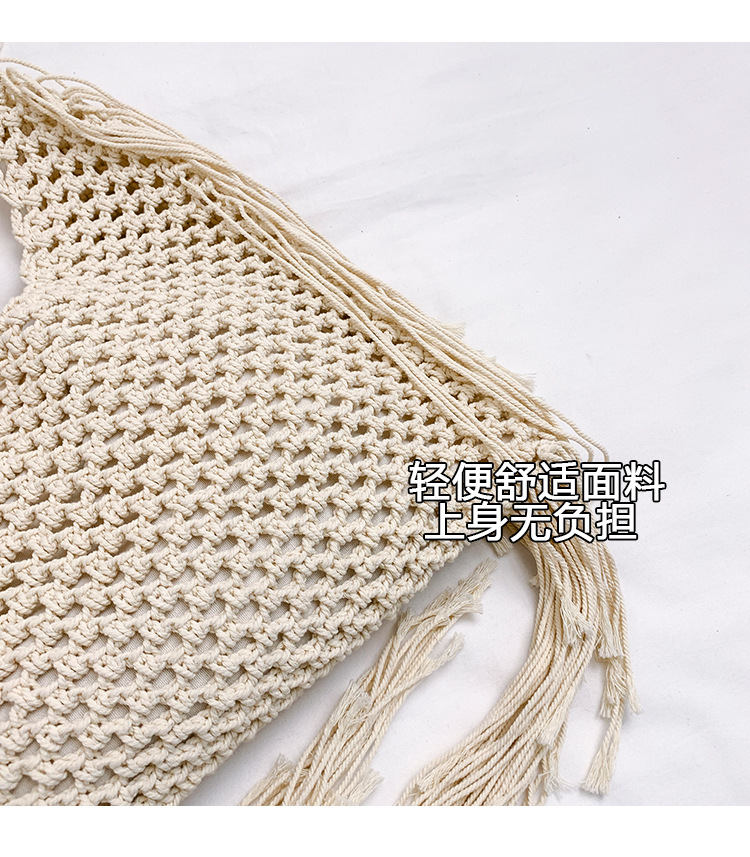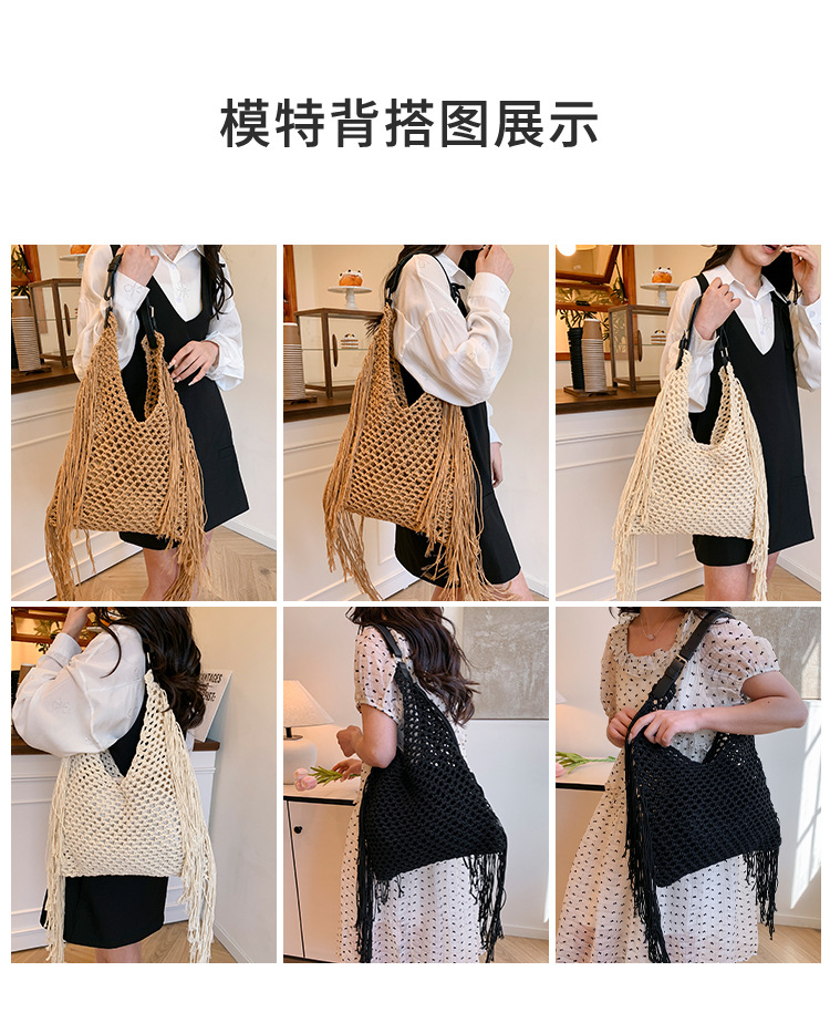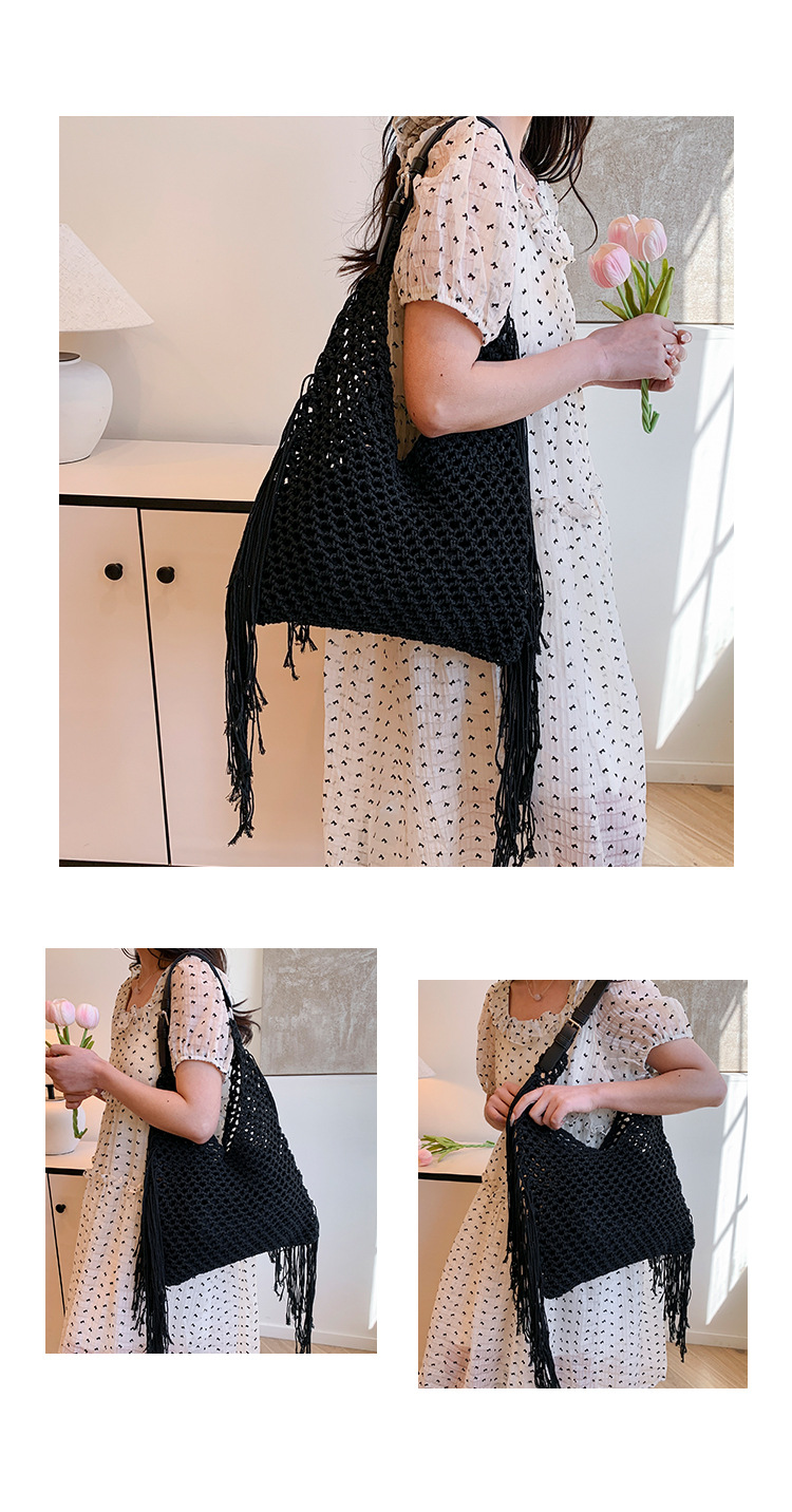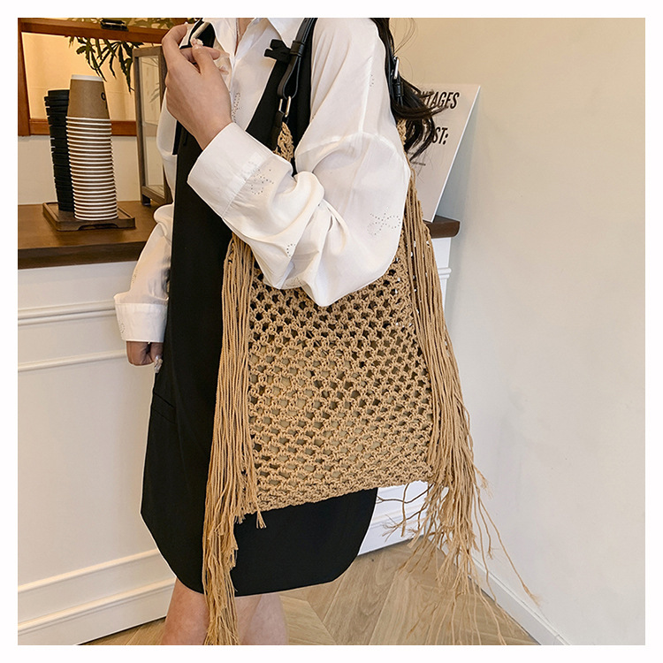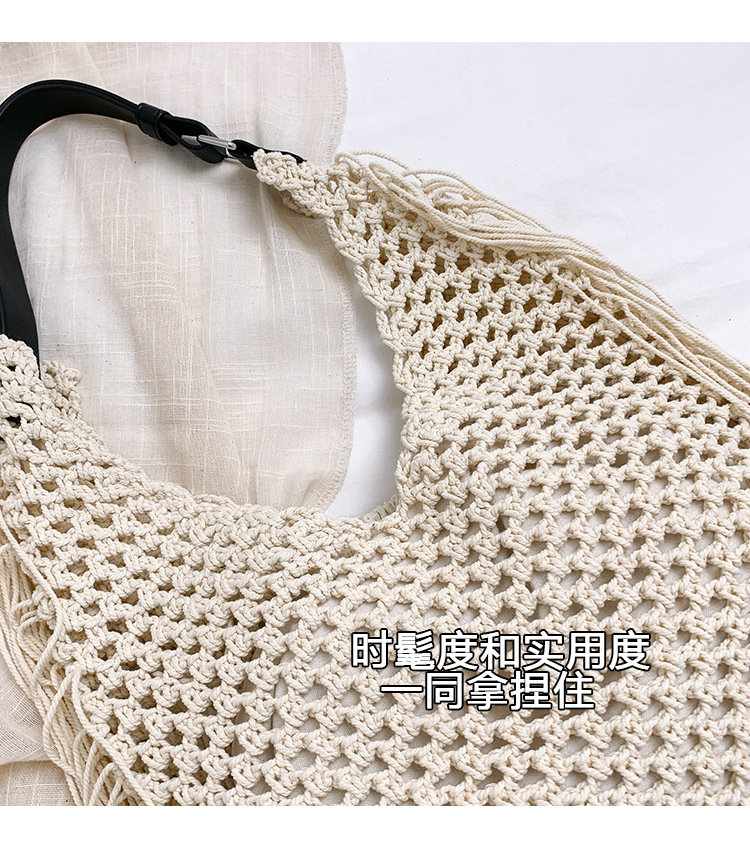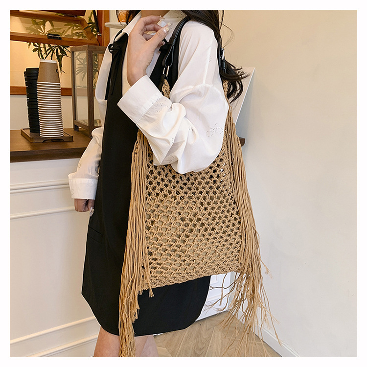 Bolso retro con borlas Bolso tejido a mano hueco femenino Bolso de playa Nuevo viajero Bolso Tote salvaje de un solo hombro para mujer