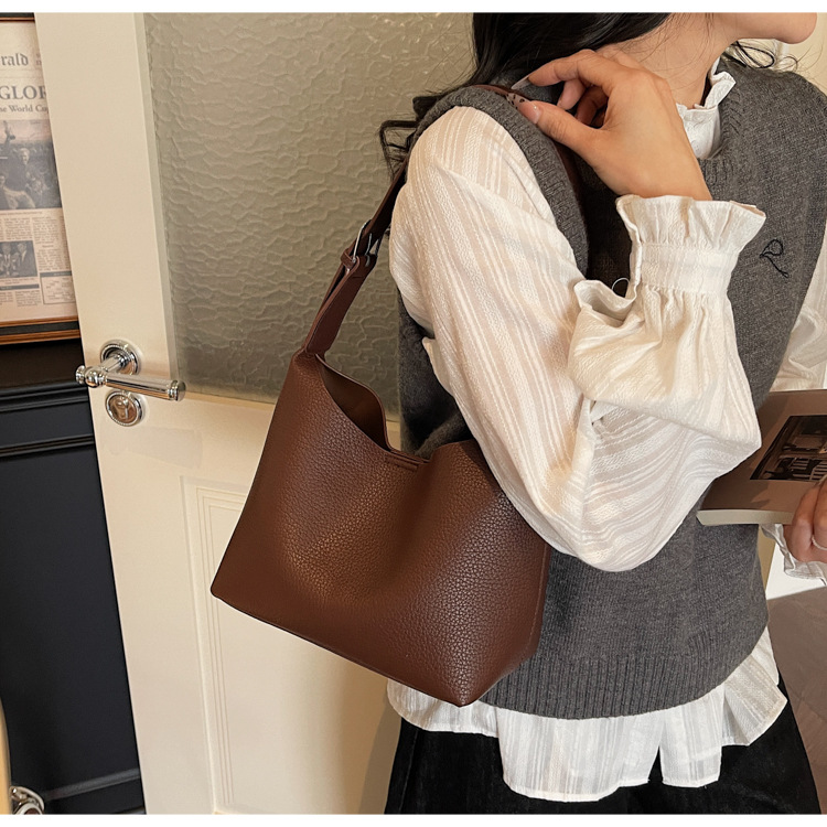 Bolsos de cubo retro de alta calidad para mujeres otoño / invierno 2025 nuevo nicho Zhong commuting mochila de hombro bolso de trabajo diario