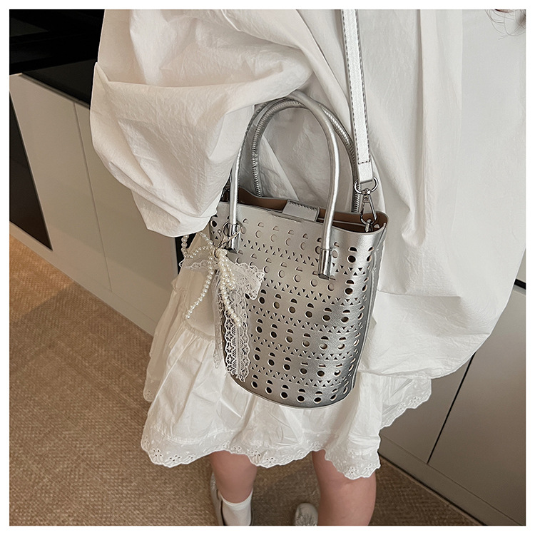 Bolsa de balde hueca de verano para mujeres 2025 nuevo nicho de moda versátil bolso de hombro bolsa de tendencia casual