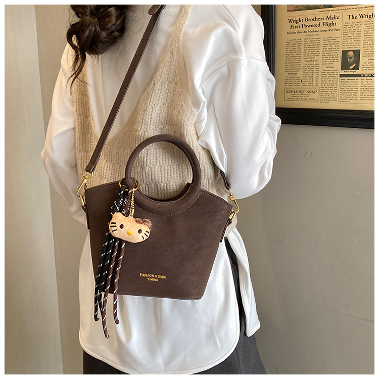 2025 otoño y invierno nuevo bolso retro mochila esmerilado bolso de hombro de moda de mujer bolso de cubo de viaje