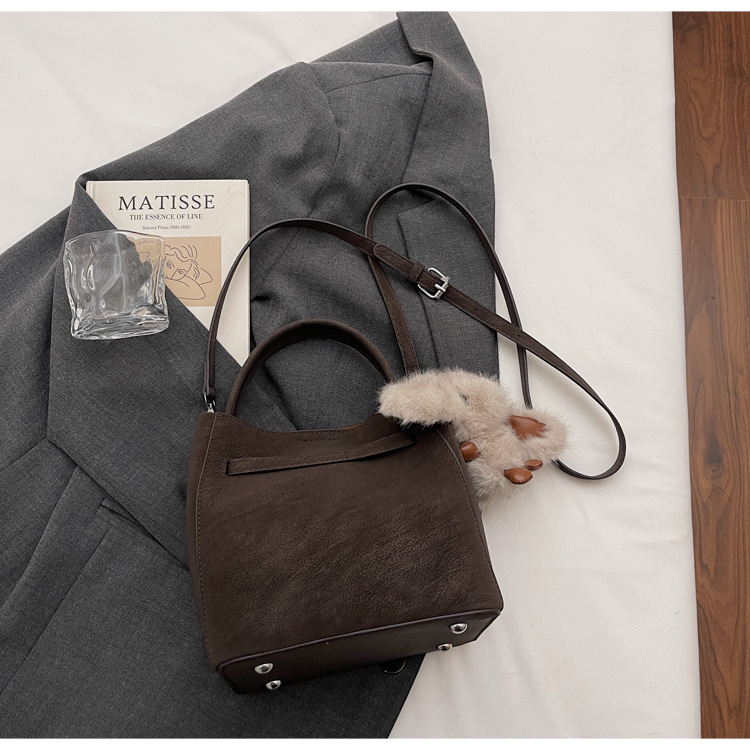 Bolso de mano de viaje retro coreano para mujeres 2025 nuevo paquete de cubo de hombro casual de alto nivel sensación de mochila versátil