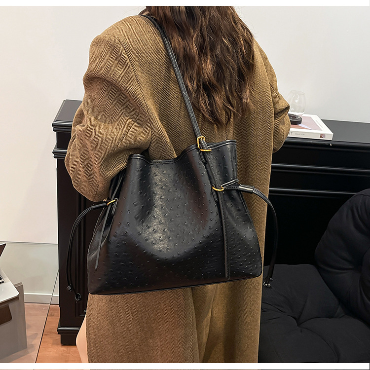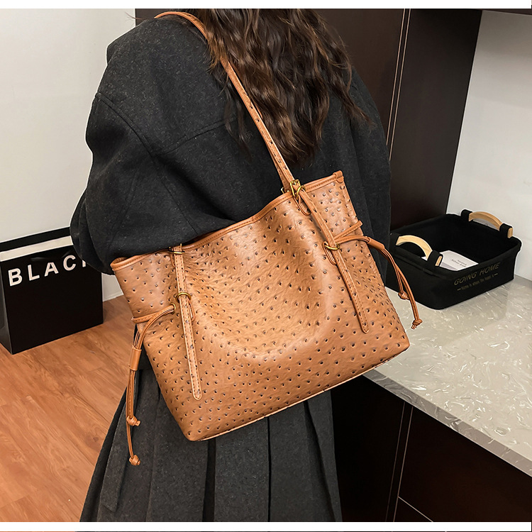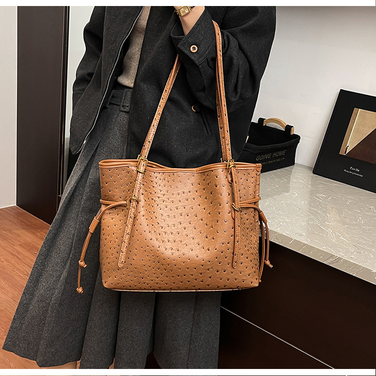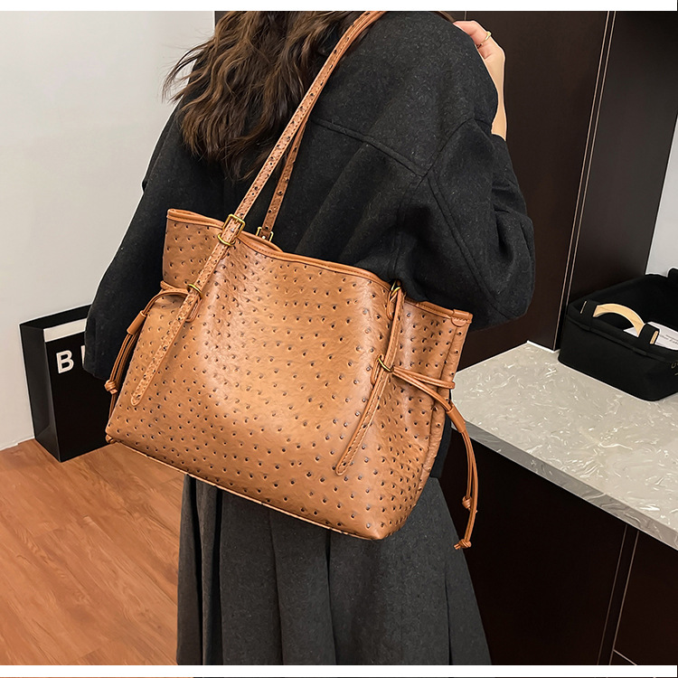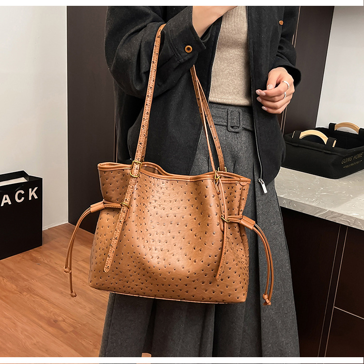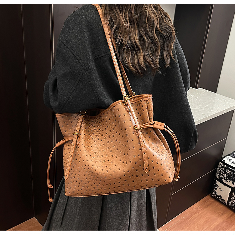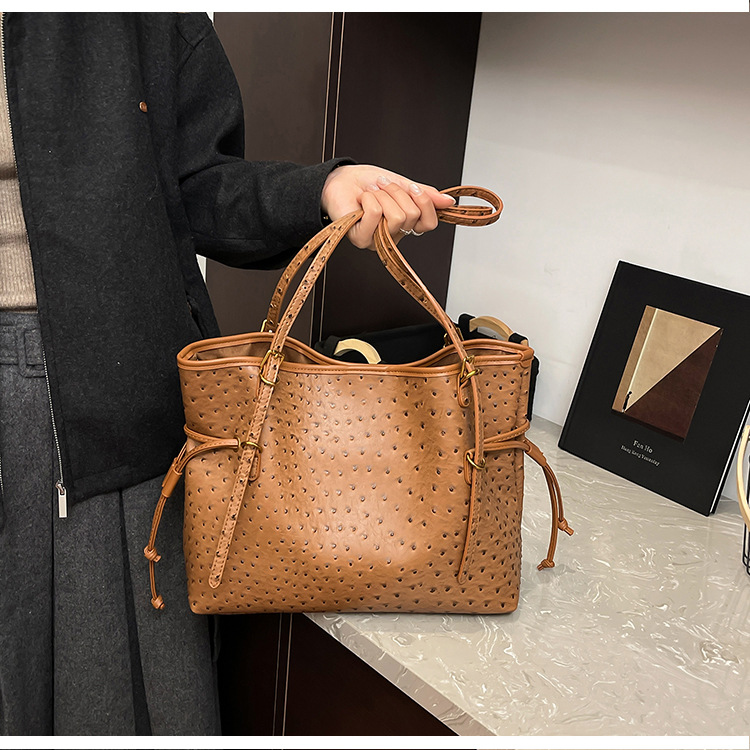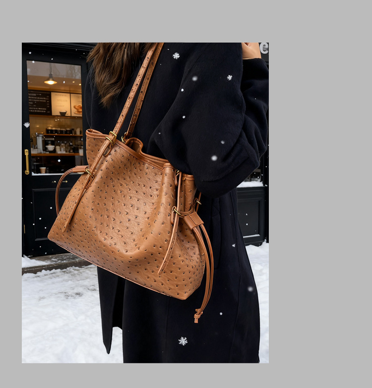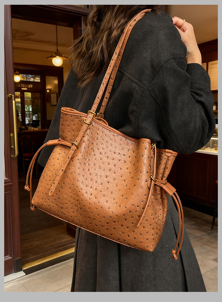 Bolsa de hombro retro europea y americana transfronteriza bolso de mano clásico de avestruz de gran capacidad de transporte de viajes bolso especial