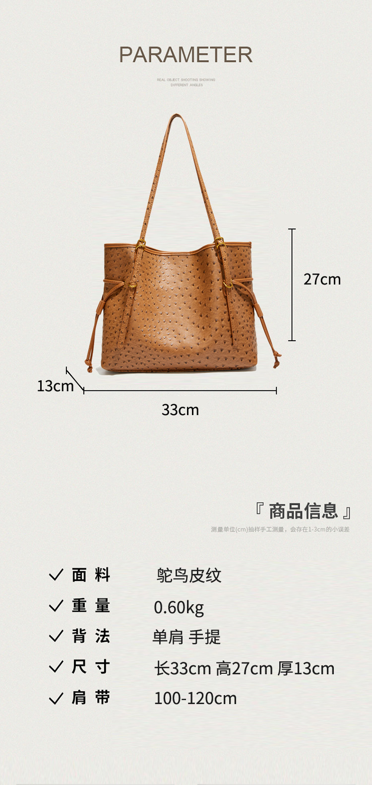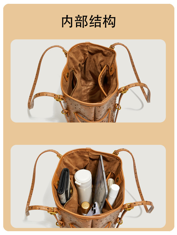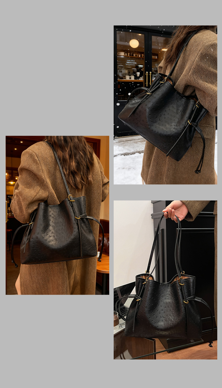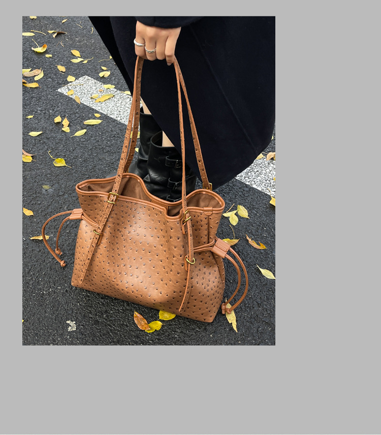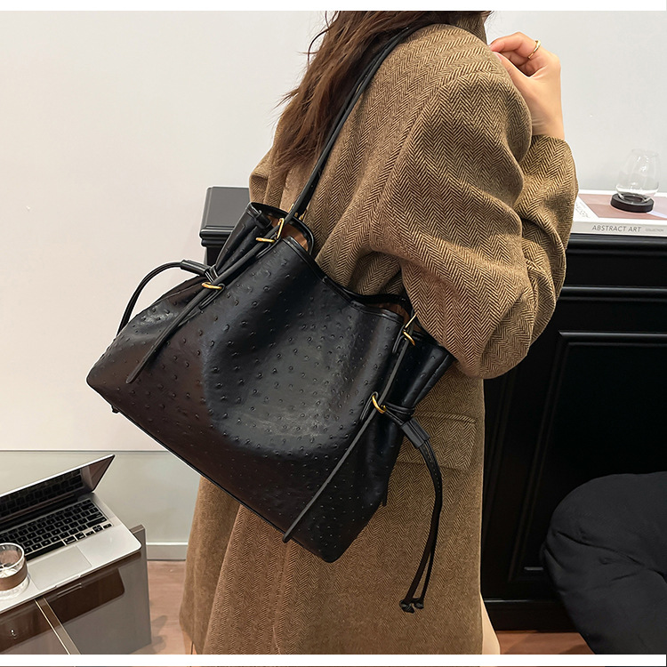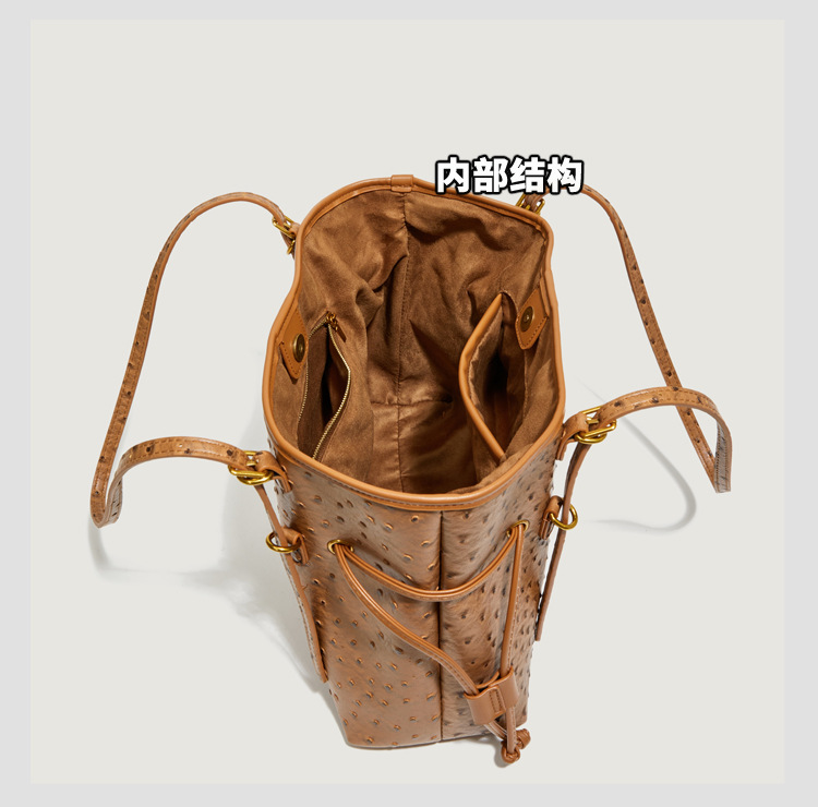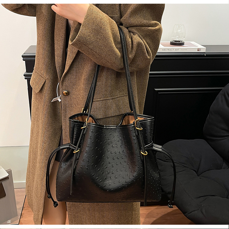 Bolsa de hombro retro europea y americana transfronteriza bolso de mano clásico de avestruz de gran capacidad de transporte de viajes bolso especial