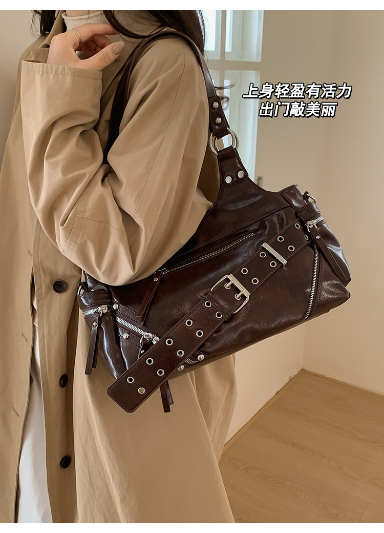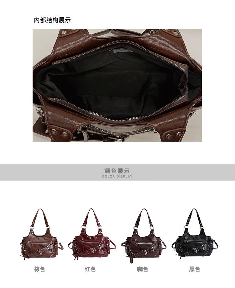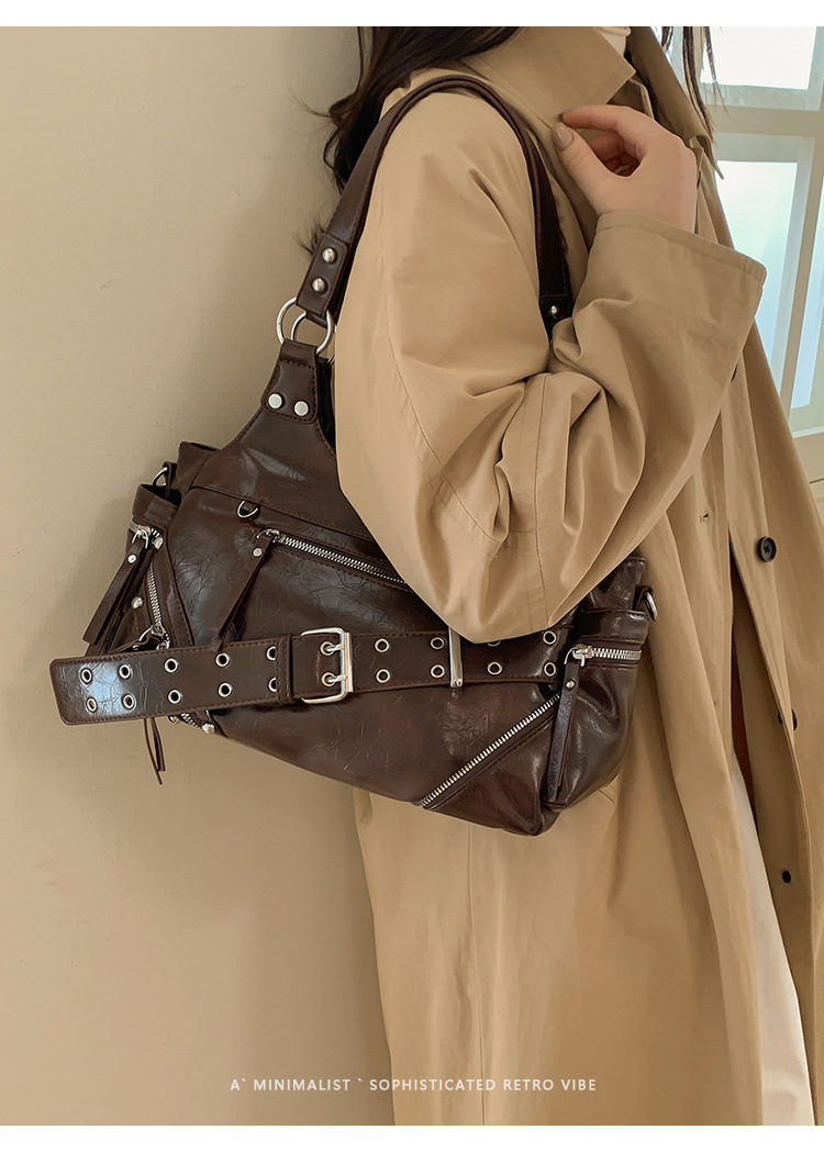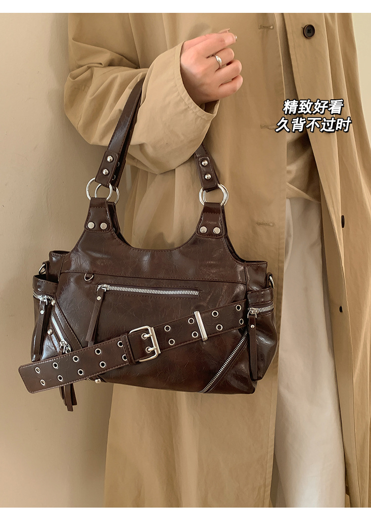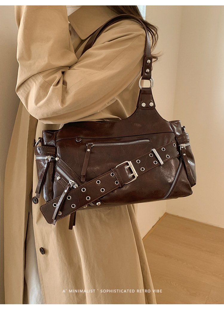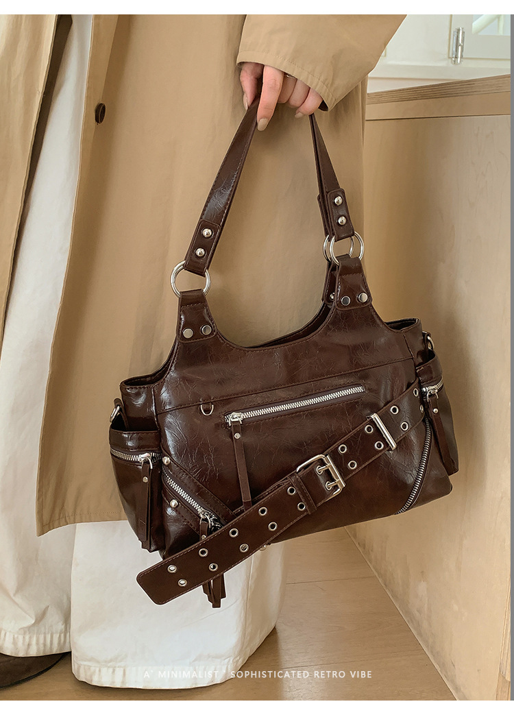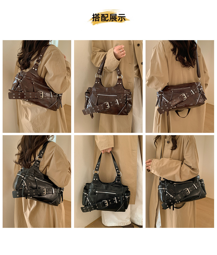 Bolsa de motocicleta de chicas calientes transfronterizas para mujeres 2025 nuevo retro cuero de cera de aceite de hombro bolso de brazo bolso de mano casual