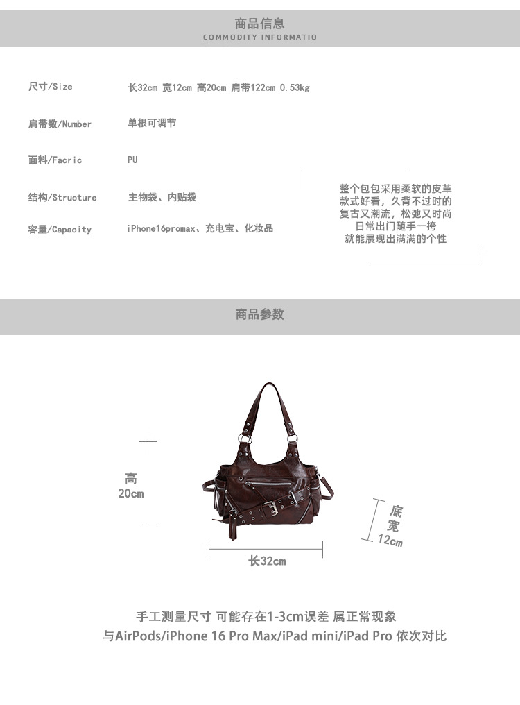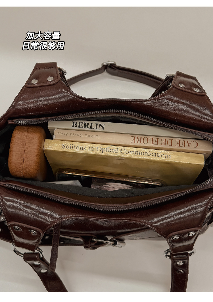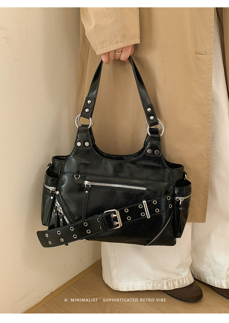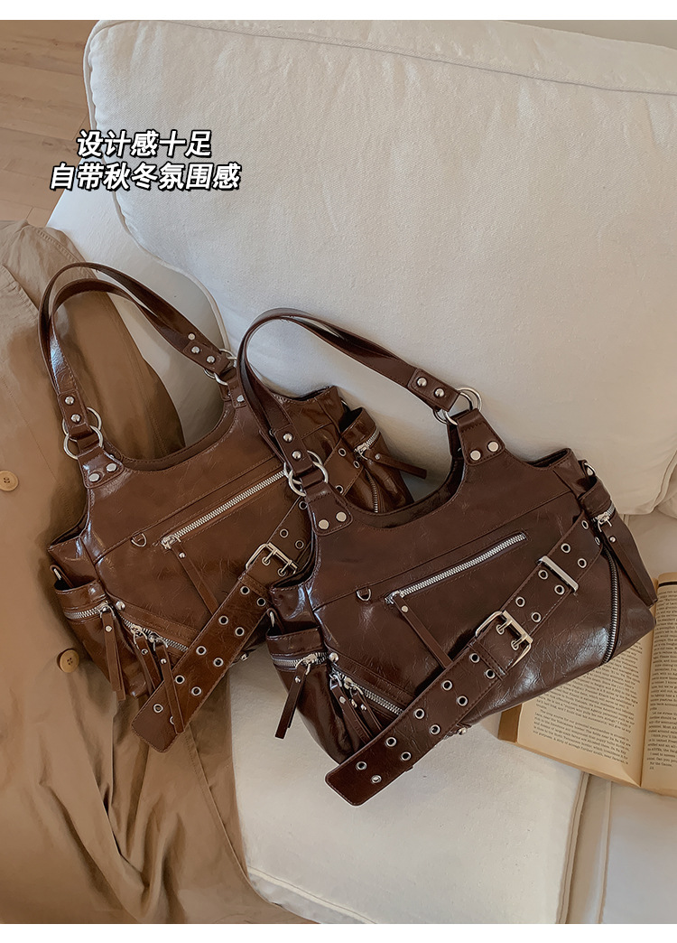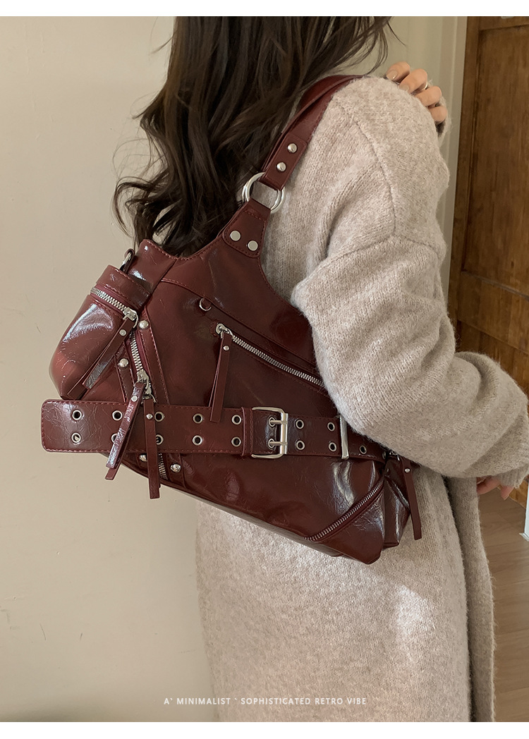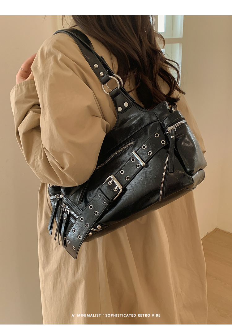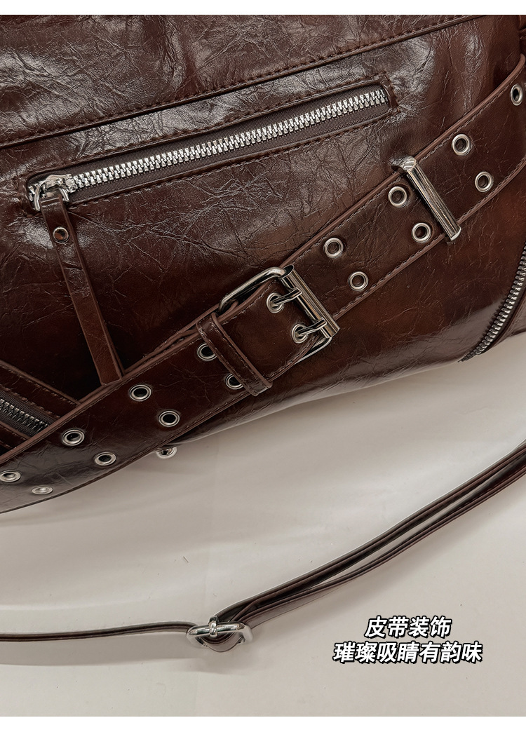 Bolsa de motocicleta de chicas calientes transfronterizas para mujeres 2025 nuevo retro cuero de cera de aceite de hombro bolso de brazo bolso de mano casual