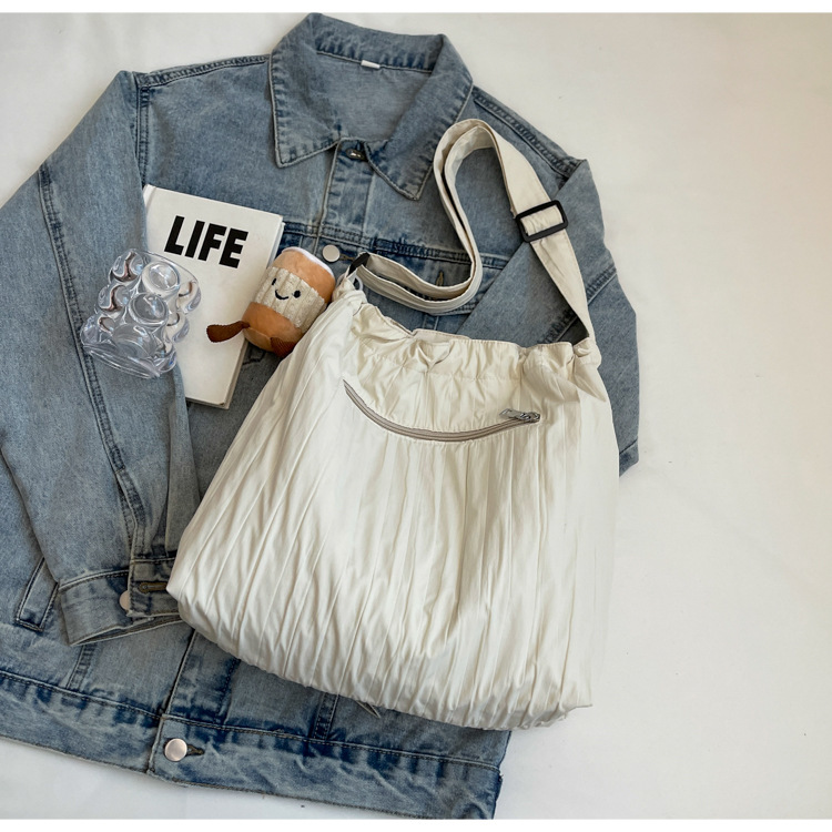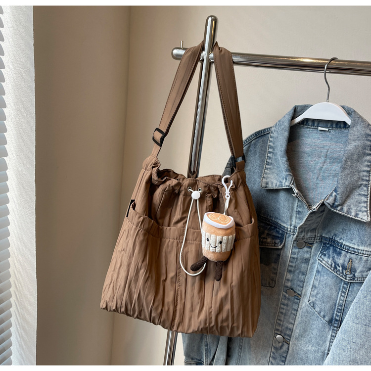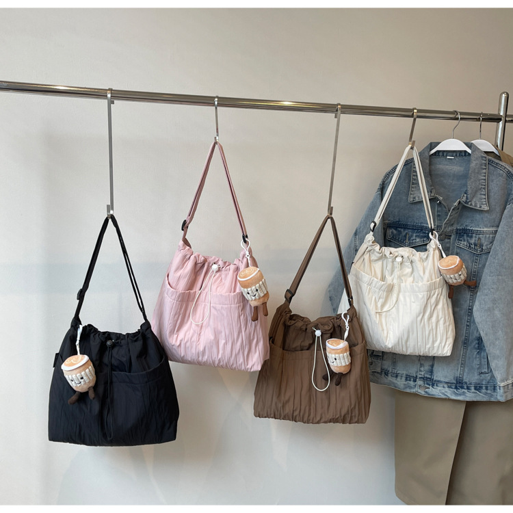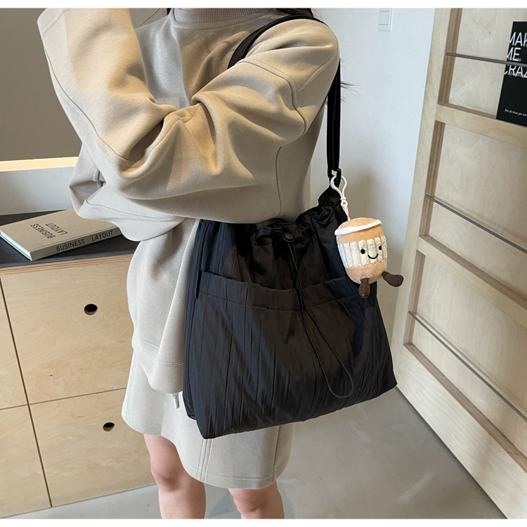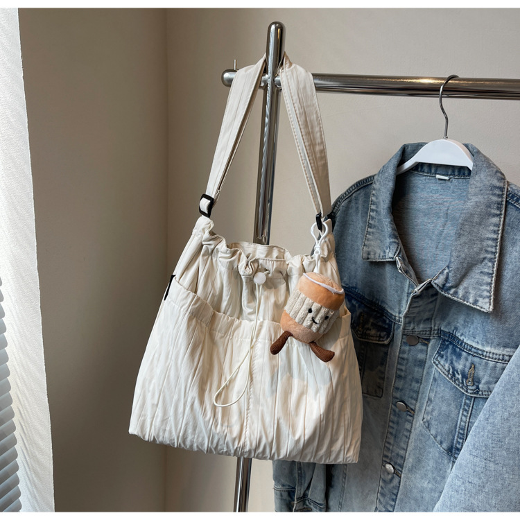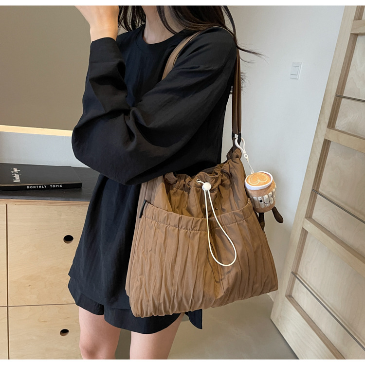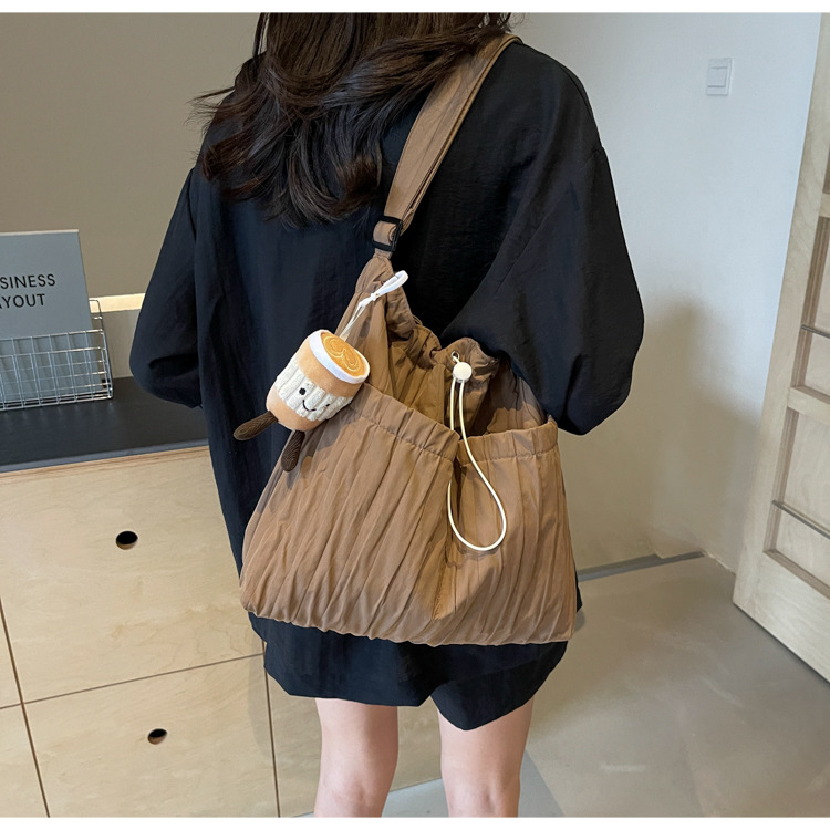 Bolso de cubo de viento perezoso plisado coreano para mujer 2025 nuevo bolso de hombro de viajero de todo fósforo bolso de mensajero de moda casual