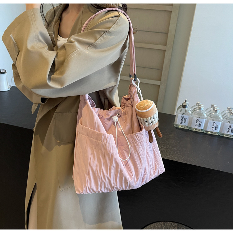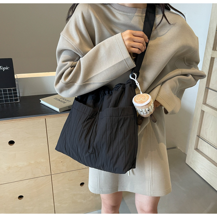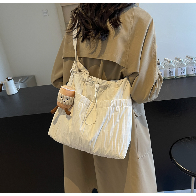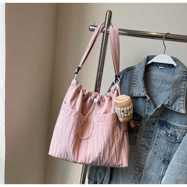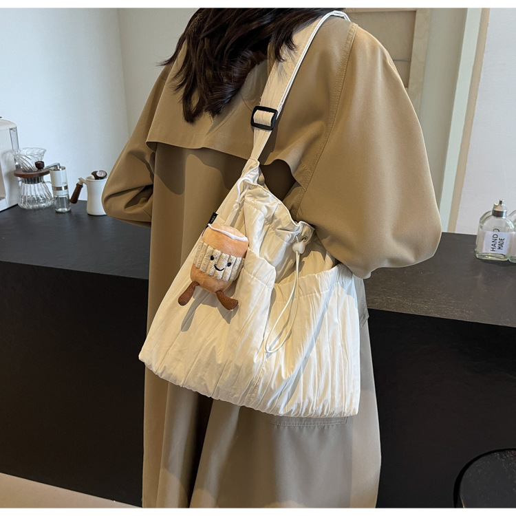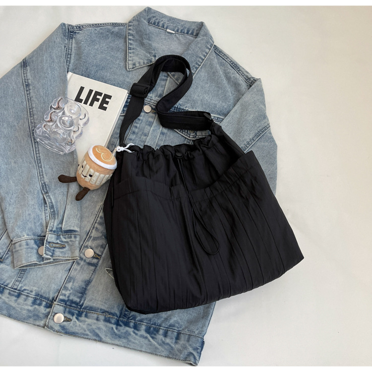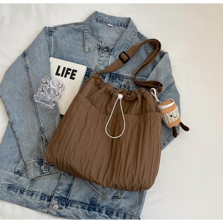 Bolso de cubo de viento perezoso plisado coreano para mujer 2025 nuevo bolso de hombro de viajero de todo fósforo bolso de mensajero de moda casual
