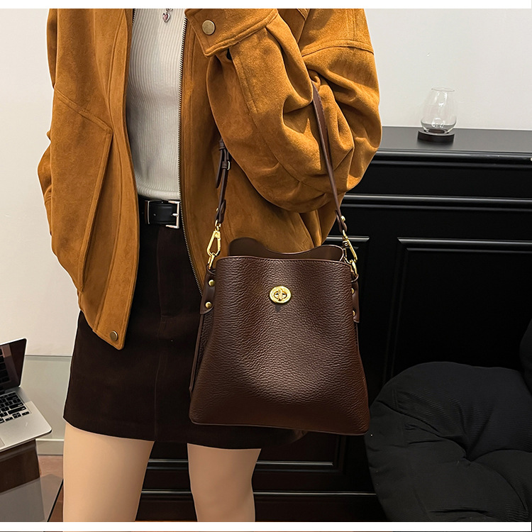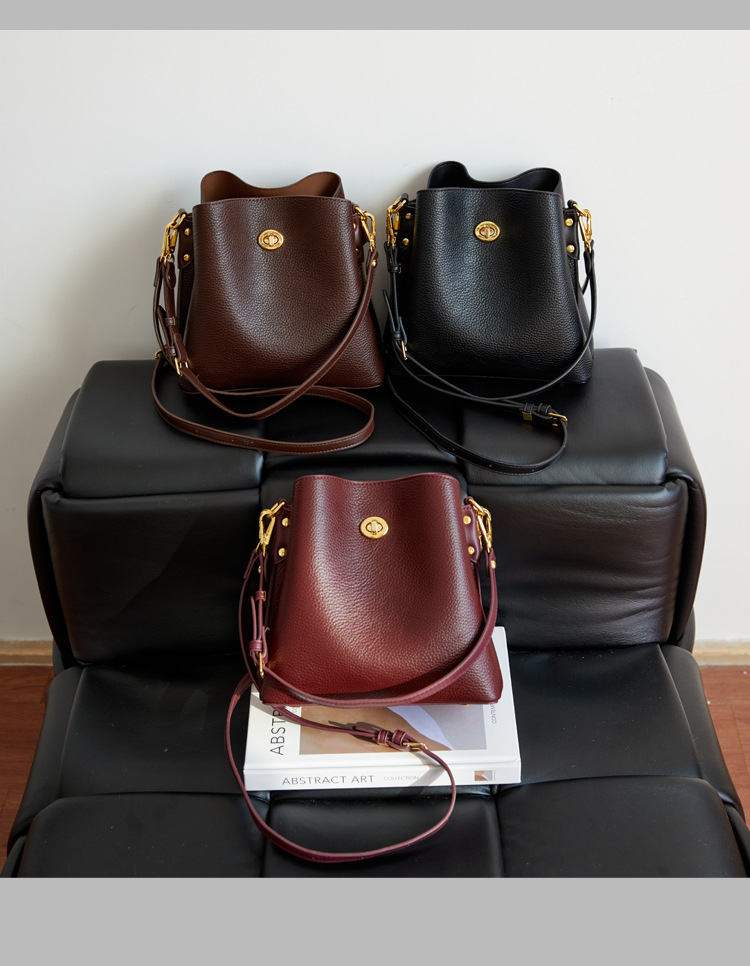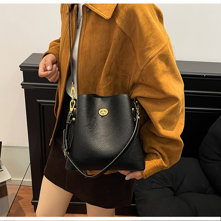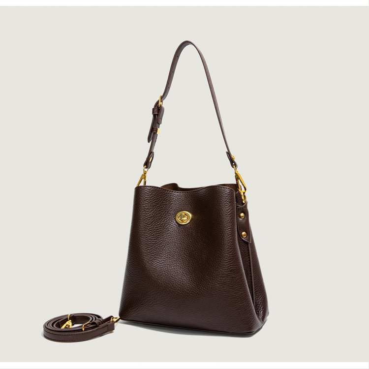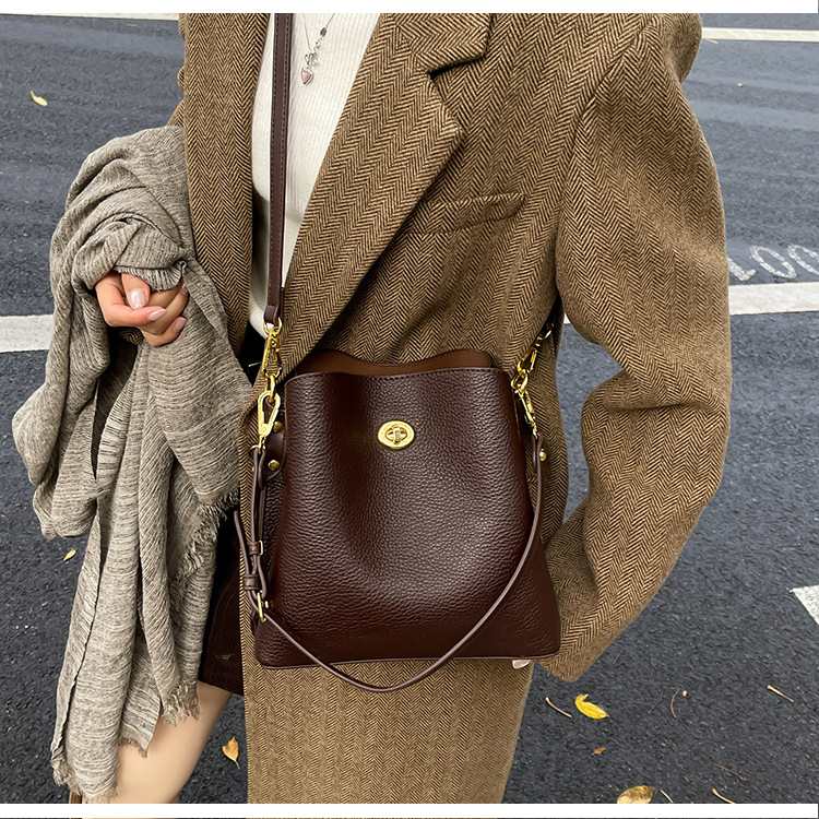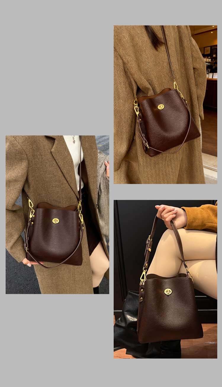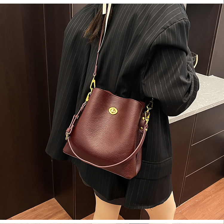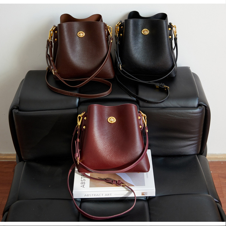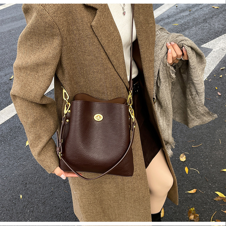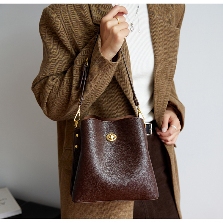 Bolso de mujer nuevo litchi cuero de vaca multicapa bolso de cubo de mano retro lujoso bolso de hombro bolso de viaje